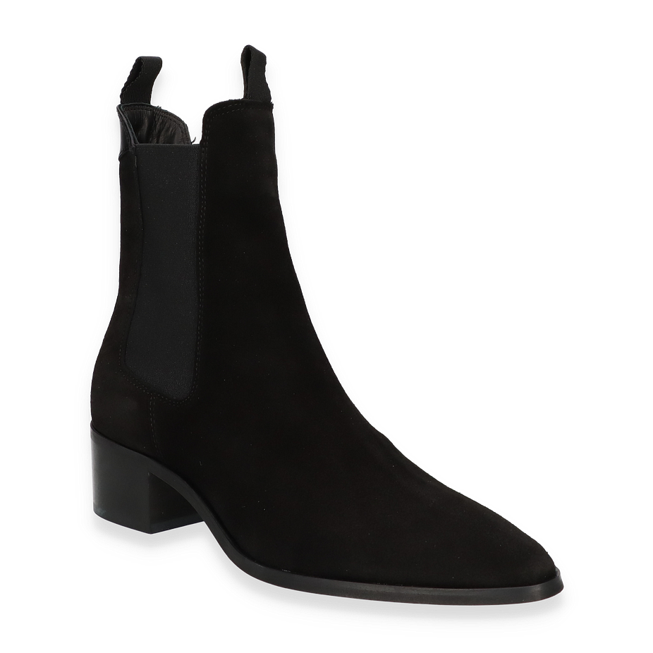 Die ST BROOMLY Western Boots von Gant präsentieren sich in einem eleganten Schwarz und vereinen zeitlose Eleganz mit modernem Design. Der geschmeidige Leder-Oberstoff verleiht diesen Stiefeln eine luxuriöse Ausstrahlung, während die klare Linienführung und der 5 cm hohe Absatz für eine feminine Silhouette sorgen. Die elastischen Seiteneinsätze und die praktische Anziehlasche am Schaft bieten nicht nur Komfort, sondern auch einen Hauch von Western-Charme, der diese Stiefel zu einem vielseitigen Begleiter für Damen macht.