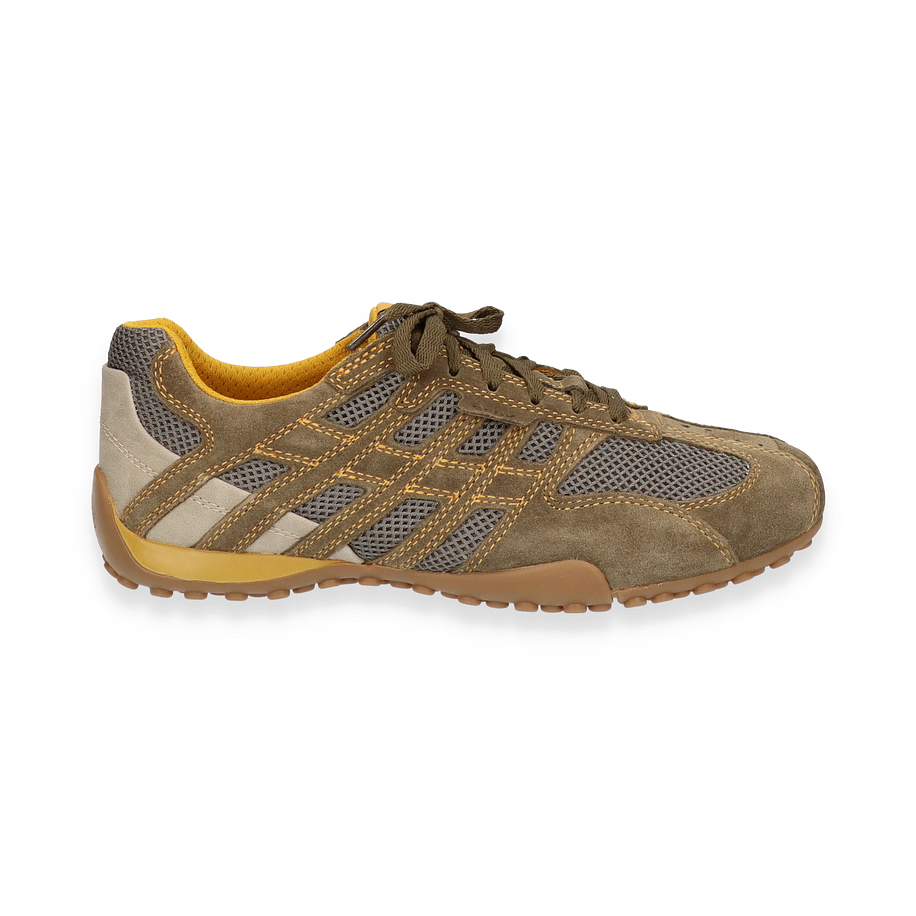 Preis inkl. MwSt.Entdecken Sie den Geox Sneaker für Herren in der stilvollen Farbe Military. Dieser Schuh kombiniert ein modernes Design mit funktionalen Details. Das Obermaterial aus Leder und Textil verleiht dem Sneaker eine robuste und zugleich elegante Optik. Die sorgfältige Verarbeitung und die harmonische Farbkombination machen diesen Schuh zu einem vielseitigen Begleiter für verschiedene Anlässe.