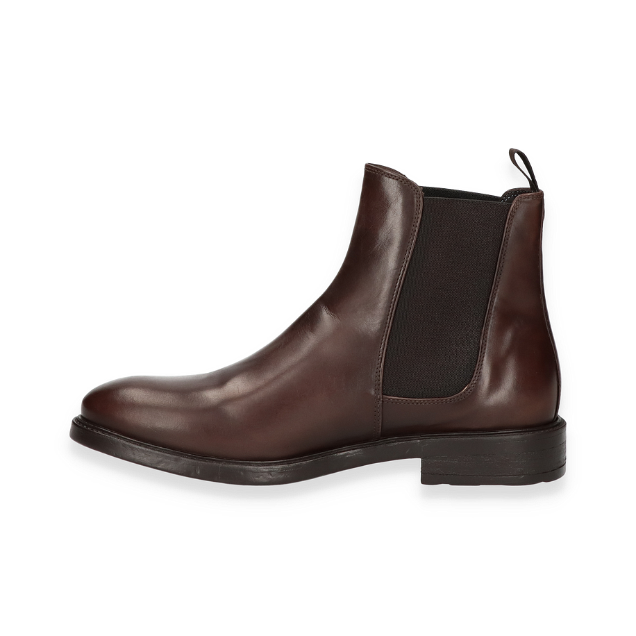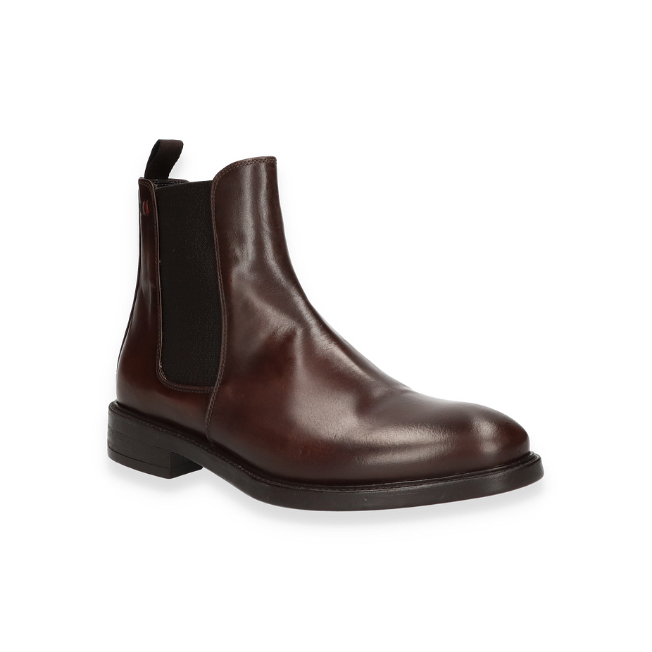 Die Giorgio 1958 BOUVIER Stiefeletten für Herren präsentieren sich in einem eleganten dunkelbraunen Lederdesign, das sowohl zeitlos als auch modern wirkt. Die glatte Oberfläche und die seitlichen elastischen Einsätze sorgen für eine perfekte Passform und ein einfaches An- und Ausziehen. Der dezente Absatz von 3 cm verleiht dem Schuh eine zusätzliche Note von Raffinesse, während die robuste Gummisohle für einen sicheren Halt sorgt. Diese Stiefeletten sind die ideale Wahl für stilbewusste Herren, die Wert auf Qualität und Design legen. Die BOUVIER Stiefeletten bestehen aus Leder, das sowohl für das Obermaterial als auch für das Innenmaterial und die Innensohle verwendet wird, was höchsten Tragekomfort garantiert. Die Gummisohle bietet nicht nur Langlebigkeit, sondern auch hervorragende Traktion auf verschiedenen Oberflächen. Mit ihrem klassischen Design und den erstklassigen Materialien sind diese Stiefeletten ein Must-Have für jede Herrengarderobe.