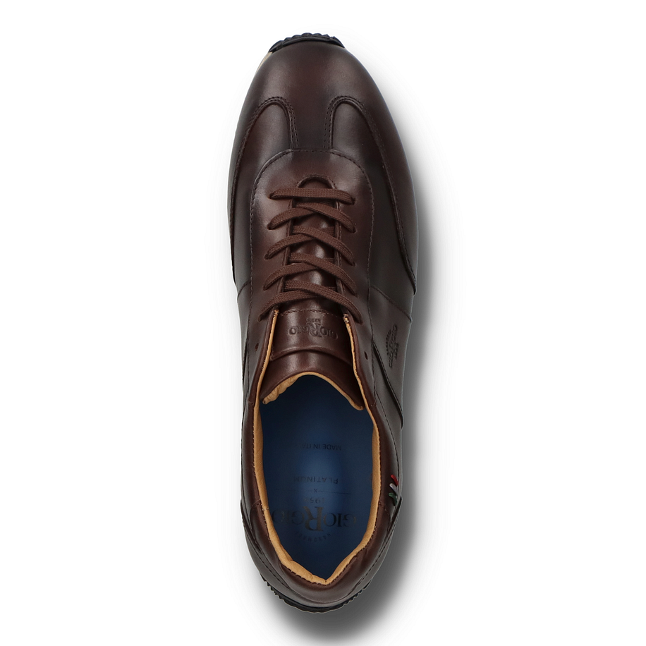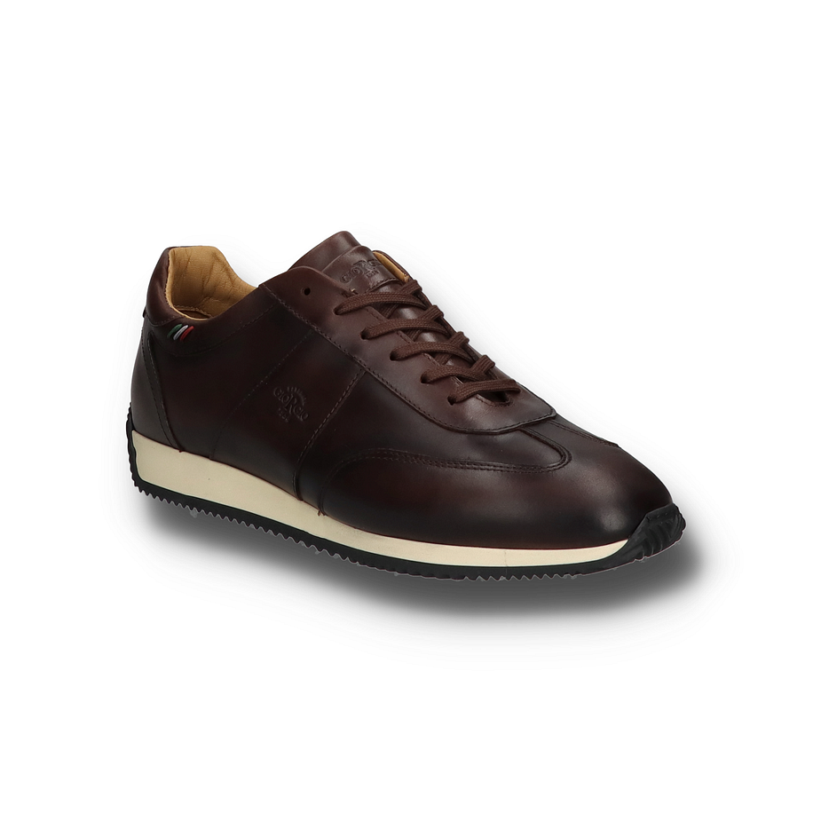 Die Giorgio 1958 Sneaker für Herren in dunkelbraun vereinen Eleganz und Komfort in einem stilvollen Design. Das Obermaterial aus Leder verleiht dem Schuh eine edle Optik und sorgt für Langlebigkeit. Die sorgfältige Verarbeitung und die feinen Details, wie die dezenten Ziernähte und das geprägte Logo, unterstreichen die Exklusivität dieses Modells. Die klassische Schnürung ermöglicht eine individuelle Anpassung und bietet optimalen Halt. Diese Sneaker verfügen über ein Wechselfußbett und eine Innenmaterial aus Leder, was für ein angenehmes Tragegefühl sorgt. Die Leder-Innensohle unterstützt den Fuß und erhöht den Tragekomfort. Die Gummisohle bietet und Rutschfestigkeit, während die Absatzhöhe von 2,5 cm eine perfekte Balance zwischen Komfort und Stil schafft. Ideal für den anspruchsvollen Herren, der Wert auf Qualität und Design legt.