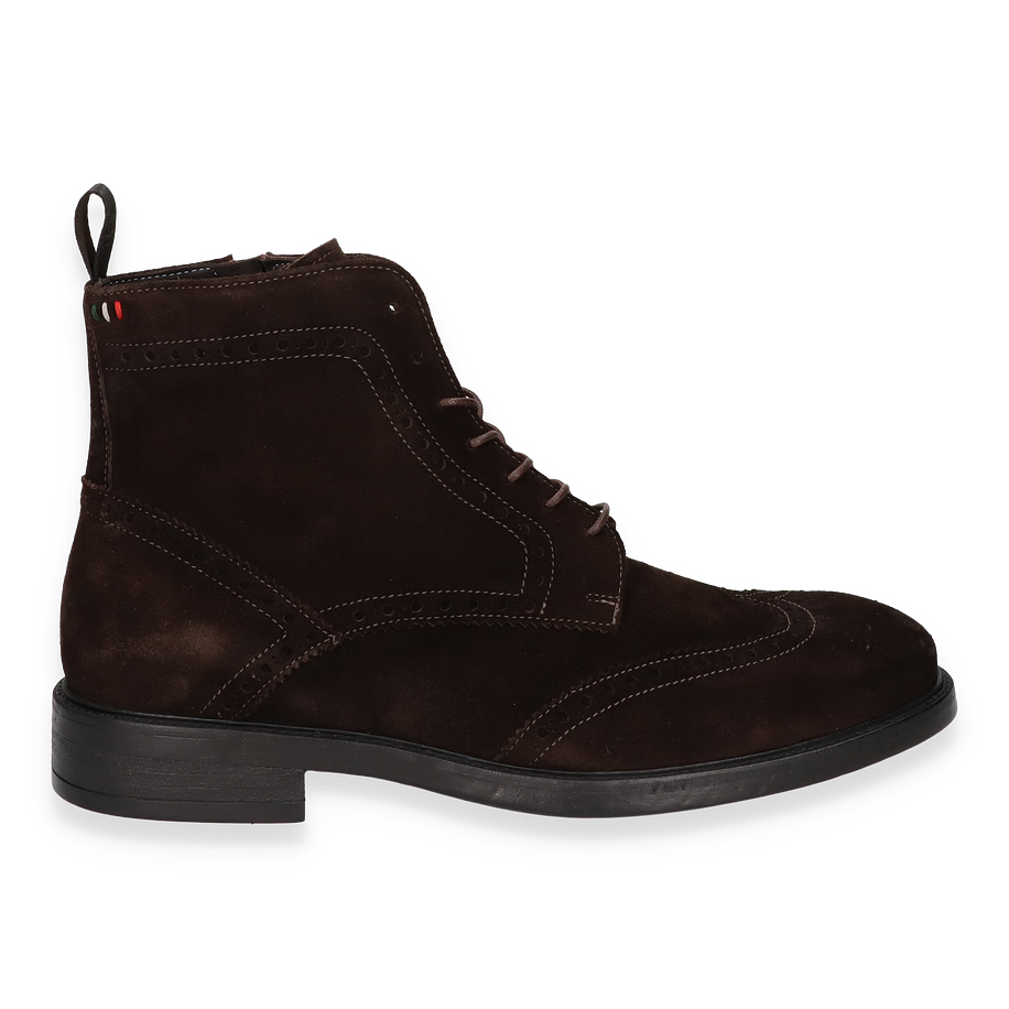 Preis inkl. MwSt.Die LIGHTBOY Schnürboots von Giorgio 1958 präsentieren sich in einem eleganten Dunkelbraun, das jedem Outfit eine stilvolle Note verleiht. Das Obermaterial aus hochwertigem Leder sorgt für einen luxuriösen Look und verspricht Langlebigkeit. Die feinen Nähte und die klassische Schnürung unterstreichen das zeitlose Design, während die robuste Gummisohle für sicheren Halt sorgt. Mit einer Absatzhöhe von 3 cm und einer Schafthöhe von 14 cm bieten diese Boots eine ideale Mischung aus Komfort und Stil für Herren.