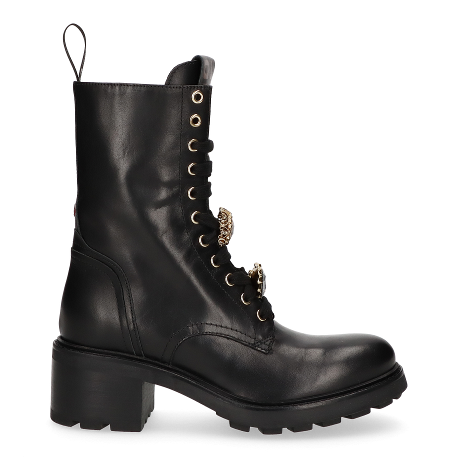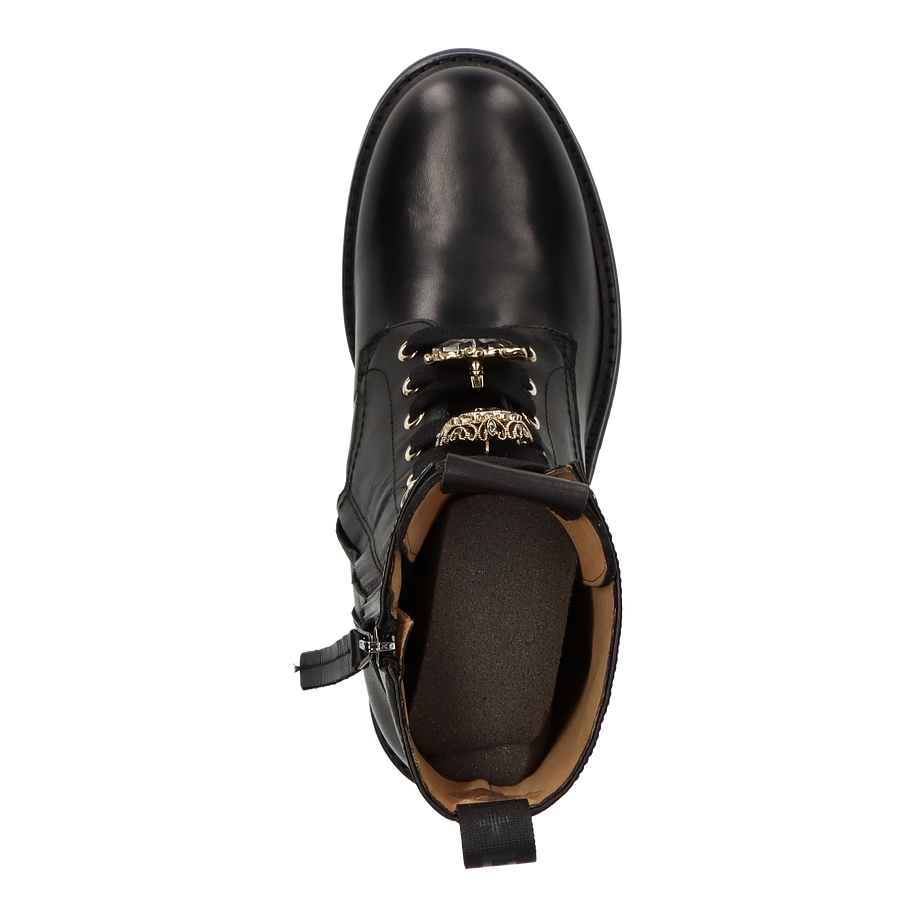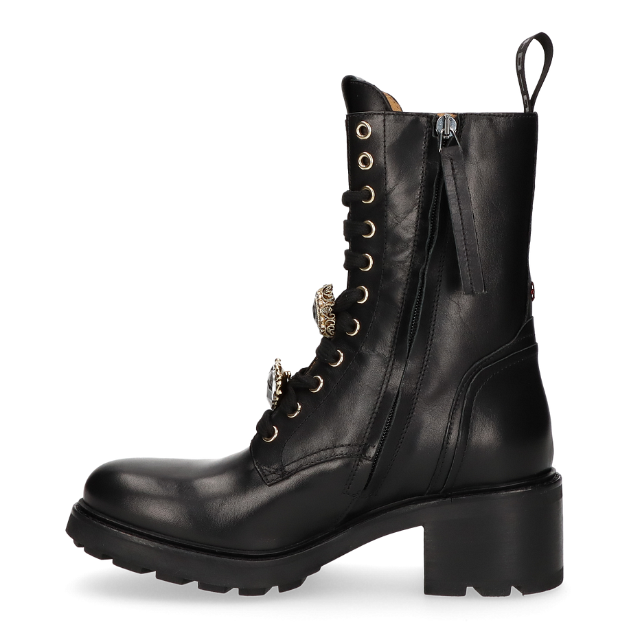 Preis inkl. MwSt.Erleben Sie den eleganten Stil der Giove Klassischen Stiefeletten für Damen in zeitlosem Schwarz. Diese exquisiten Stiefeletten zeichnen sich durch eine Absatzhöhe von 5,5 cm aus, die Ihnen eine perfekte Mischung aus Komfort und Eleganz bietet. Das Ober- und Innenmaterial sowie die Innensohle bestehen aus hochwertigem Leder, das für ein luxuriöses Tragegefühl sorgt. Die Gummisohle garantiert Langlebigkeit und sicheren Halt auf verschiedenen Oberflächen. Ein besonderes Highlight sind die goldenen Schmucksteine auf der Schnürung, die einen Hauch von Glamour verleihen. Diese Stiefeletten sind die ideale Wahl für anspruchsvolle Frauen, die Wert auf Stil und Qualität legen.