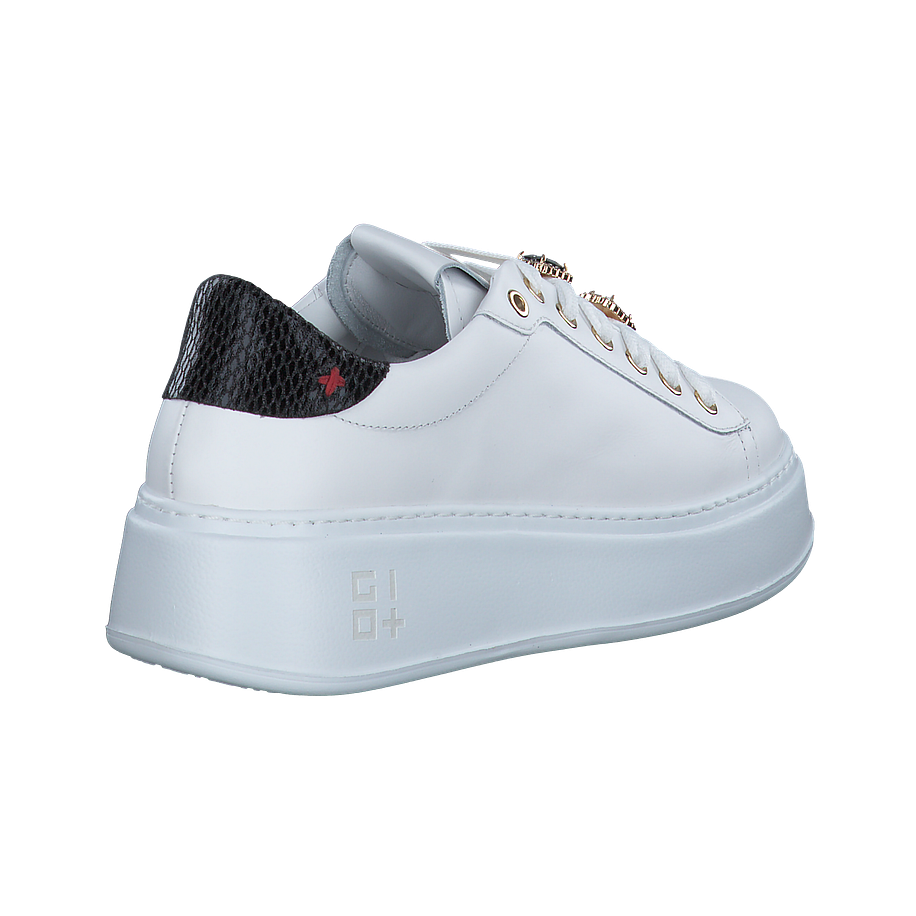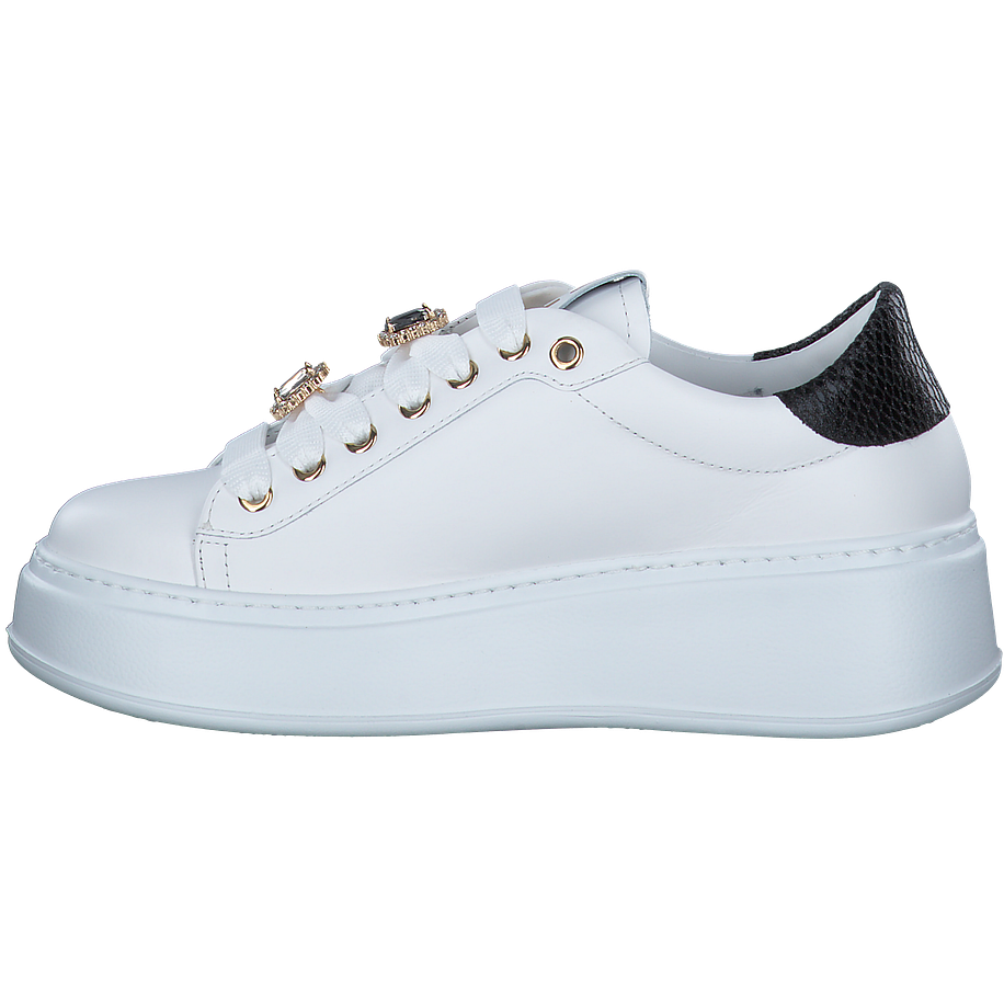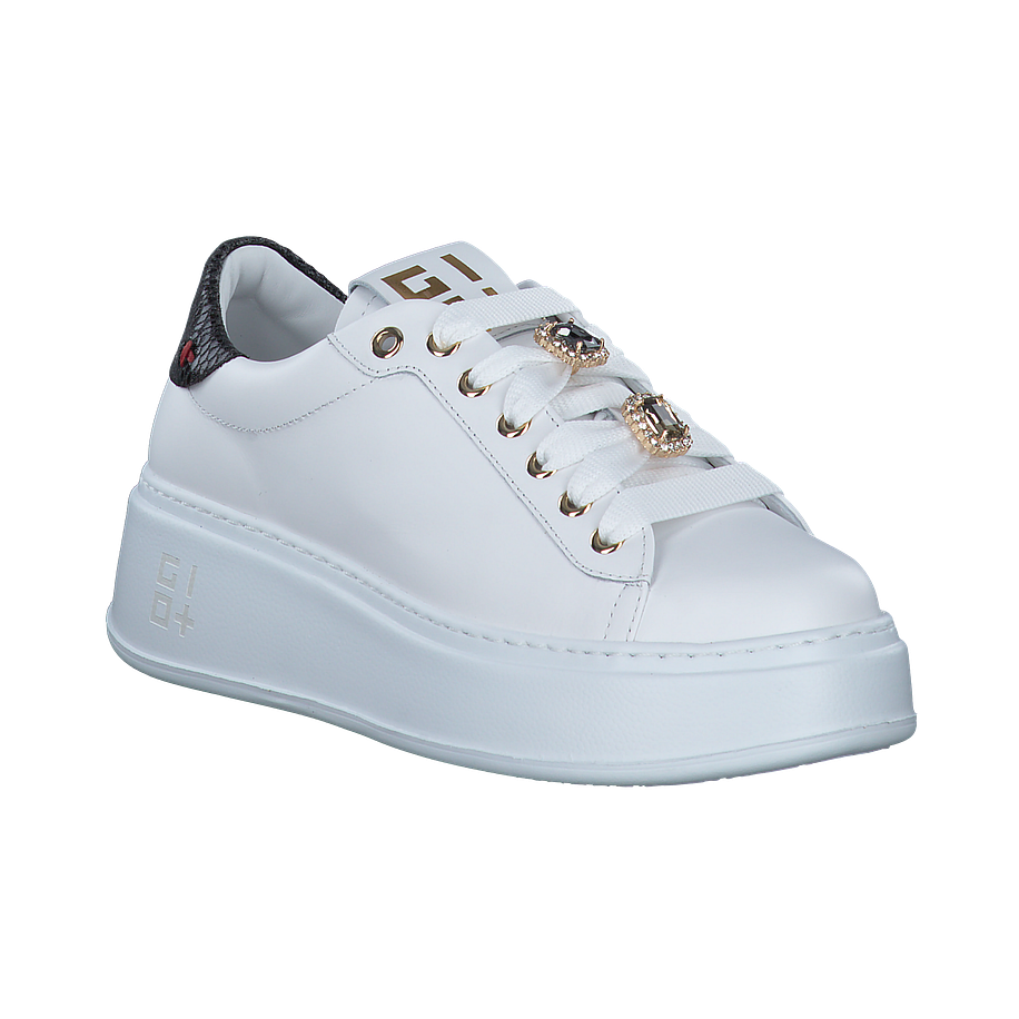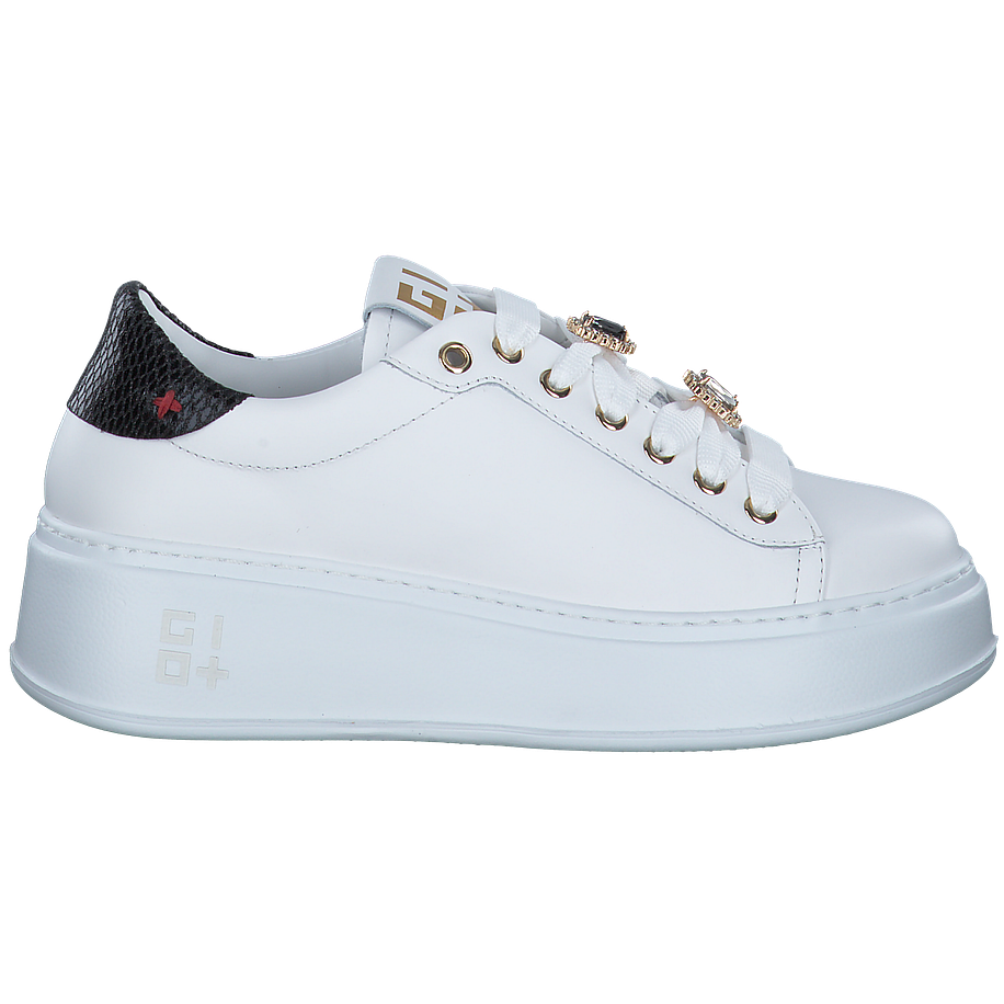 Entdecken Sie den weißen Giove Sneaker für Damen, der Eleganz und Komfort in einem bietet. Dieser Schuh zeichnet sich durch sein hochwertiges Leder-Obermaterial aus, das für seine Langlebigkeit und seinen hervorragenden Tragekomfort bekannt ist. Das Innenfutter und die Innensohle aus Leder sorgen für zusätzlichen Komfort und eine perfekte Passform. Mit einer Absatzhöhe von 4 cm bietet dieser Sneaker eine subtile Erhöhung, ohne Kompromisse bei der Bequemlichkeit einzugehen. Die robuste Gummisohle gewährleistet eine hervorragende Bodenhaftung. Abgerundet wird das Design durch Schmuckapplikationen am Schnürsenkel, die einen Hauch von Glamour verleihen.