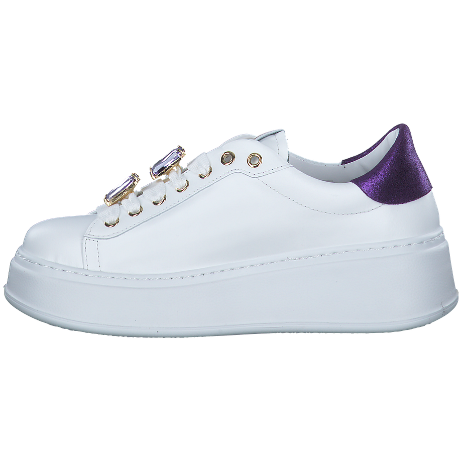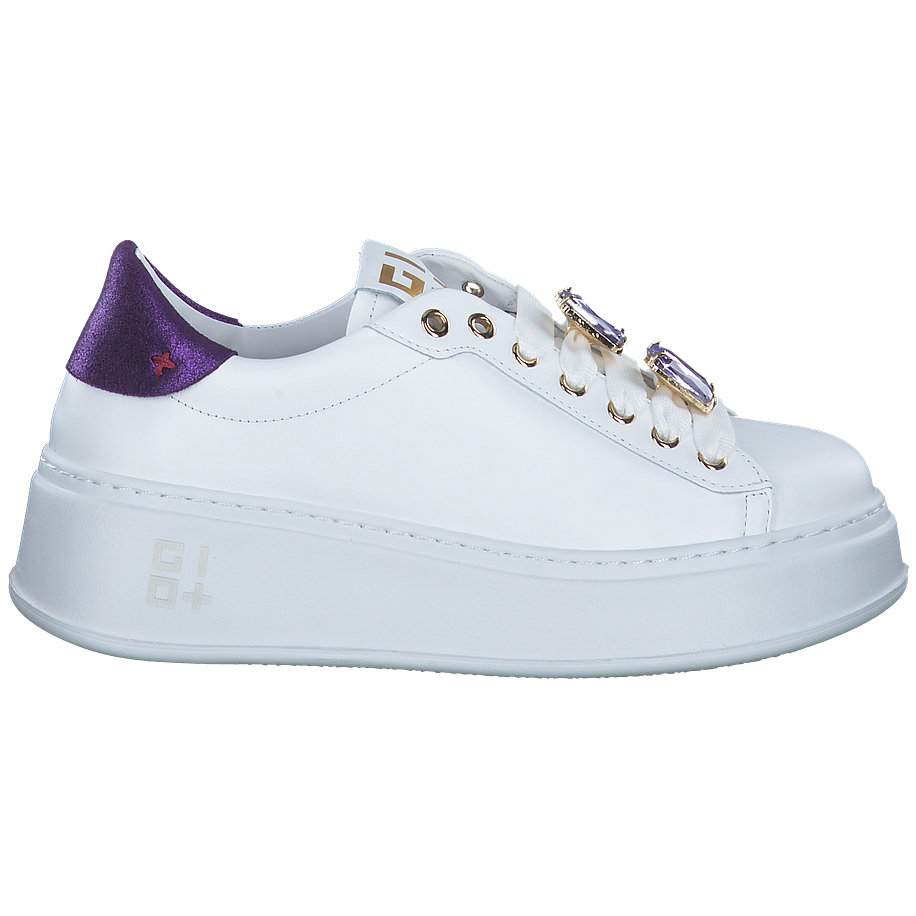 Entdecken Sie die eleganten Schnürschuhe für Damen von Giove, die durch ihr stilvolles Design und hochwertige Materialien überzeugen. Diese Schuhe in klassischem Weiß sind aus erstklassigem Leder gefertigt, das sowohl für das Obermaterial als auch für das Innenfutter und die Innensohle verwendet wird. Die Gummisohle sorgt für optimalen Tragekomfort und Langlebigkeit. Ein besonderes Highlight sind die lila Schmucksteine auf den Schnürsenkeln, die den Schuhen einen Hauch von Glamour verleihen. Zudem setzt die lila Fersenapplikation einen modischen Akzent. Mit einer Absatzhöhe von 5 cm bieten diese Schnürschuhe die perfekte Balance zwischen Eleganz und Bequemlichkeit. Diese Schuhe sind die ideale Wahl für modebewusste Damen, die Wert auf Qualität und ein ansprechendes Design legen. Perfekt für verschiedene Anlässe, kombinieren sie Stil und Komfort auf höchstem Niveau.