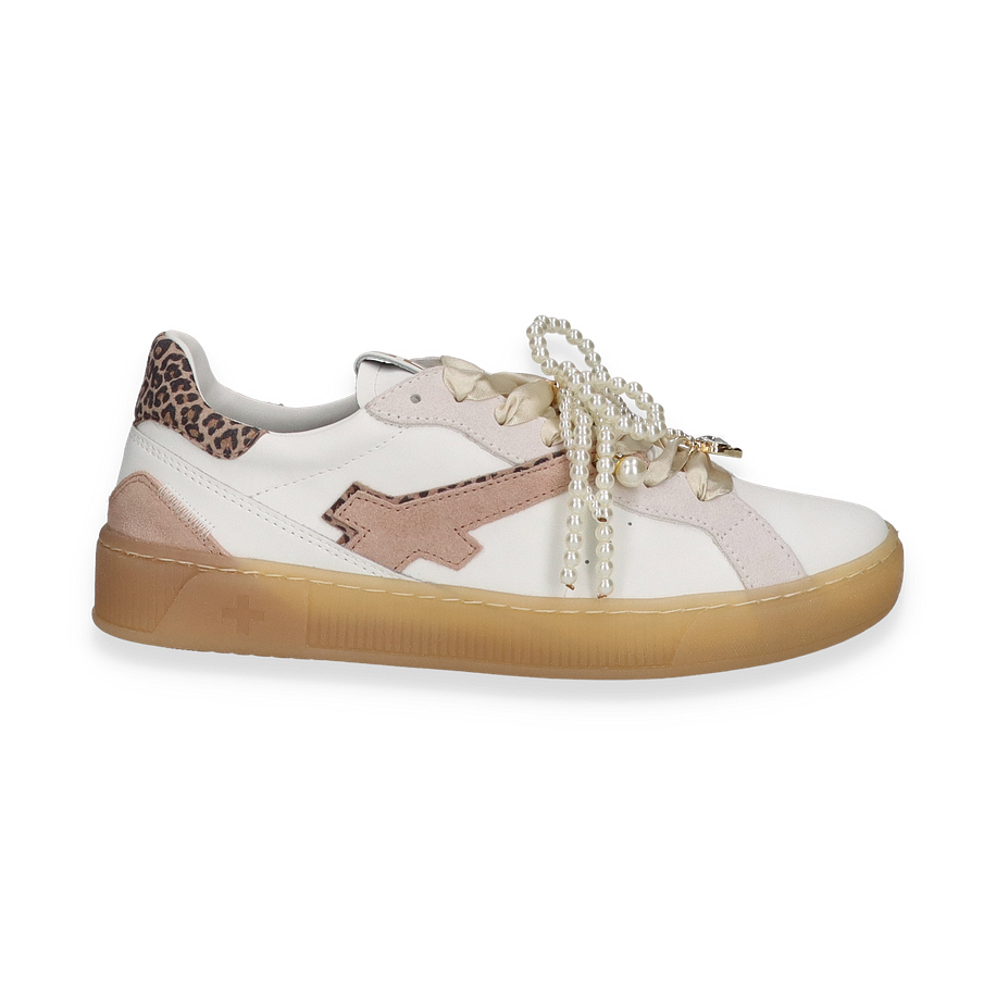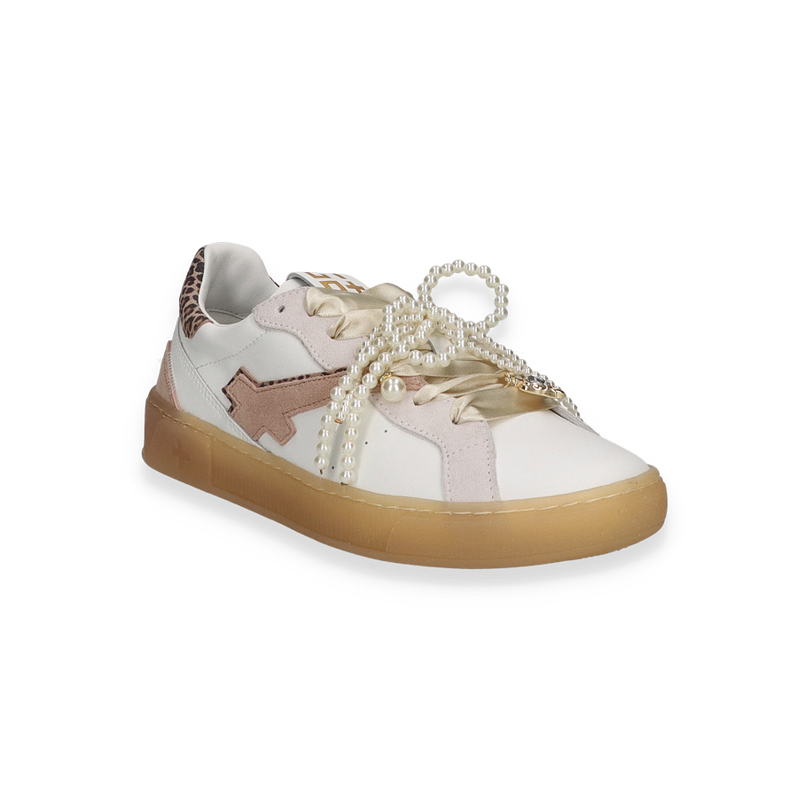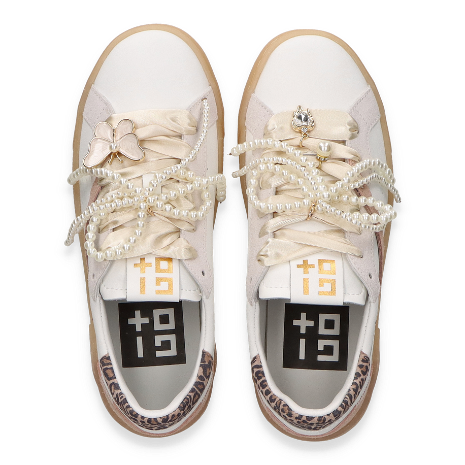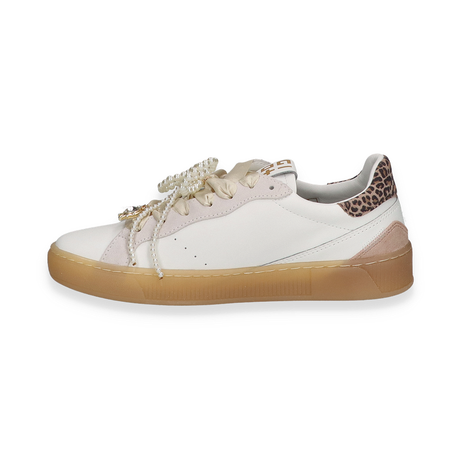 Entdecken Sie den eleganten Sneaker von Giove für Damen, der mit einem modernen Design in Weiß besticht. Der Schuh kombiniert stilvoll Leder und andere hochwertige Materialien im Obermaterial, während die subtile Leopardenmuster-Akzente und die dekorative Perlenverzierung einen Hauch von Raffinesse verleihen. Die klare Linienführung und die harmonische Farbgestaltung machen diesen Sneaker zu einem vielseitigen Begleiter für verschiedenste Anlässe.