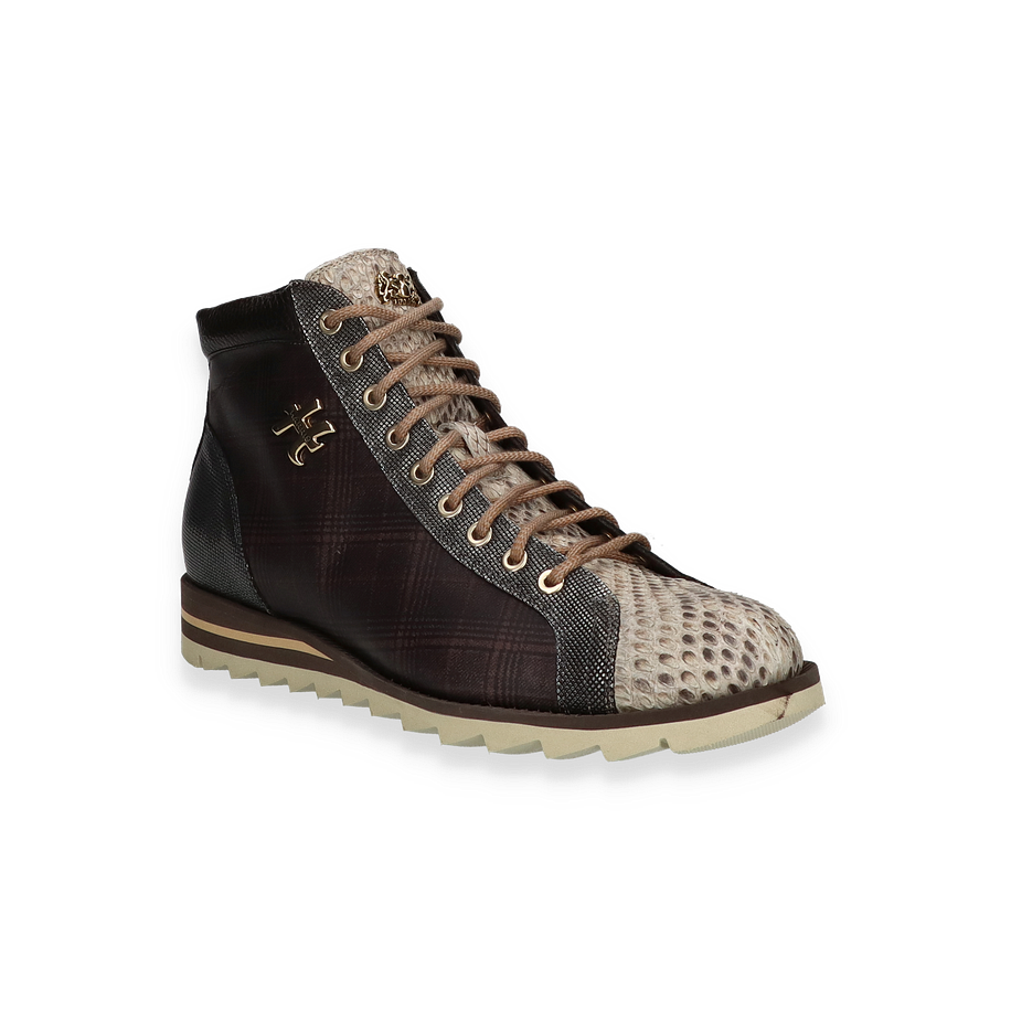 Entdecken Sie die einzigartigen Harris Schnürboots für Herren in der auffälligen Farbkombination petrol/braun. Diese Schuhe zeichnen sich durch ihr markantes Design aus, das durch die Schlangenleder-Details einen luxuriösen Touch erhält. Die hochwertige Verarbeitung und die sorgfältig ausgewählten Materialien machen diese Boots zu einem echten Hingucker. Die Harris Schnürboots bieten nicht nur Stil, sondern auch höchsten Tragekomfort. Das Obermaterial, Innenmaterial und die Innensohle bestehen aus Leder, das für ein angenehmes Fußklima sorgt. Die Gummisohle bietet hervorragende Traktion und Stabilität, während die 3 cm hohe Ferse zusätzlichen Komfort und eine elegante Silhouette bietet. Perfekt für den modebewussten Mann, der Wert auf Qualität und Design legt.