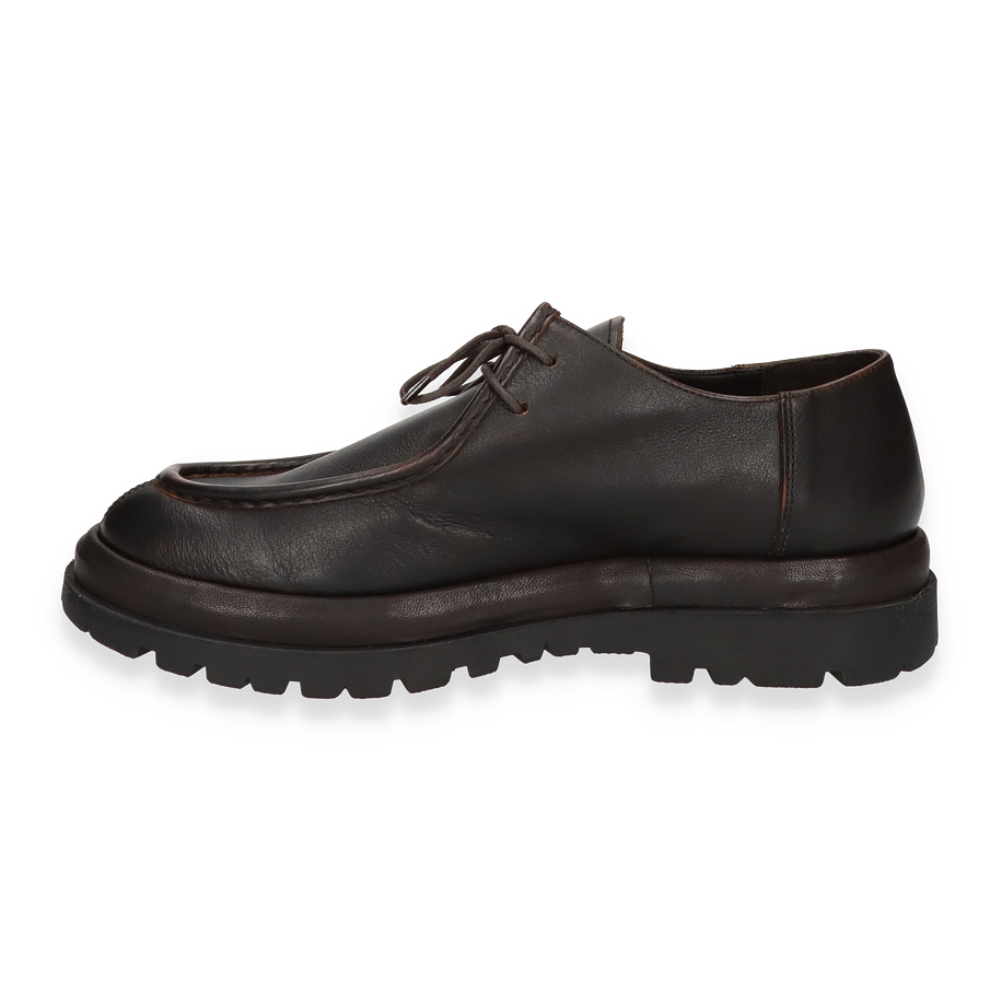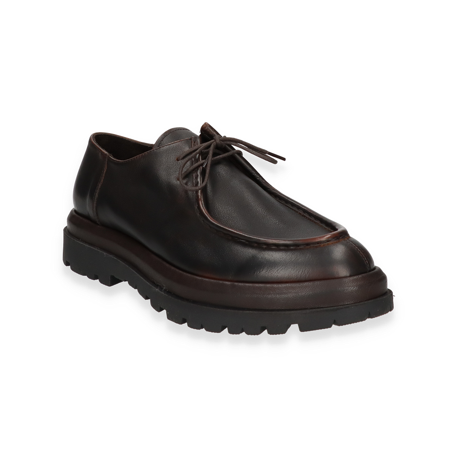 Der Herrlicher THE EDGEWALKER Schnürschuh in Dunkelbraun verkörpert zeitlose Eleganz und robusten Stil. Gefertigt aus hochwertigem Leder, präsentiert sich der Schuh mit einer glatten, polierten Oberfläche, die durch feine Nähte akzentuiert wird. Die klassische Schnürung und die kräftige Gummisohle verleihen dem Schuh nicht nur einen markanten Look, sondern auch Stabilität und Komfort. Perfekt für Herren, die Wert auf stilvolle und langlebige Fußbekleidung legen.