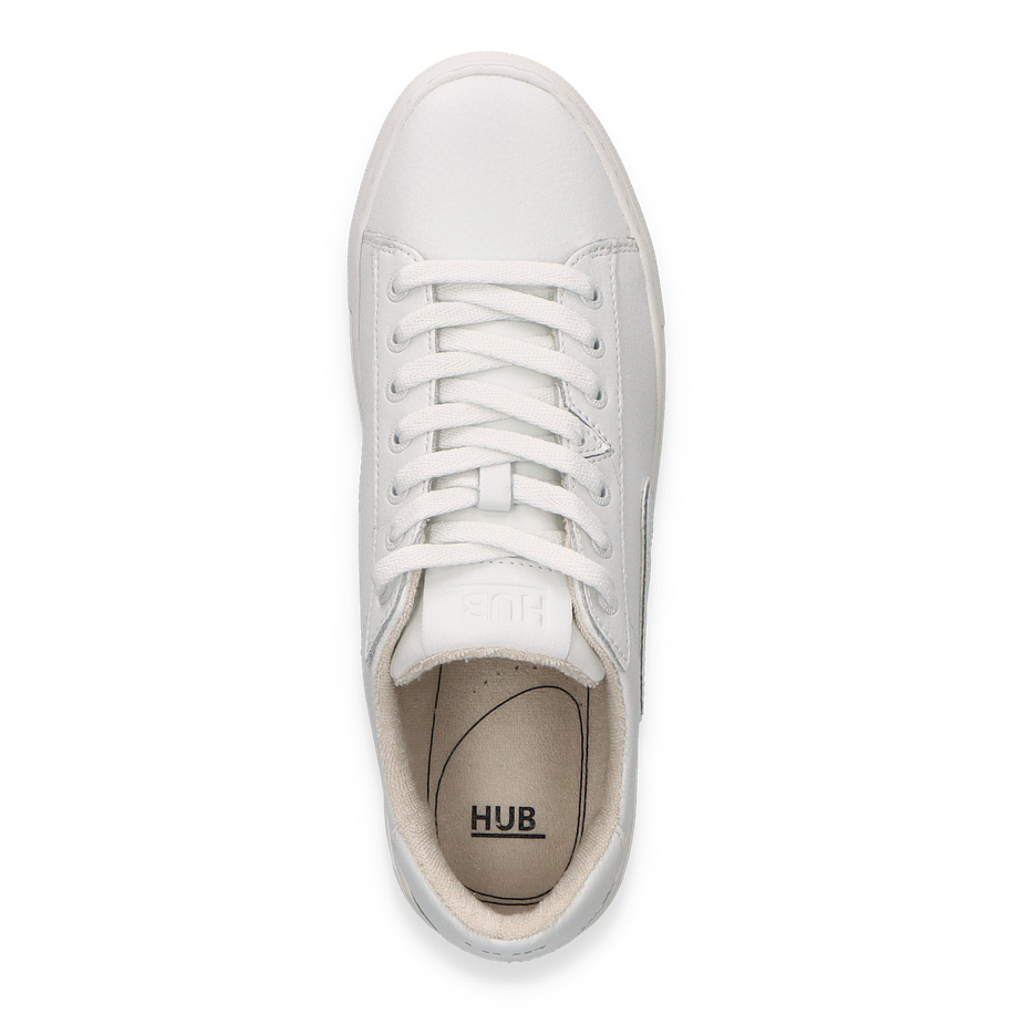 Der HUB HOOK Sneaker für Herren präsentiert sich in einem eleganten, weißen Design, das sowohl zeitlos als auch modern wirkt. Die klare Linienführung und das hochwertige Leder des Obermaterials verleihen diesem Schuh eine edle Optik, die sich mühelos in jede Garderobe integrieren lässt. Die dezente Markenprägung und die sorgfältige Verarbeitung unterstreichen die Qualität und den Stil dieses Sneakers, während die klassische Schnürung für einen sicheren Halt sorgt.