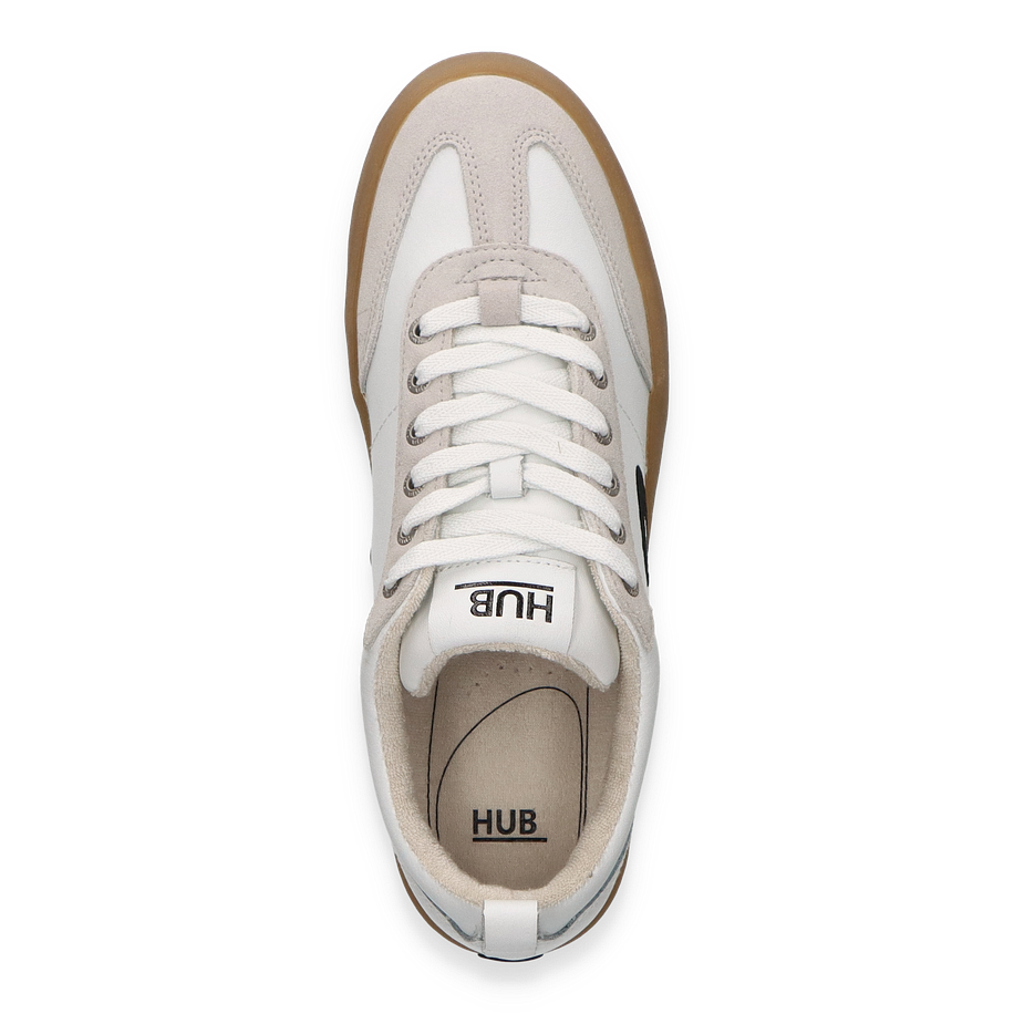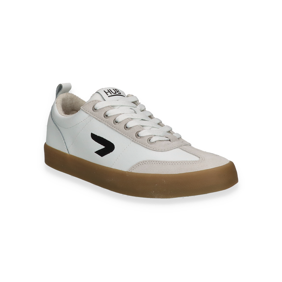 Der HUB MIAMI Sneaker für Herren präsentiert sich in einem eleganten Design, das durch seine weiße Farbgebung und die kontrastierende Gummisohle besticht. Das hochwertige Leder des Obermaterials verleiht dem Schuh eine edle Optik, während die sorgfältig gearbeiteten Details und die markante Logo-Applikation einen modernen Akzent setzen. Die klare Linienführung und die dezente Farbpalette machen diesen Sneaker zu einem vielseitigen Begleiter für verschiedene Anlässe.