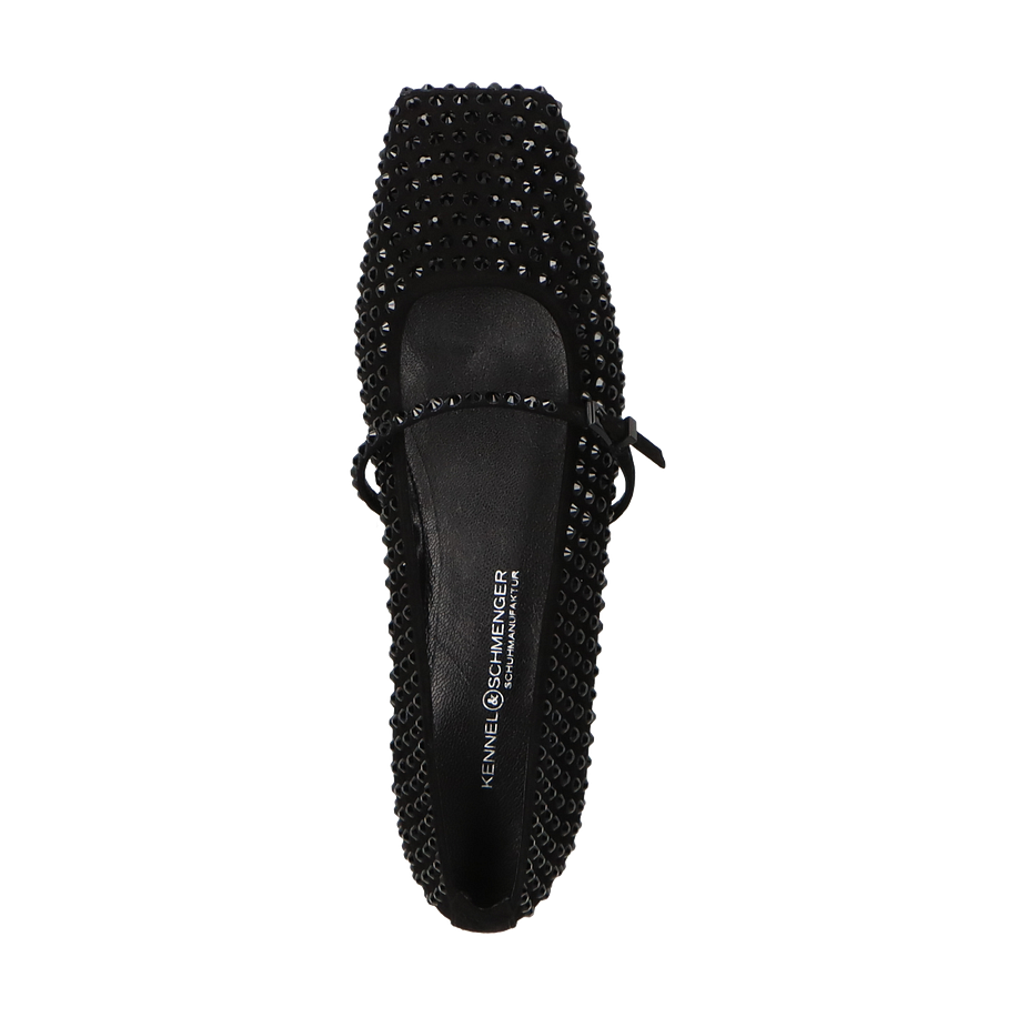 Die eleganten Ballerinas von Kennel & Schmenger in zeitlosem Schwarz vereinen Stil und Komfort auf eindrucksvolle Weise. Das Design besticht durch ein raffiniertes Muster aus glänzenden Applikationen, das den Schuhen einen Hauch von Glamour verleiht. Der dezente Riemen sorgt für zusätzlichen Halt und unterstreicht die feminine Silhouette. Diese Ballerinas sind die perfekte Wahl für Damen, die Wert auf modische Details legen und gleichzeitig einen bequemen Schuh für den Alltag suchen.
