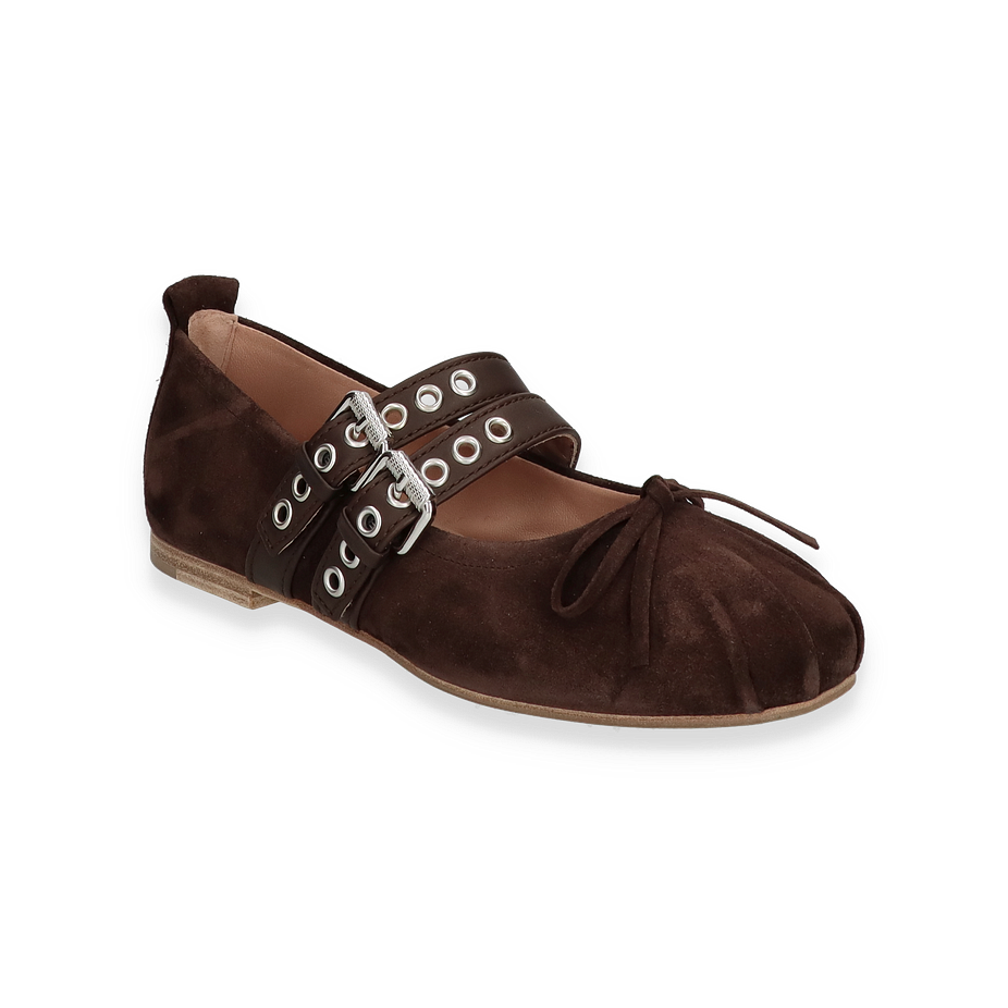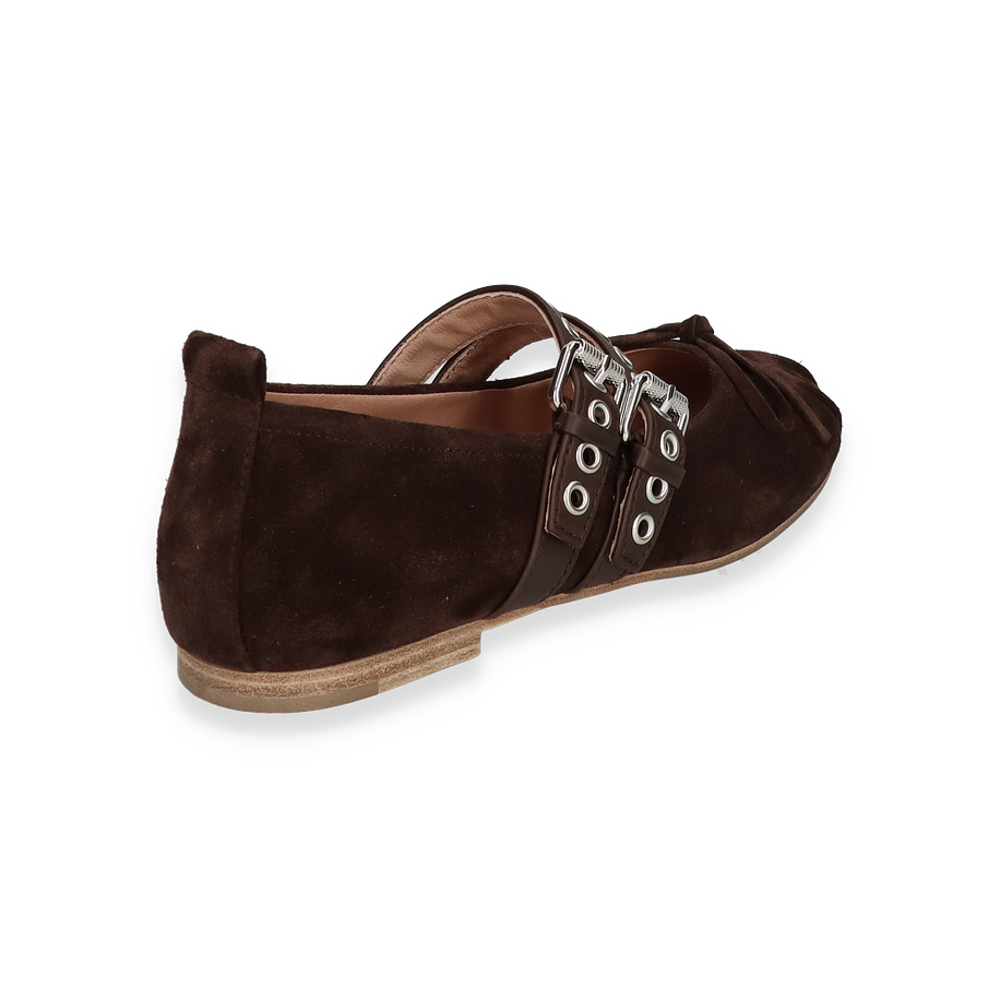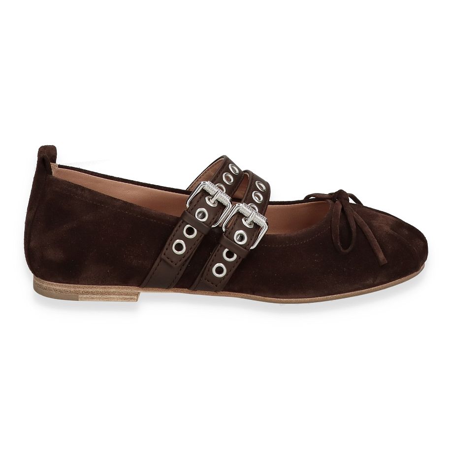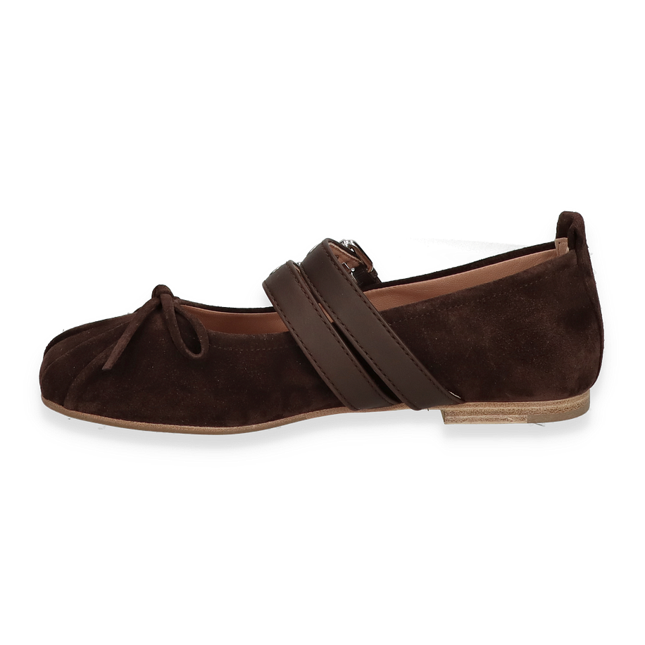 Preis inkl. MwSt.Entdecken Sie die eleganten Ballerinas von Kennel & Schmenger in einem tiefen Dunkelbraun, die durch ihre raffinierte Gestaltung bestechen. Die doppelte Riemenverzierung mit silbernen Schnallen und Ösen verleiht dem Schuh einen modernen Touch, während die zarte Schleife an der Vorderseite für eine feminine Note sorgt. Diese Ballerinas sind die perfekte Wahl für Damen, die Stil und Komfort miteinander verbinden möchten.