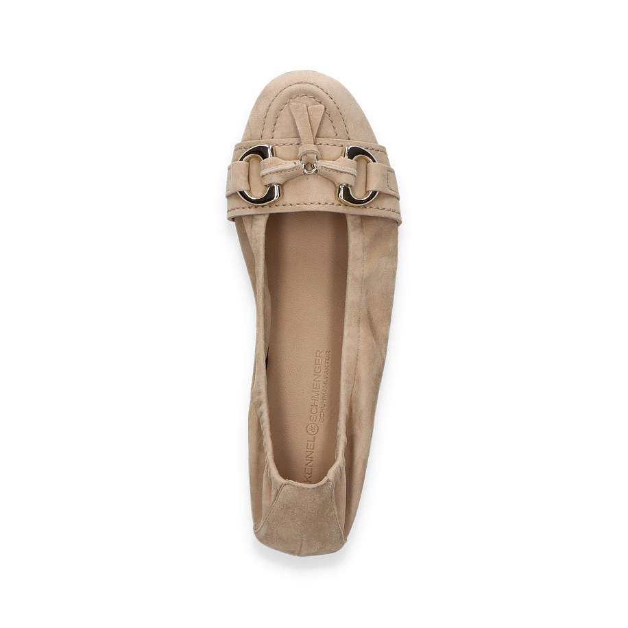 Entdecken Sie die eleganten Ballerinas von Kennel & Schmenger, die für Damen entworfen wurden. Diese stilvollen Schuhe in einem sanften Beigeton verkörpern zeitlose Eleganz und sind perfekt für jeden Anlass. Der dezente Absatz von 1 cm bietet Komfort, während das feine Leder als Obermaterial für eine luxuriöse Optik sorgt. Die metallischen Details auf der Vorderseite verleihen dem Schuh einen modernen Touch und machen ihn zu einem echten Hingucker.