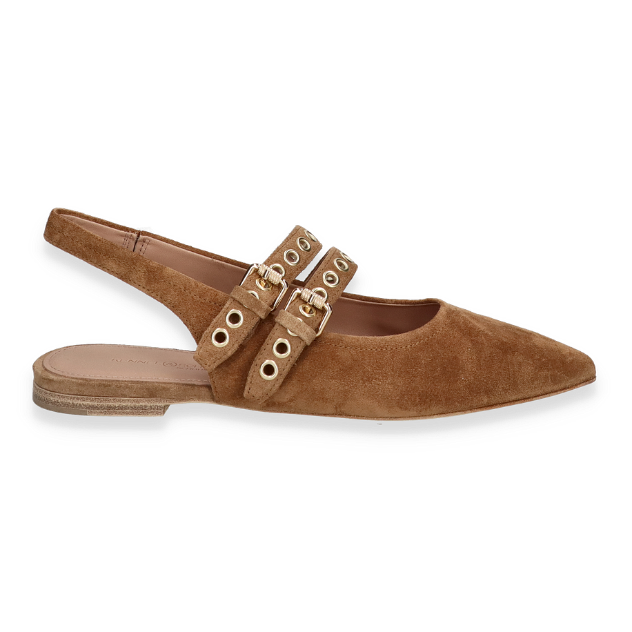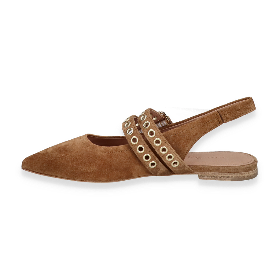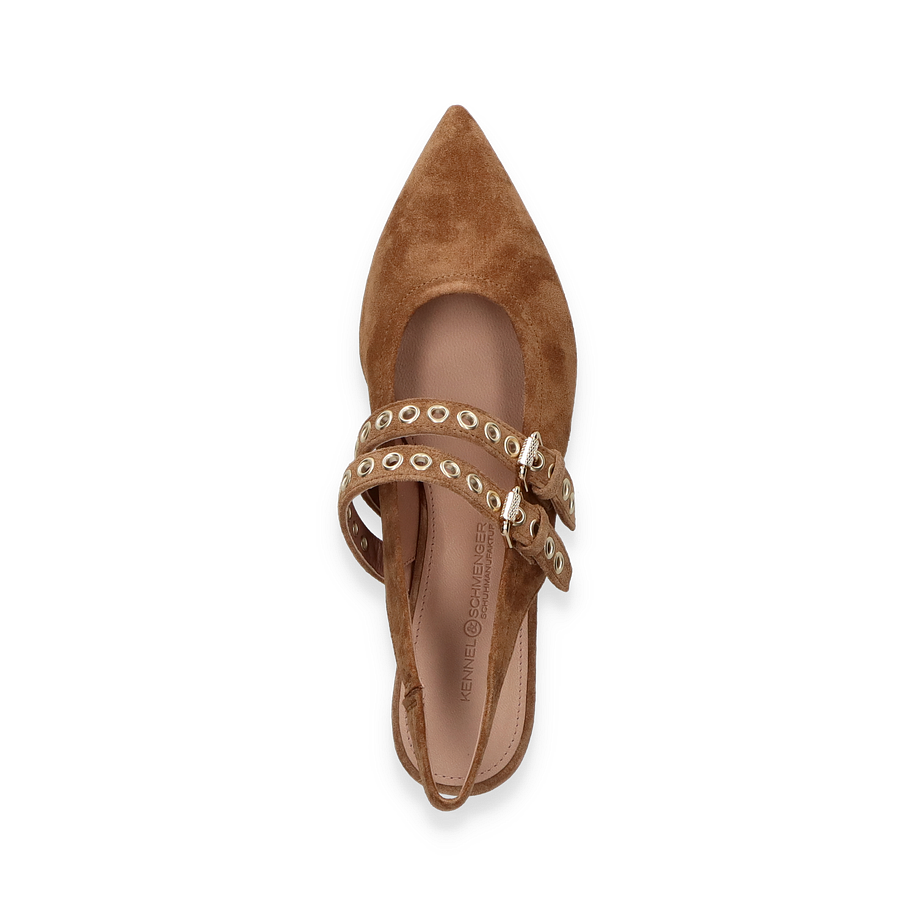 Die Mittelbraunen Slingpumps von Kennel & Schmenger verkörpern zeitlose Eleganz und modernen Stil für Damen. Das Design besticht durch seine feine Lederoberfläche, die in Kombination mit den dekorativen Metallösen und den doppelten Riemen einen raffinierten Akzent setzt. Der spitze Zehenbereich verleiht dem Schuh eine schlanke Silhouette, während der offene Fersenbereich für eine luftige Leichtigkeit sorgt. Diese Slingpumps sind die perfekte Wahl für anspruchsvolle Anlässe oder stilvolle Alltagsoutfits.