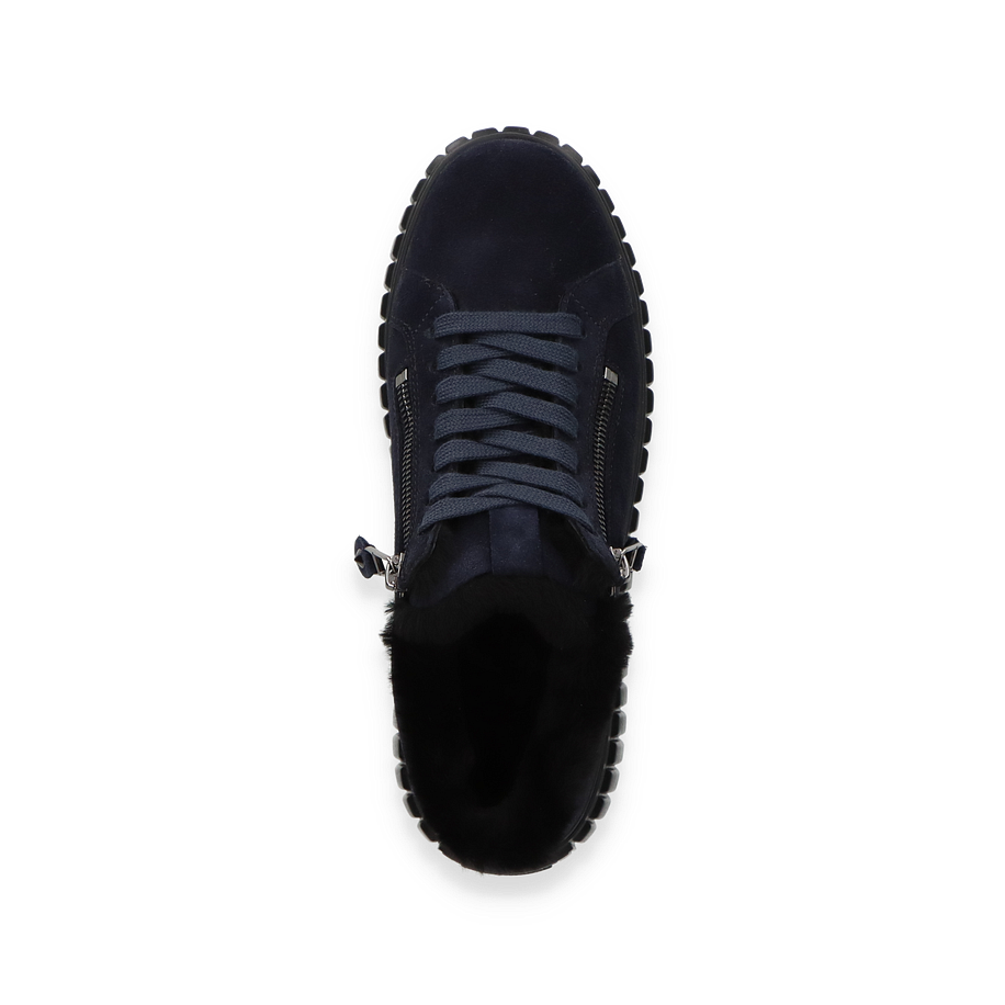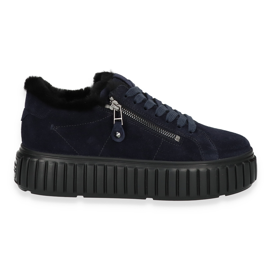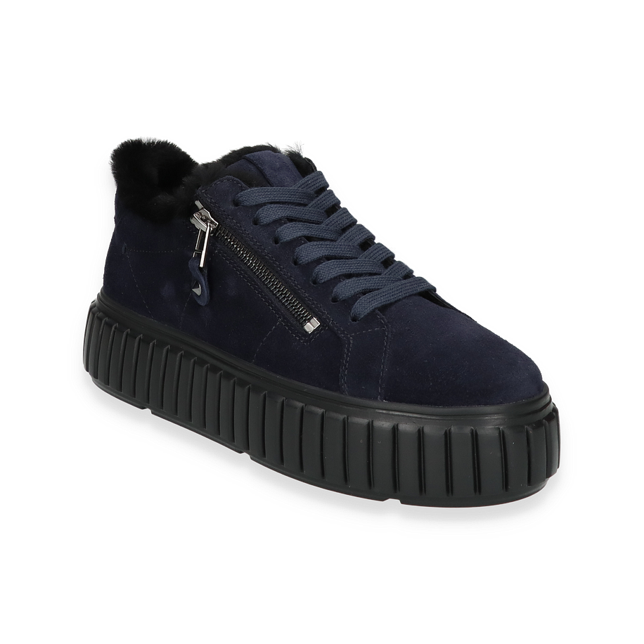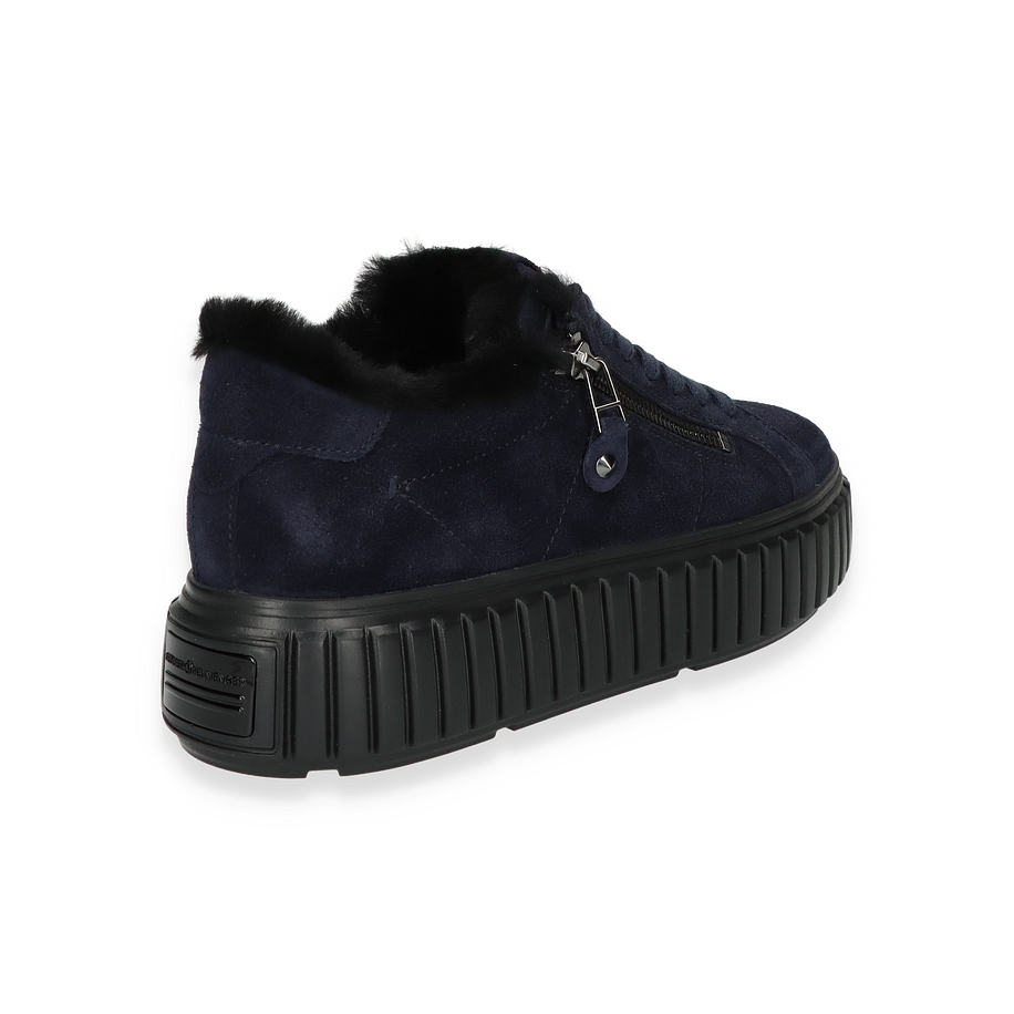 Preis inkl. MwSt.Entdecken Sie den eleganten Sneaker von Kennel & Schmenger für Damen in einem tiefen Dunkelblau. Das Design besticht durch seine moderne Silhouette und die markante, geriffelte Gummisohle, die nicht nur stilvoll, sondern auch funktional ist. Der seitliche Reißverschluss verleiht dem Schuh einen Hauch von Raffinesse und sorgt gleichzeitig für einfaches An- und Ausziehen. Die Kombination aus hochwertigem Lammfell als Obermaterial und einem warmen Innenfutter bietet luxuriösen Komfort und Wärme, ideal für kältere Tage.