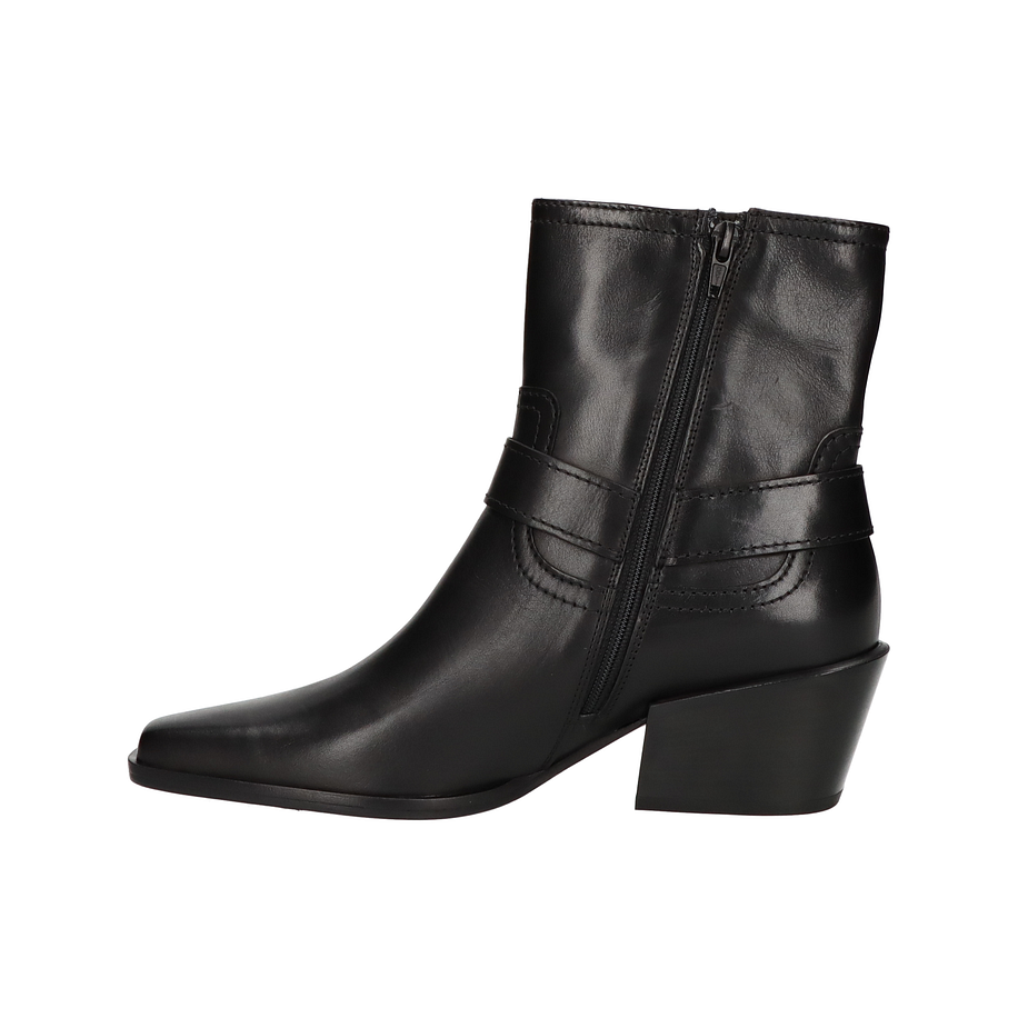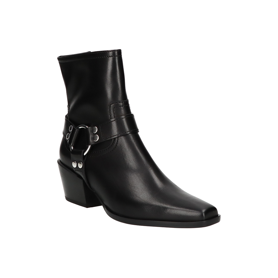 Die Kennel & Schmenger Western Boots in elegantem Schwarz sind ein stilvoller Begleiter für Damen. Das hochwertige Leder-Obermaterial verleiht den Bikerboots einen edlen Look, während der seitliche Reißverschluss für einfaches An- und Ausziehen sorgt. Der markante Blockabsatz mit einer Höhe von 5 cm und die dekorativen Metall-Details unterstreichen den robusten und dennoch femininen Stil dieser Stiefeletten. Diese Western Boots bieten nicht nur ein ansprechendes Design, sondern auch hohen Tragekomfort. Das Innenmaterial, die Innensohle und das Obermaterial bestehen aus weichem Leder, das sich angenehm an den Fuß anschmiegt. Die Sohle aus Leder und Gummi sorgt für eine gute Stabilität und Langlebigkeit. Perfekt für modebewusste Damen, die Wert auf Qualität und Stil legen.