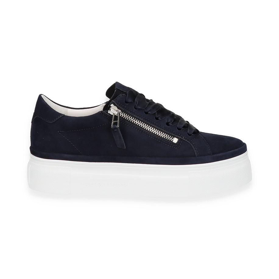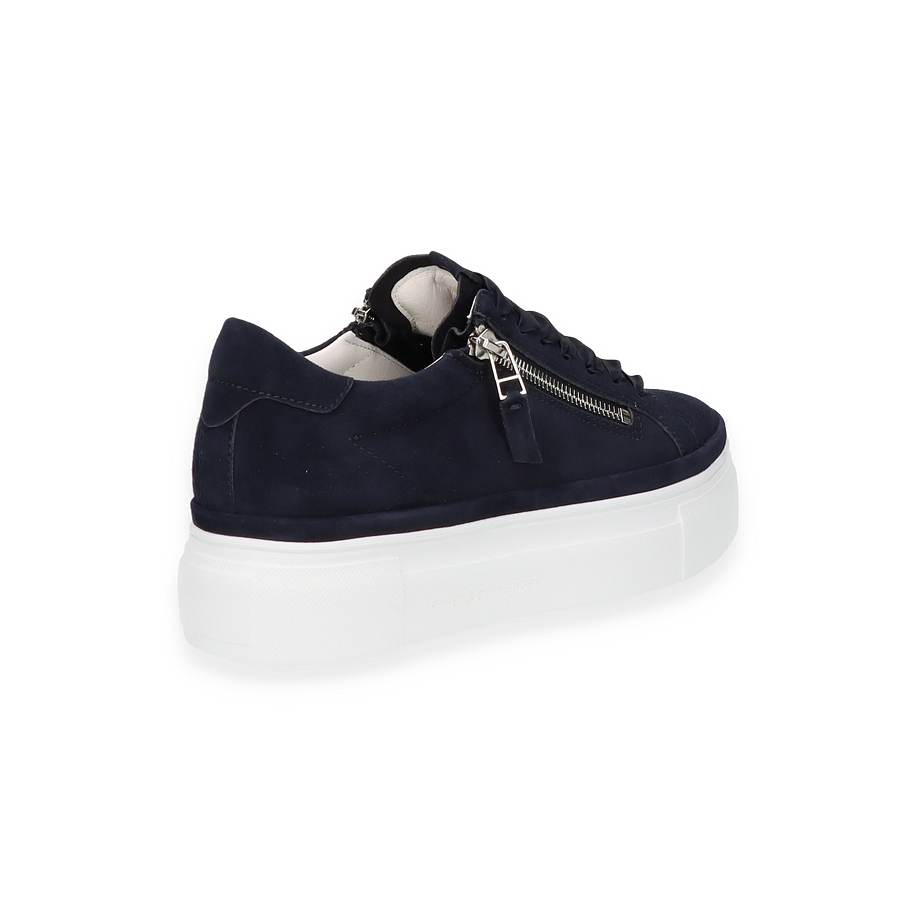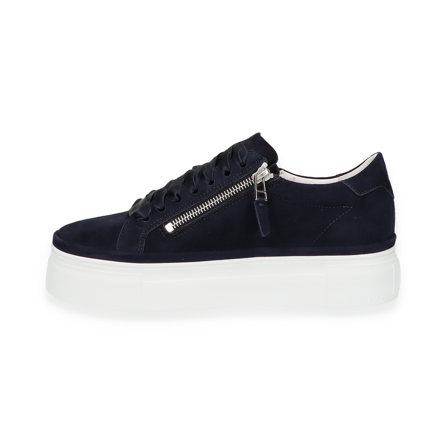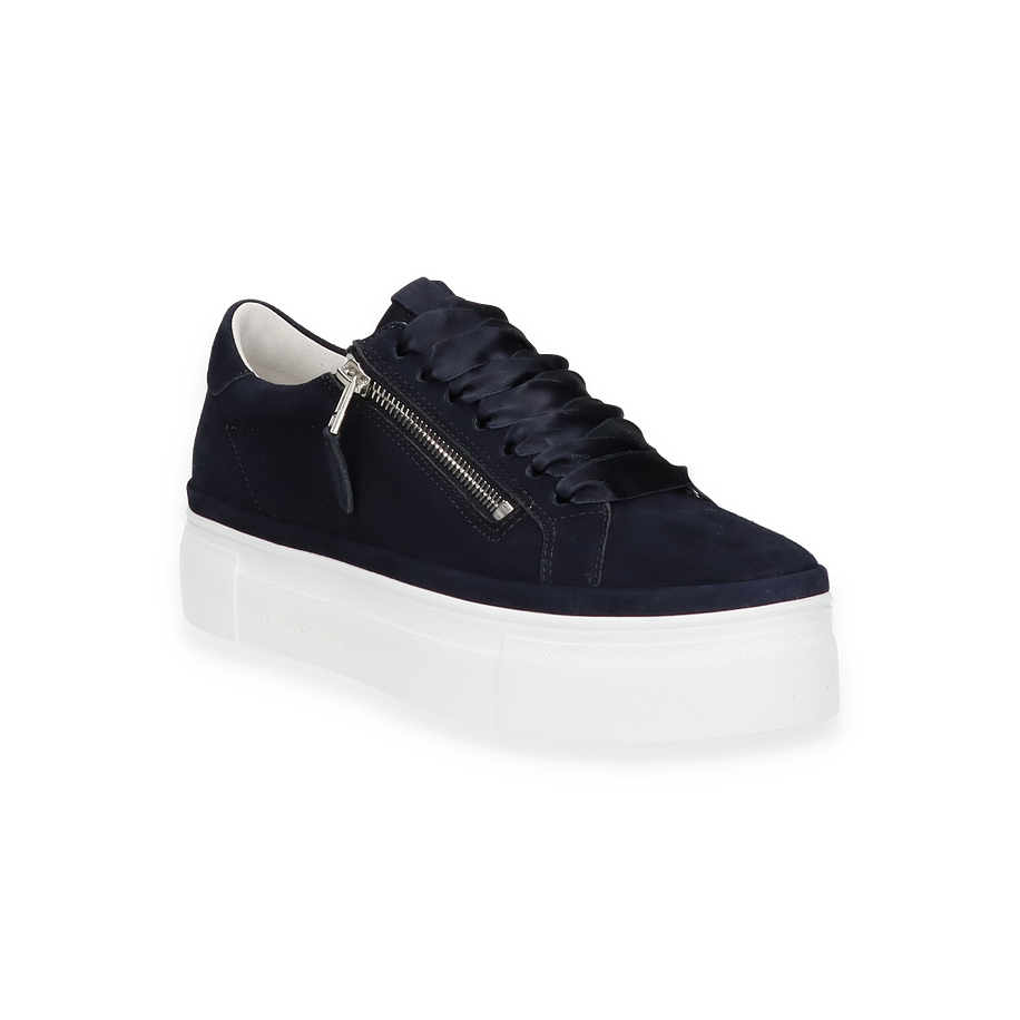 Preis inkl. MwSt.Der Kennel & Schmenger Sneaker "FIX" in elegantem Dunkelblau bietet einen stilvollen und modernen Look für Damen. Die glatte Lederoberfläche wird durch einen seitlichen Reißverschluss akzentuiert, der nicht nur ein optisches Highlight setzt, sondern auch das An- und Ausziehen erleichtert. Die breiten Schnürsenkel aus Satin verleihen dem Schuh eine luxuriöse Note, während die erhöhte weiße Gummisohle für einen zeitgemäßen Kontrast sorgt. Dieser Sneaker ist die perfekte Wahl für modebewusste Frauen, die Wert auf Qualität und Design legen.