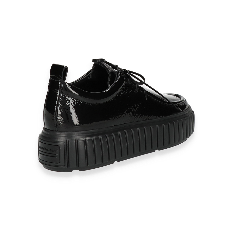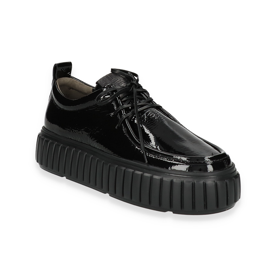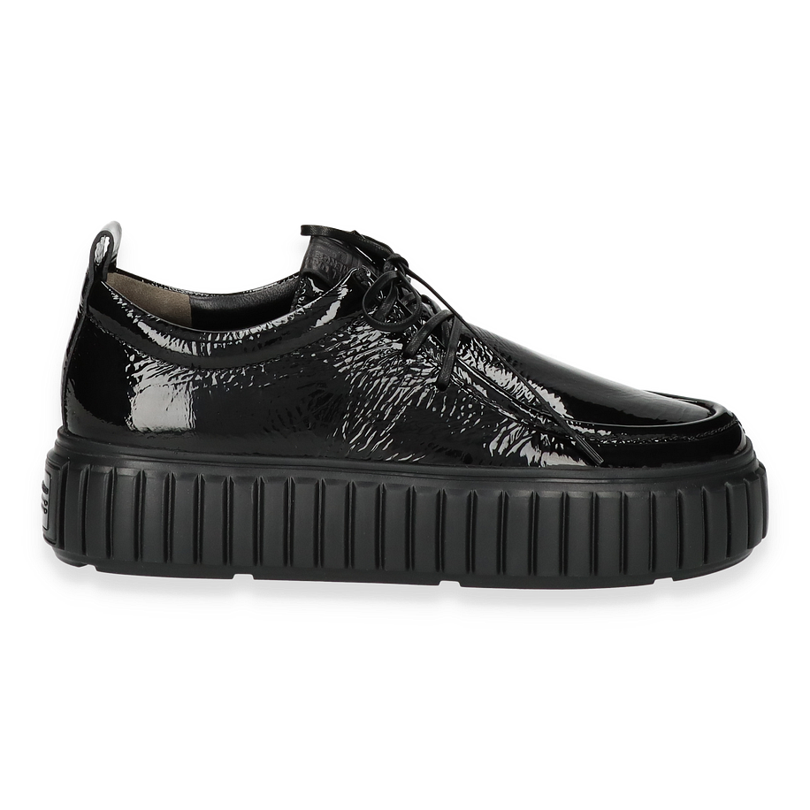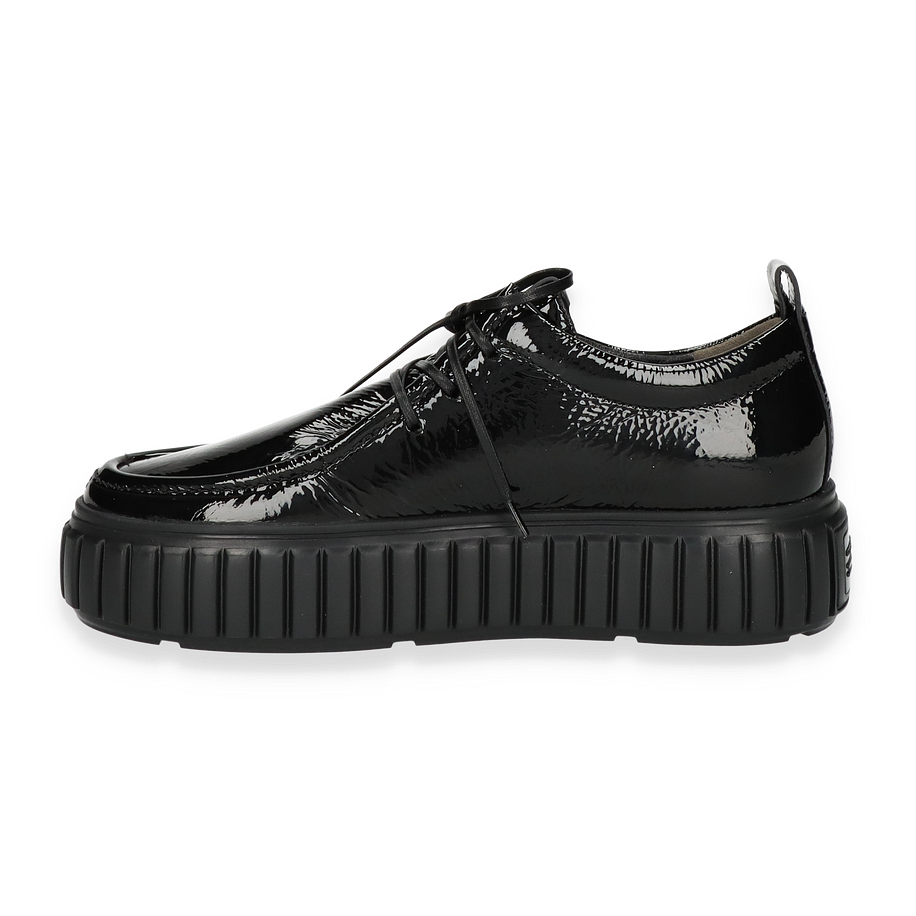 Der Kennel & Schmenger Schnürschuh ZAP für Damen präsentiert sich in einem eleganten Schwarz, das durch sein glänzendes Leder-Obermaterial besticht. Der Sneaker kombiniert modernen Stil mit einem robusten, geriffelten Gummisohle-Design, das nicht nur optisch auffällt, sondern auch für Stabilität sorgt. Die sorgfältige Verarbeitung und die feinen Details machen diesen Schuh zu einem idealen Begleiter für stilbewusste Frauen, die Wert auf Qualität und Design legen.