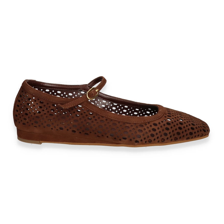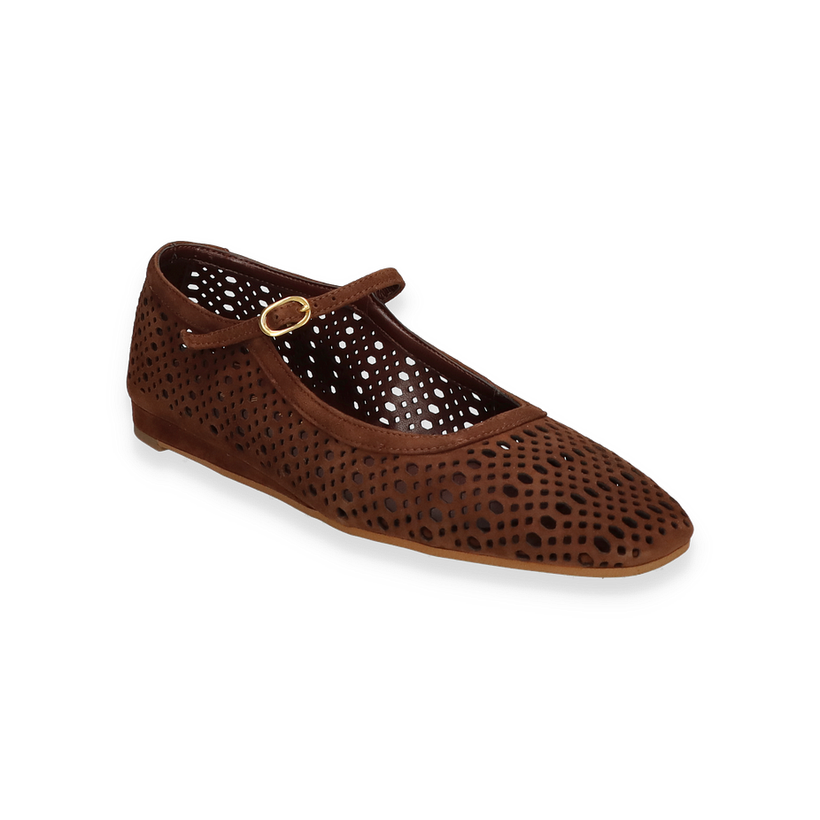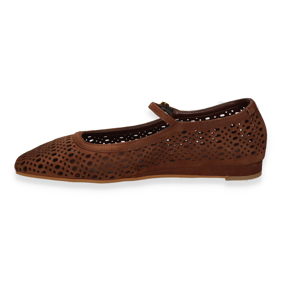 Preis inkl. MwSt.Entdecken Sie die eleganten Ballerinas von Konstantin Starke in einem warmen Braunton, die mit ihrem raffinierten Design überzeugen. Diese für Damen entworfenen Schuhe zeichnen sich durch ein filigranes Lochmuster aus, das sowohl Stil als auch Atmungsaktivität bietet. Der zarte Riemen mit goldener Schnalle verleiht dem Schuh eine feminine Note und sorgt für sicheren Halt. Die flache Form mit einer Absatzhöhe von nur 1 cm macht sie ideal für den täglichen Gebrauch, ohne auf Eleganz zu verzichten.