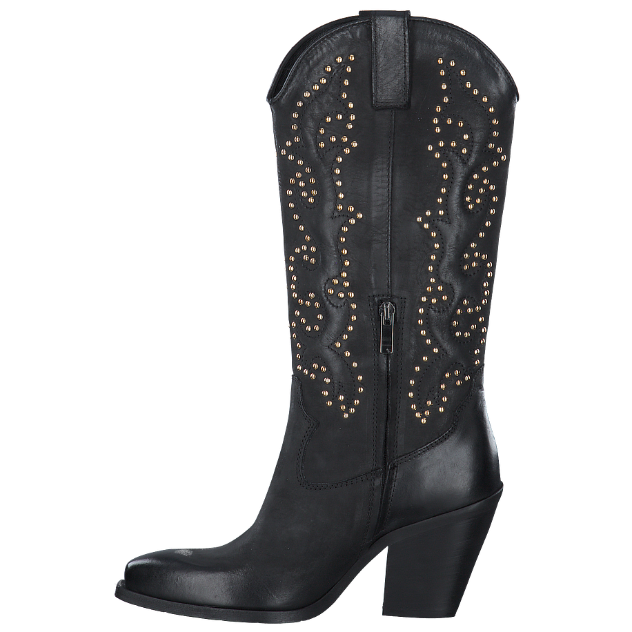 Entdecken Sie die exquisiten Western Boots von Konstantin Starke für Damen, die durch ihre erstklassige Verarbeitung und stilvolle Optik überzeugen. Diese eleganten Stiefel in klassischem Schwarz zeichnen sich durch eine Absatzhöhe von 9 cm aus, die Ihnen eine ansprechende Silhouette verleiht. Der Schaft dieser Stiefel misst 31,5 cm in der Höhe und 30 cm in der Breite, was für eine bequeme Passform sorgt. Gefertigt aus hochwertigem Leder, bieten sowohl das Obermaterial als auch das Innenfutter und die Innensohle ein luxuriöses Tragegefühl. Die robuste Gummisohle gewährleistet zudem optimalen Halt und Langlebigkeit. Ein besonderes Highlight sind die dekorativen Zier-Nieten auf dem Schaft, die dem Design eine edle Note verleihen und den Western-Look perfekt abrunden. Diese Western Boots sind die ideale Wahl für modebewusste Damen, die Wert auf Qualität und Stil legen.