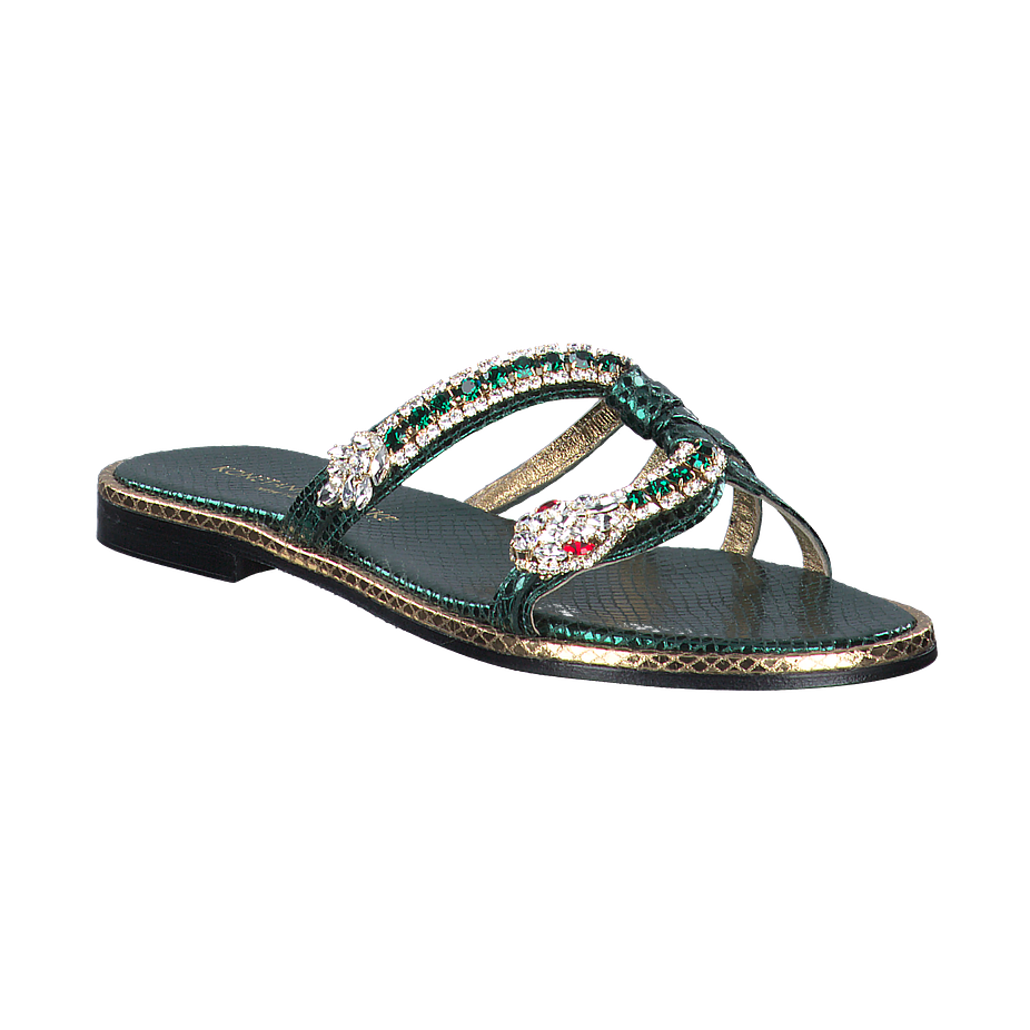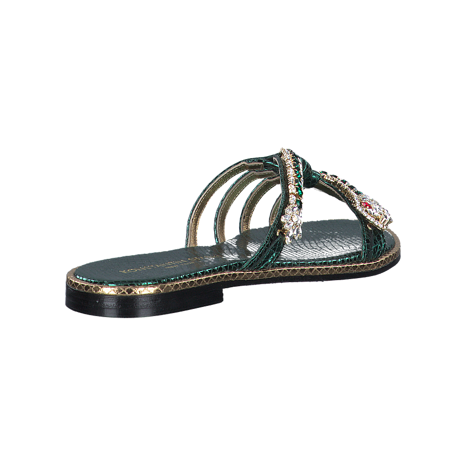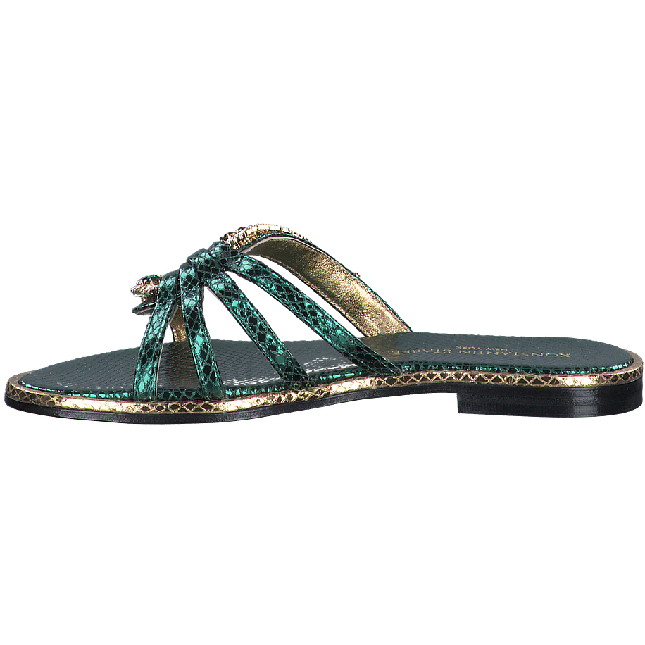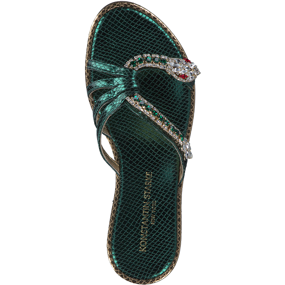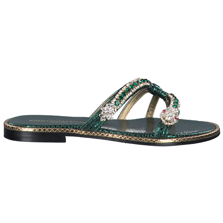 Entdecken Sie die eleganten Pantoletten von Konstantin Starke für Damen. Diese Schuhe bestechen durch ihr dunkelgrünes Leder und die Schmuck-Applikation in Form einer Schlange, die einen Hauch von Exotik und Luxus verleiht. Mit einer Absatzhöhe von 1,5 cm bieten sie einen angenehmen Tragekomfort. Das Obermaterial besteht aus Leder und sonstigem Material, während das Innenfutter und die Innensohle aus Leder gefertigt sind, was für ein angenehmes Fußklima sorgt. Die Ledersohle sorgt für einen sicheren Tritt. Die Schlangenoptik verleiht diesen Pantoletten einen einzigartigen und modischen Look.