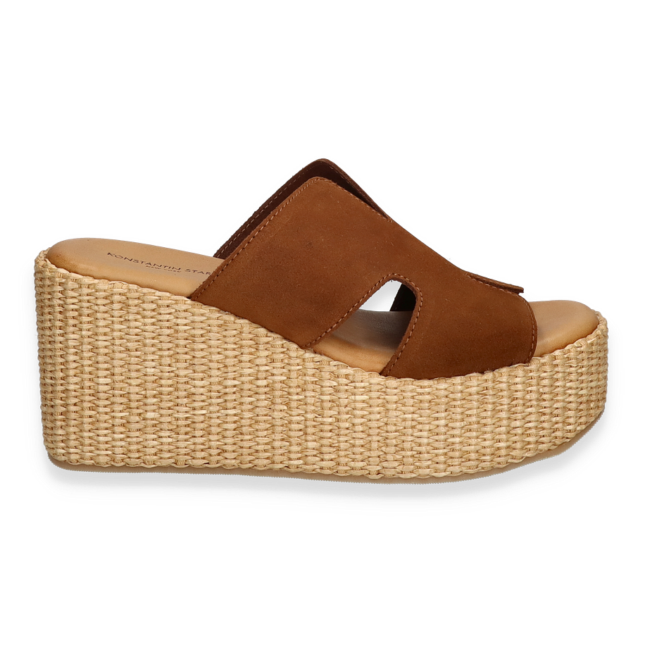 Preis inkl. MwSt.Entdecken Sie die stilvollen Pantoletten für Damen von Konstantin Starke in einem eleganten Mittelbraun. Diese Schuhe vereinen Komfort und modisches Design, perfekt für den anspruchsvollen Geschmack. Der markante Keilabsatz verleiht Ihnen eine ansprechende Höhe von 9 cm, während das geflochtene Detail der Sohle einen Hauch von Sommer verleiht. Die offene Form und das hochwertige Leder der Oberseite sorgen für ein angenehmes Tragegefühl und lassen sich mühelos mit verschiedenen Outfits kombinieren.