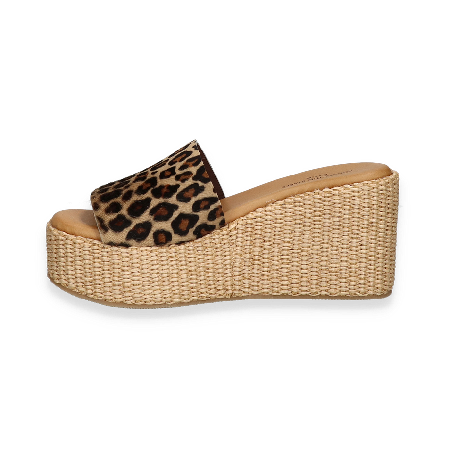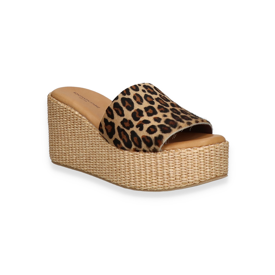 Entdecken Sie die stilvollen Pantoletten von Konstantin Starke für Damen, die durch ihr auffälliges Design in Beige/Bunt mit einem eleganten Leopardenmuster bestechen. Der 8,5 cm hohe Keilabsatz verleiht Ihnen nicht nur Höhe, sondern auch einen modischen Akzent, der jedes Outfit aufwertet. Die Kombination aus Leder und geflochtenem Detail an der Sohle schafft einen harmonischen Look, der sowohl für den Alltag als auch für besondere Anlässe geeignet ist.