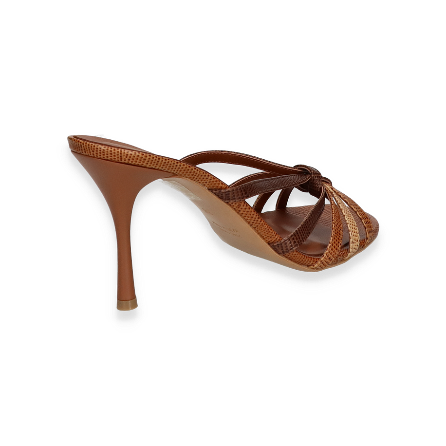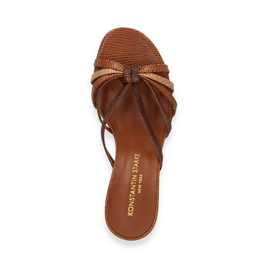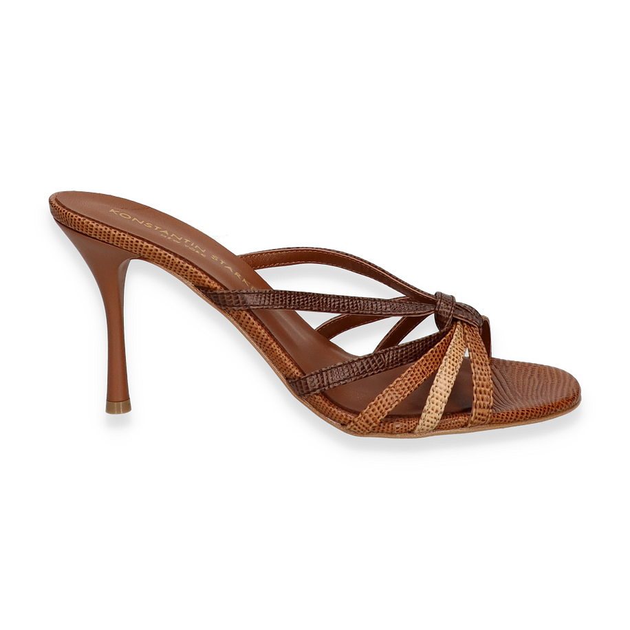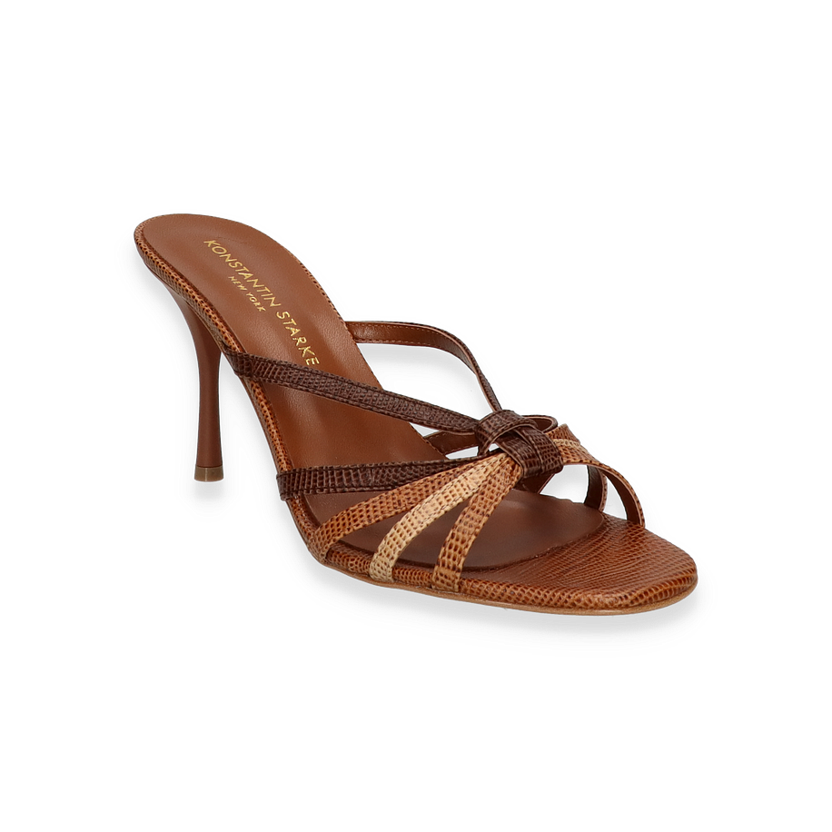 Die Pantoletten von Konstantin Starke präsentieren sich in einem eleganten Braunton, der durch das hochwertige Leder einen luxuriösen Glanz erhält. Die filigranen Riemen und die raffinierte Gestaltung verleihen diesen Schuhen eine zeitlose Eleganz, die perfekt für Damen geeignet ist. Der 6 cm hohe Absatz sorgt für eine anmutige Silhouette und bietet gleichzeitig einen angenehmen Tragekomfort. Diese Pantoletten sind die ideale Wahl für besondere Anlässe oder stilvolle Sommerabende.