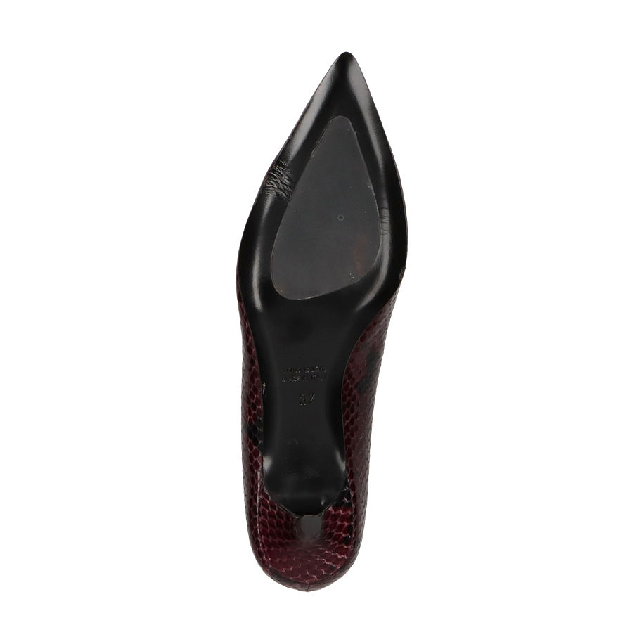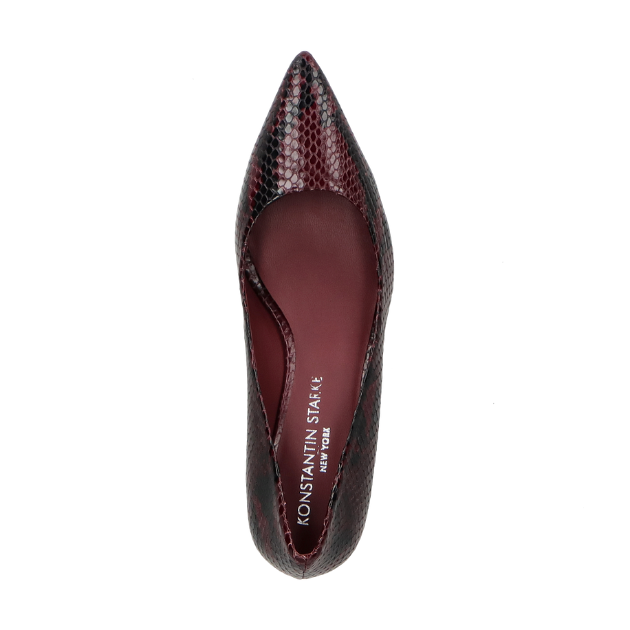 Die klassischen Pumps von Konstantin Starke in der eleganten Farbe Bordeaux vereinen zeitlose Eleganz mit modernem Design. Das Obermaterial aus hochwertigem Leder besticht durch eine raffinierte Schlangenleder-Optik, die jedem Outfit einen Hauch von Luxus verleiht. Der spitze Schnitt und der 5 cm hohe Absatz sorgen für eine feminine Silhouette, die sowohl im Büro als auch bei besonderen Anlässen überzeugt.