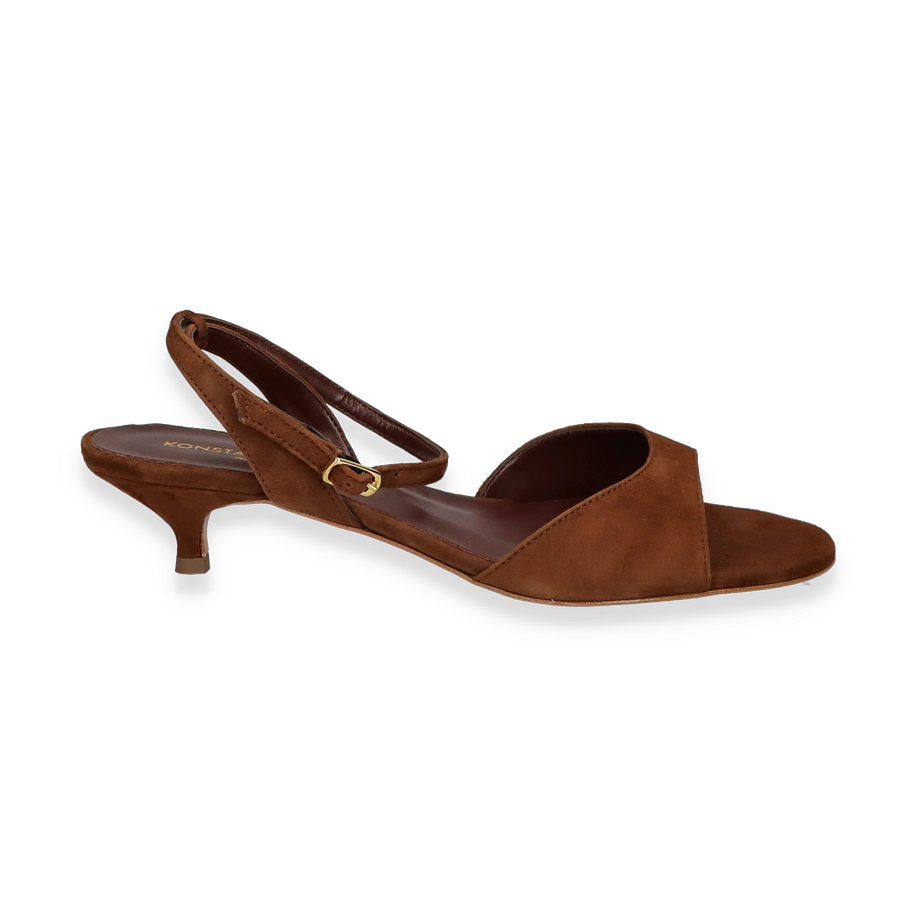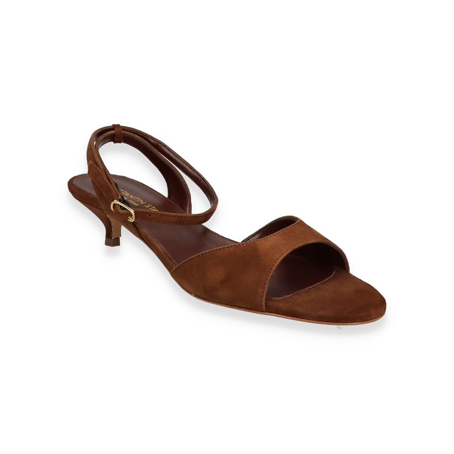 Preis inkl. MwSt.Die Sandaletten von Konstantin Starke in elegantem Dunkelbraun sind ein stilvolles Accessoire für Damen. Das Design besticht durch seine schlichte Eleganz und den raffinierten Schnitt, der den Fuß vorteilhaft umschmeichelt. Der zarte Riemen mit goldener Schnalle sorgt für einen sicheren Halt und verleiht dem Schuh einen Hauch von Luxus. Der 4 cm hohe Absatz bietet eine angenehme Höhe, die sowohl Komfort als auch Eleganz gewährleistet.