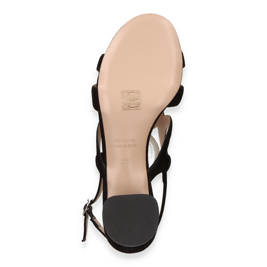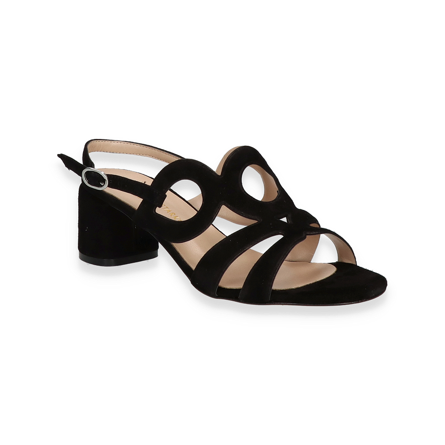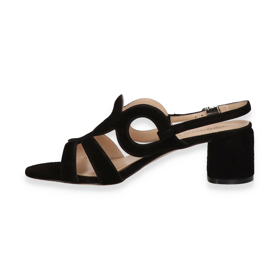 Preis inkl. MwSt.Die Sandaletten von Konstantin Starke präsentieren sich in einem eleganten Schwarz, das zeitlose Raffinesse ausstrahlt. Die kunstvoll gestalteten Riemen mit kreisförmigen Ausschnitten verleihen dem Design eine moderne Note, während der 5,5 cm hohe Blockabsatz für eine angenehme Höhe sorgt, die sowohl Stil als auch Komfort bietet. Diese Sandaletten für Damen sind die perfekte Wahl für besondere Anlässe oder elegante Alltagslooks.