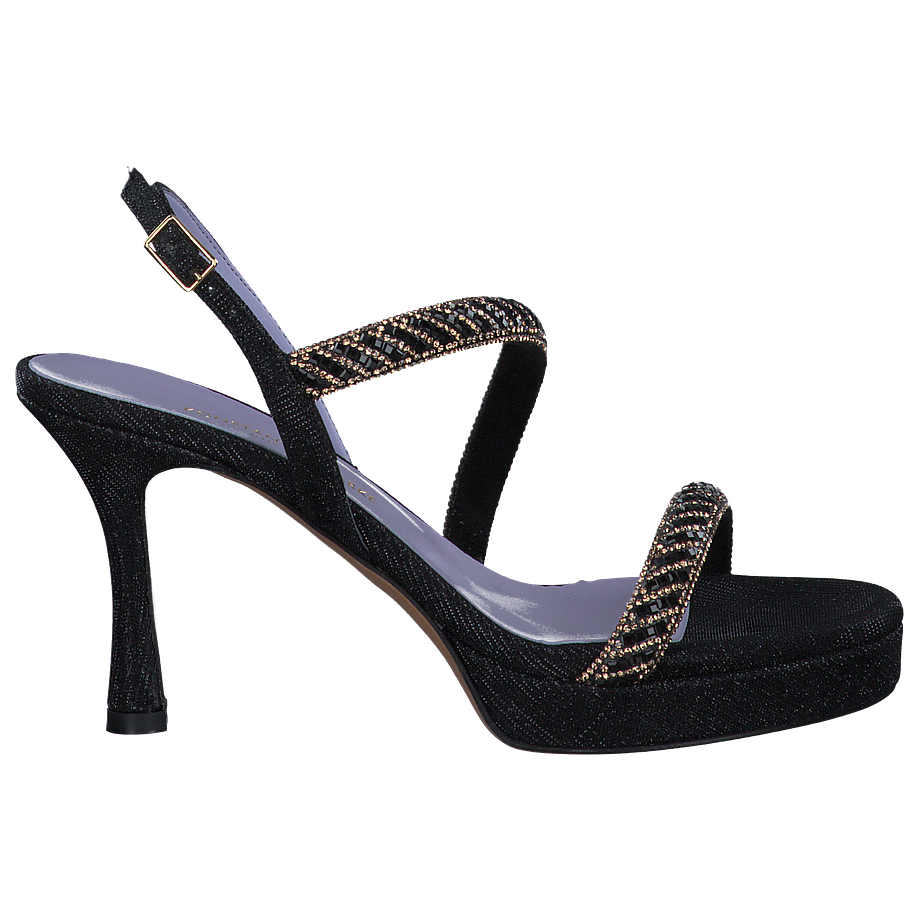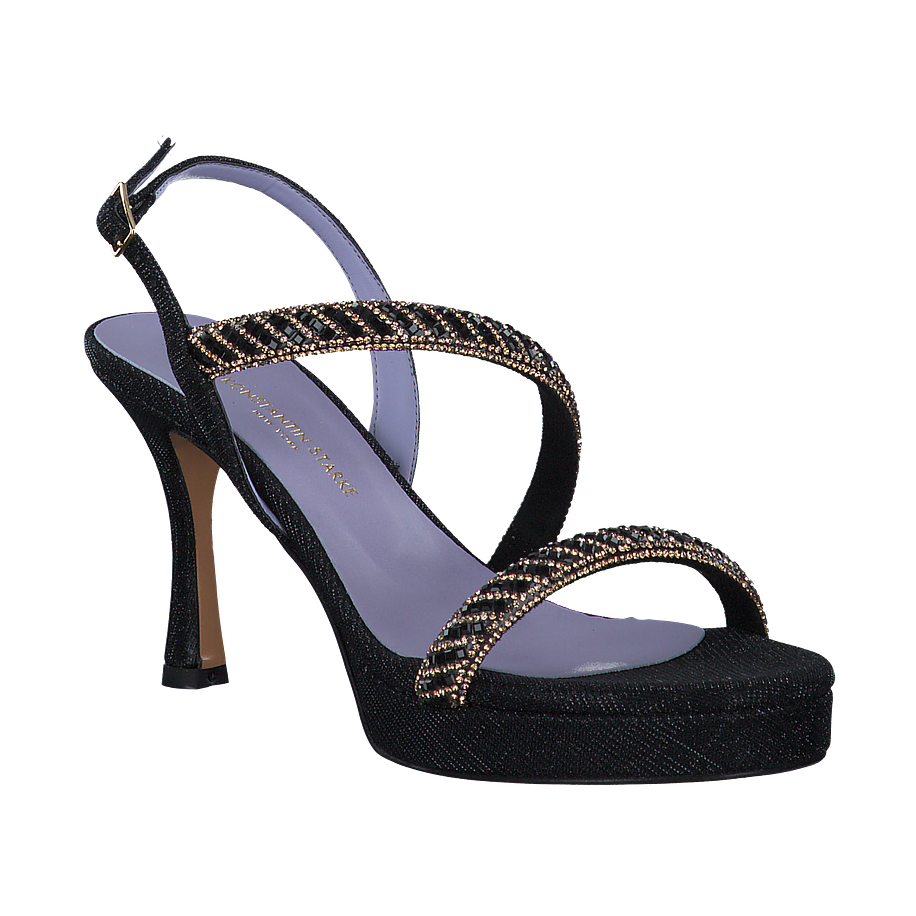 Entdecken Sie die eleganten Sandaletten von Konstantin Starke für Damen. Diese schicken Schuhe sind in der Farbe Schwarz erhältlich und bestechen durch ihre Strassstein-Verzierung. Sie verfügen über eine Absatzhöhe von 8,5 cm und eine Plateauhöhe von 2 cm, die Ihnen einen angenehmen Tragekomfort bieten. Das Obermaterial besteht aus hochwertigem Textil, während das Innenfutter aus Leder und sonstigem Material besteht. Die Innensohle aus Leder und die Laufsohle aus Leder sorgen für ein luxuriöses Tragegefühl. Gönnen Sie sich diese stilvollen Schuhe von Konstantin Starke.