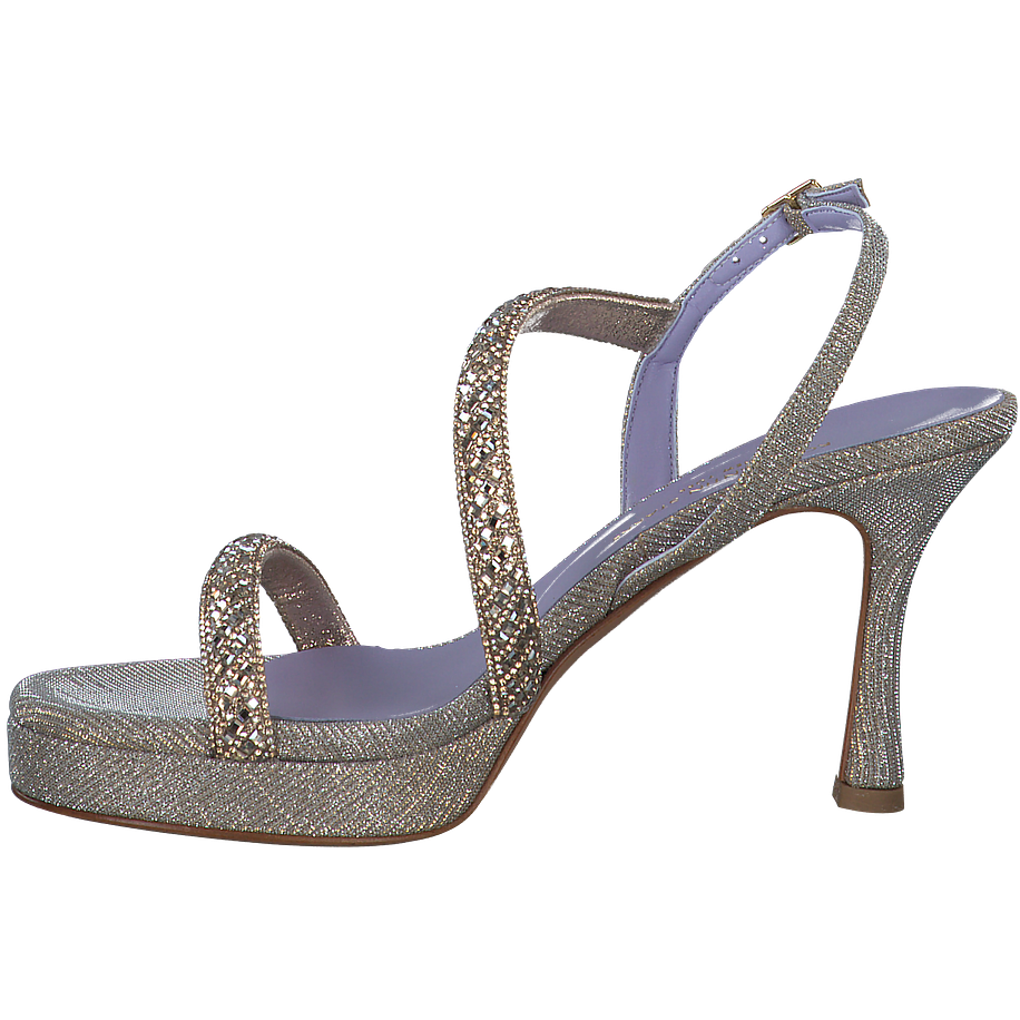 Preis inkl. MwSt.Entdecken Sie die eleganten Sandaletten von Konstantin Starke für Damen. Diese Schuhe bestechen durch ihre goldene Farbe und Glitzeroptik, die jedes Outfit zum Strahlen bringt. Mit einer Absatzhöhe von 9 cm verleihen sie Ihnen eine grazile Silhouette. Das Obermaterial besteht aus hochwertigem Textil, während das Innenfutter und die Innensohle aus einer Mischung aus Leder und sonstigem Material gefertigt sind. Die Sohle aus Leder sorgt für einen angenehmen Tragekomfort. Verleihen Sie Ihrem Look einen Hauch von Glamour mit diesen atemberaubenden Sandalen.