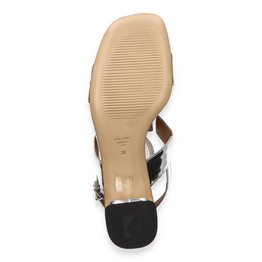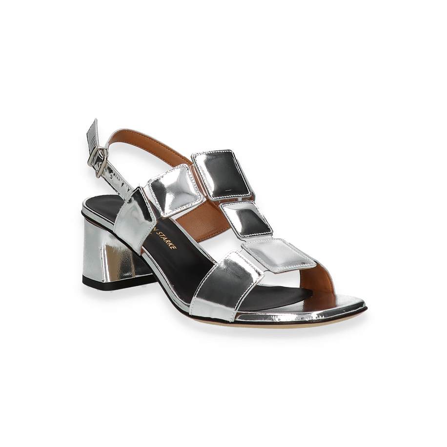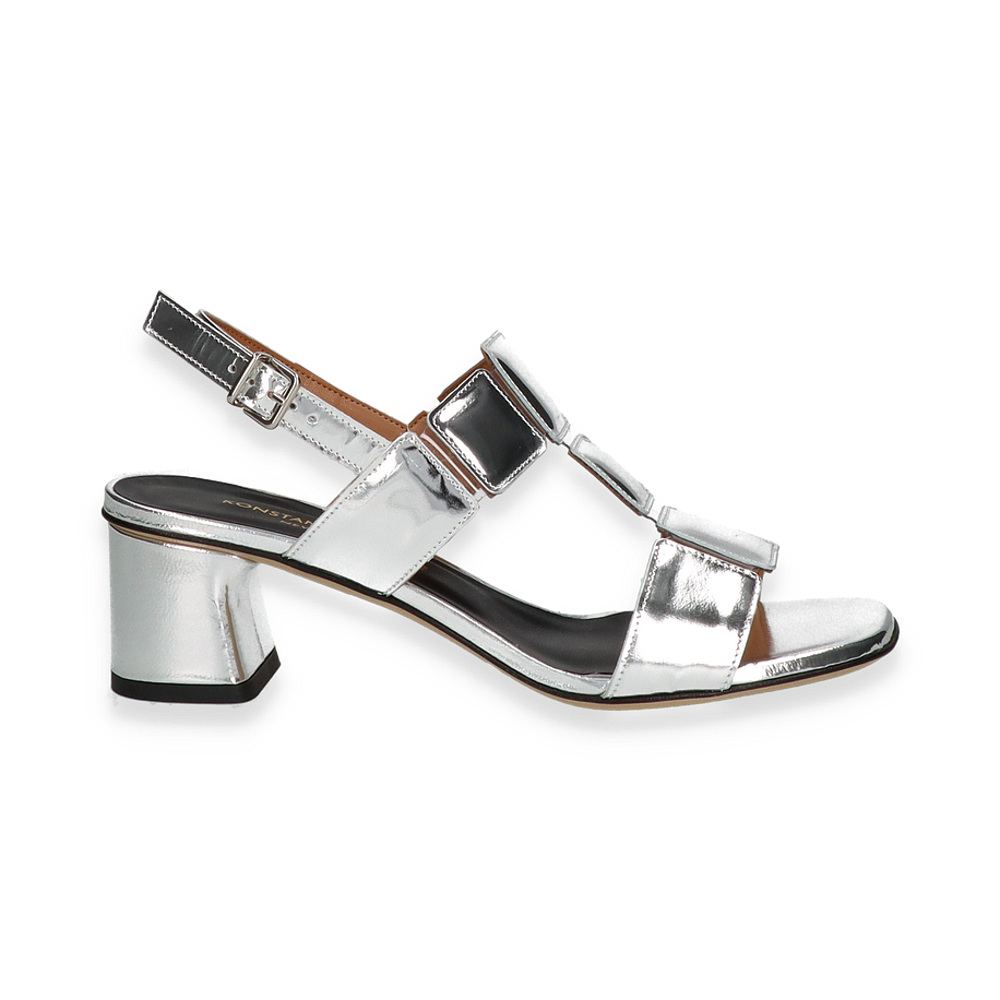Preis inkl. MwSt.Die Konstantin Starke Sandaletten in elegantem Silber sind ein echter Hingucker für Damen. Das auffällige Design mit glänzenden, quadratischen Applikationen verleiht jedem Outfit einen modernen und stilvollen Touch. Der 5 cm hohe Blockabsatz sorgt für eine angenehme Höhe, während der verstellbare Riemen eine perfekte Passform bietet. Diese Sandalen sind ideal für besondere Anlässe oder um einem Alltagslook das gewisse Etwas zu verleihen.