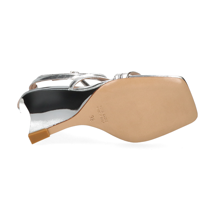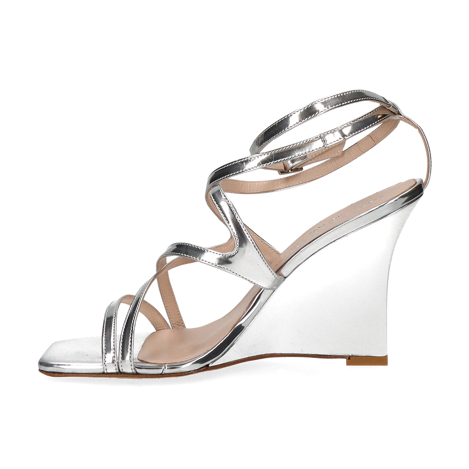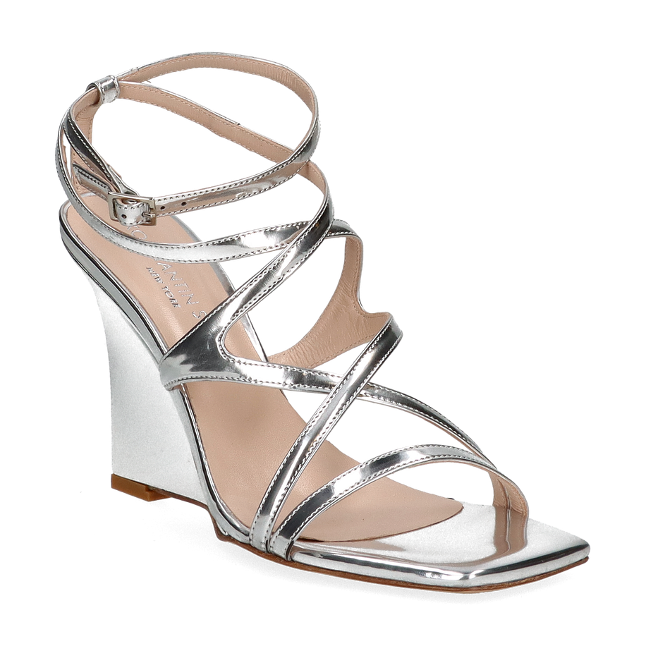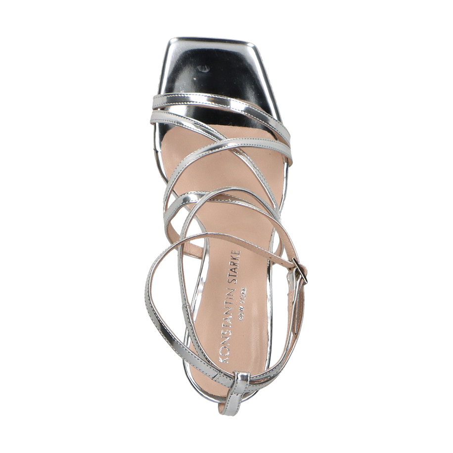 Die Sandaletten von Konstantin Starke präsentieren sich in einem eleganten Silberton, der jedem Outfit einen Hauch von Glamour verleiht. Die raffiniert gestalteten Riemen umschließen den Fuß auf ansprechende Weise und sorgen für einen sicheren Halt. Der 10 cm hohe Absatz bietet eine beeindruckende Silhouette und hebt die Trägerin stilvoll hervor. Diese Sandaletten sind die perfekte Wahl für besondere Anlässe oder elegante Abendveranstaltungen.