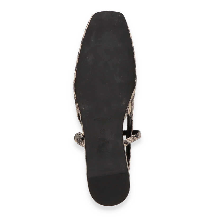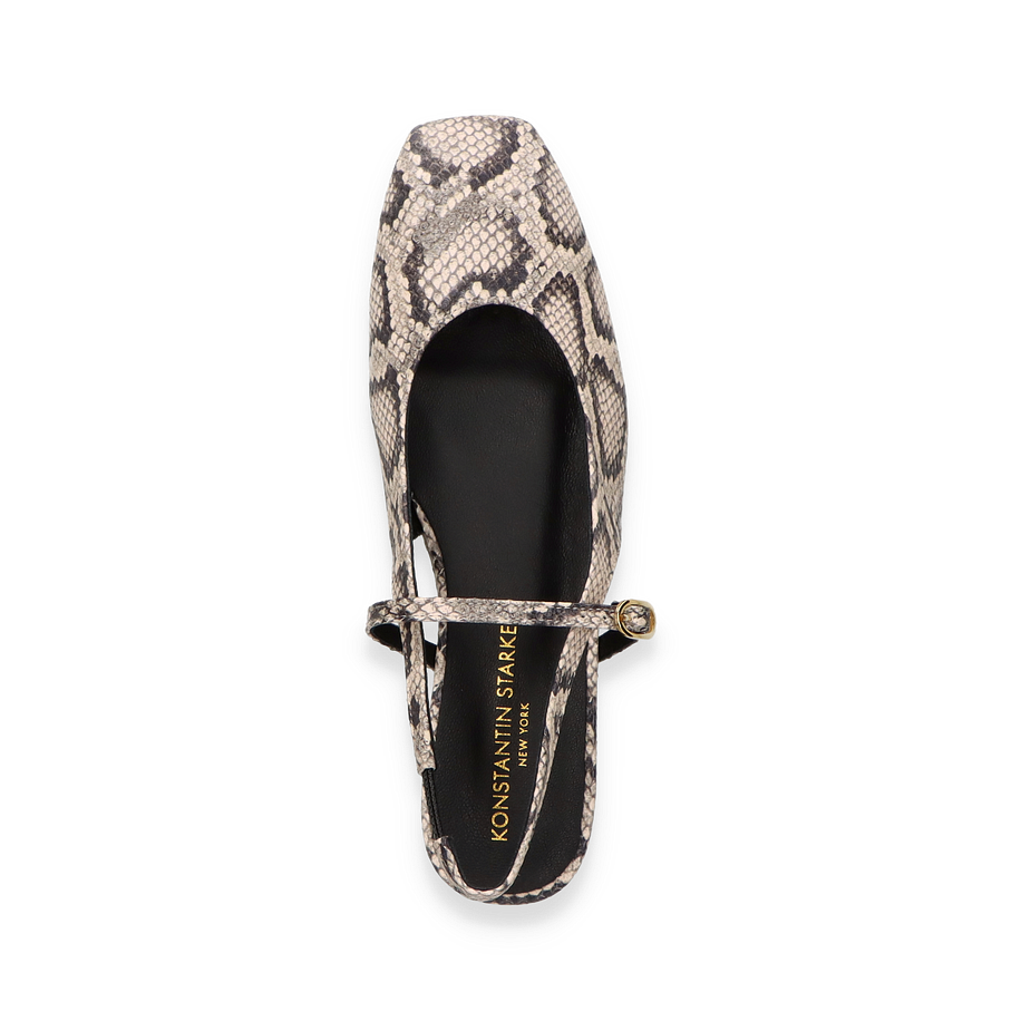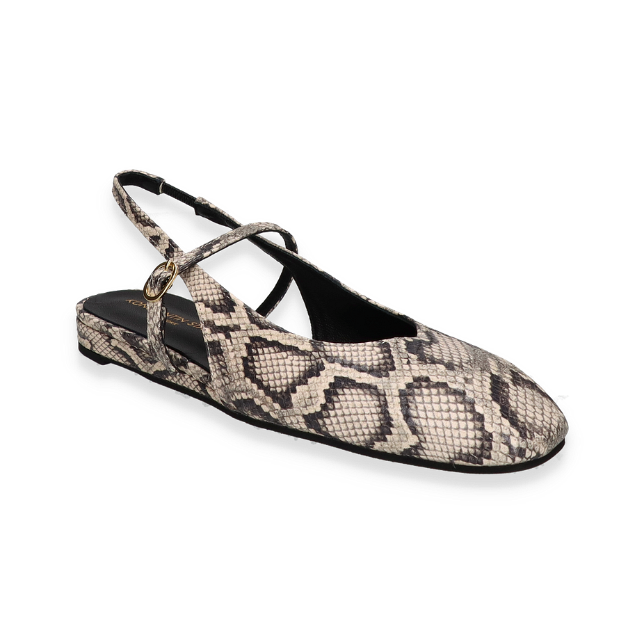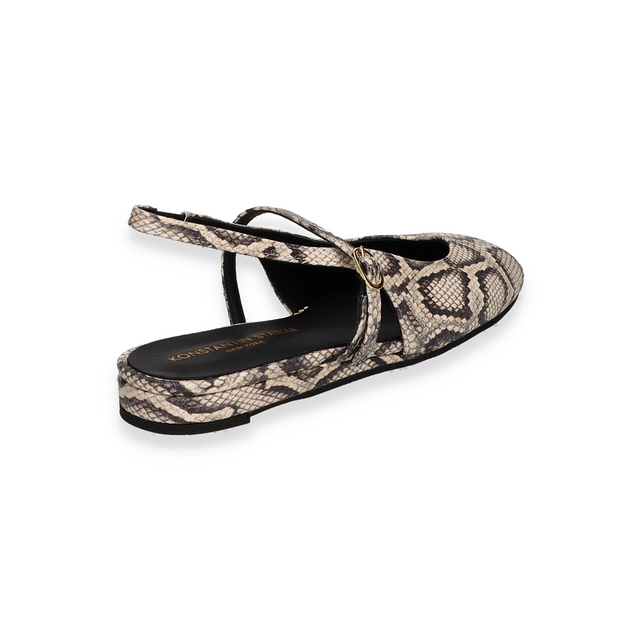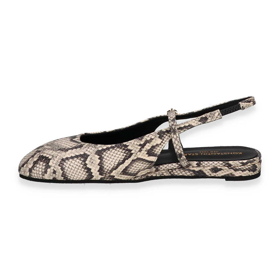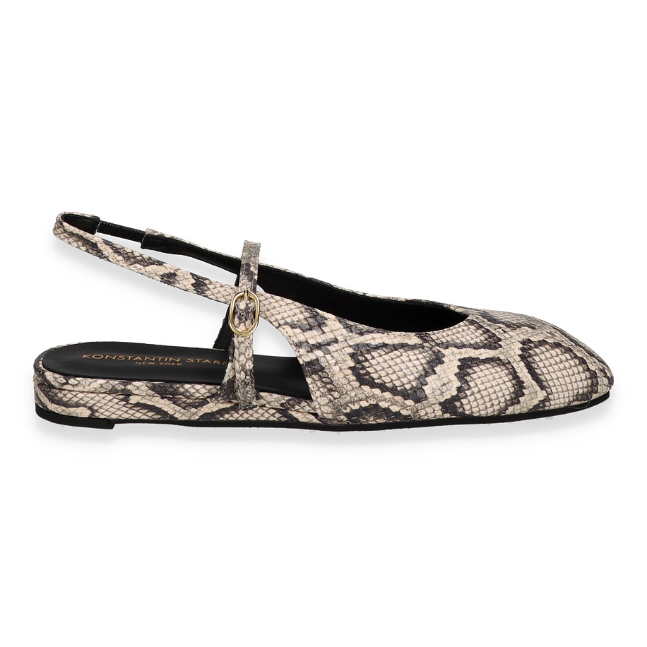 Preis inkl. MwSt.Entdecken Sie die eleganten Slingback-Ballerinas von Konstantin Starke in einem stilvollen Beige mit einem auffälligen Schlangenprint. Diese Schuhe für Damen vereinen zeitlose Eleganz mit modernem Design. Der raffinierte Slingback-Riemen mit goldener Schnalle sorgt für einen sicheren Halt und verleiht dem Schuh eine zusätzliche Note von Raffinesse. Die flache Silhouette und der niedrige Absatz von 2 cm bieten Komfort, ohne auf Stil zu verzichten.