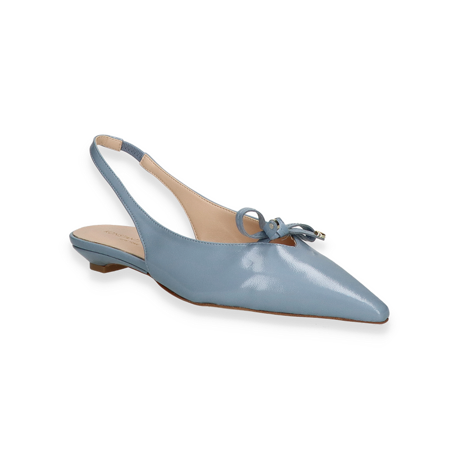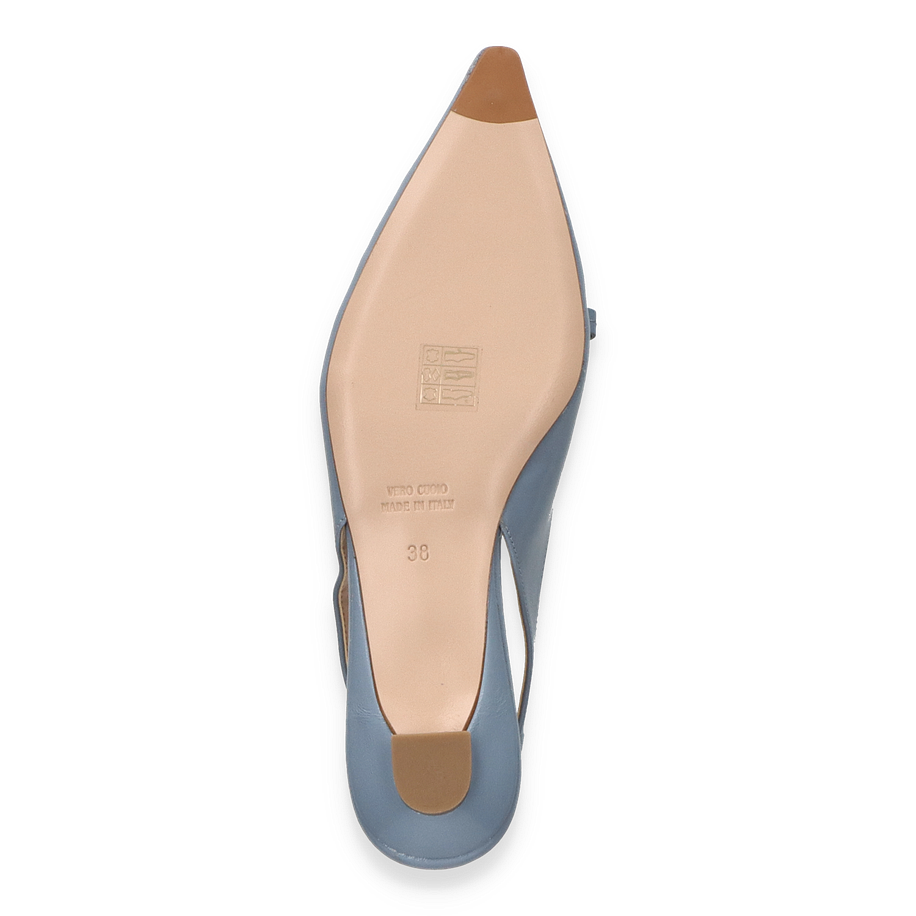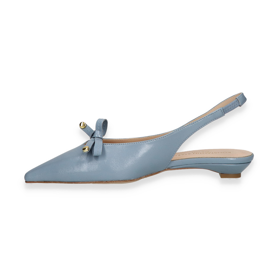 Preis inkl. MwSt.Entdecken Sie die eleganten Slingpumps von Konstantin Starke in einem zarten Hellblau, die für Damen entworfen wurden. Diese stilvollen Schuhe zeichnen sich durch ihre spitz zulaufende Form und den dezenten Absatz von 2 cm aus, der sowohl Komfort als auch einen Hauch von Raffinesse bietet. Die zierliche Schleife auf dem Vorderblatt verleiht dem Design eine feminine Note, während der offene Fersenbereich mit einem schmalen Riemen für sicheren Halt sorgt.