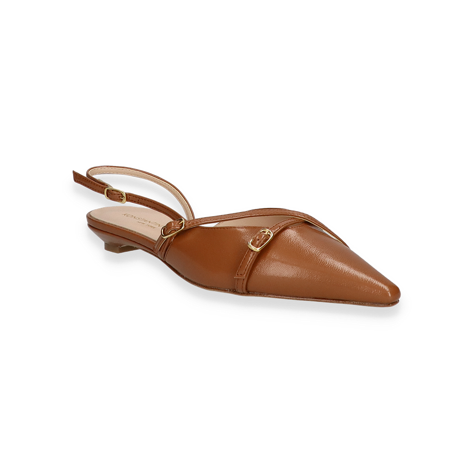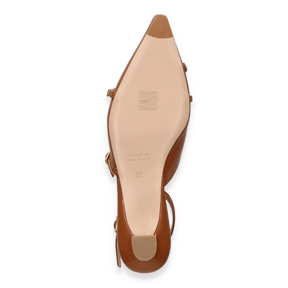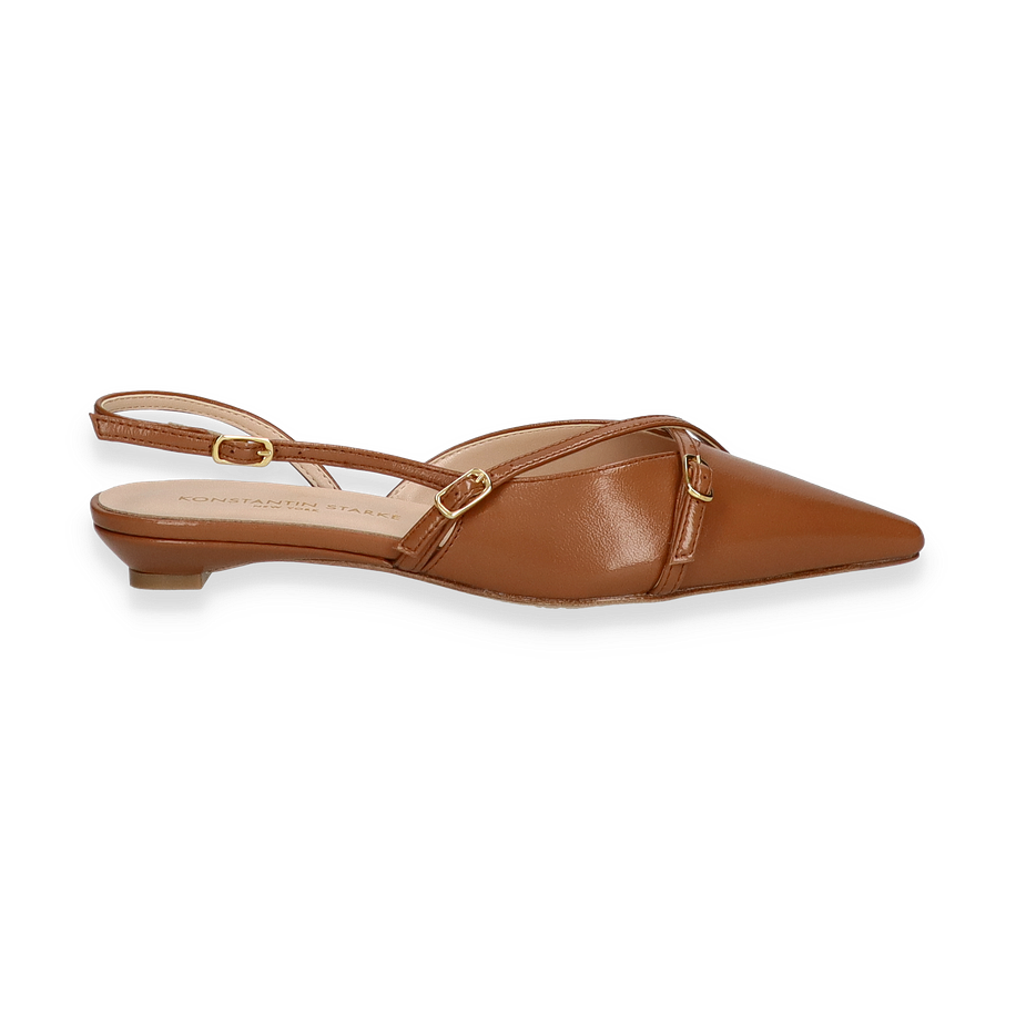 Entdecken Sie die eleganten Slingpumps von Konstantin Starke in einem ansprechenden Mittelbraun. Diese Schuhe für Damen zeichnen sich durch ihr raffiniertes Design aus, das durch die zarten Riemen und die spitz zulaufende Form unterstrichen wird. Der dezente Absatz von 2 cm verleiht eine subtile Erhöhung, während die goldfarbenen Schnallen einen Hauch von Luxus hinzufügen. Diese Slingpumps sind die perfekte Wahl für stilvolle Anlässe und verleihen jedem Outfit eine elegante Note.