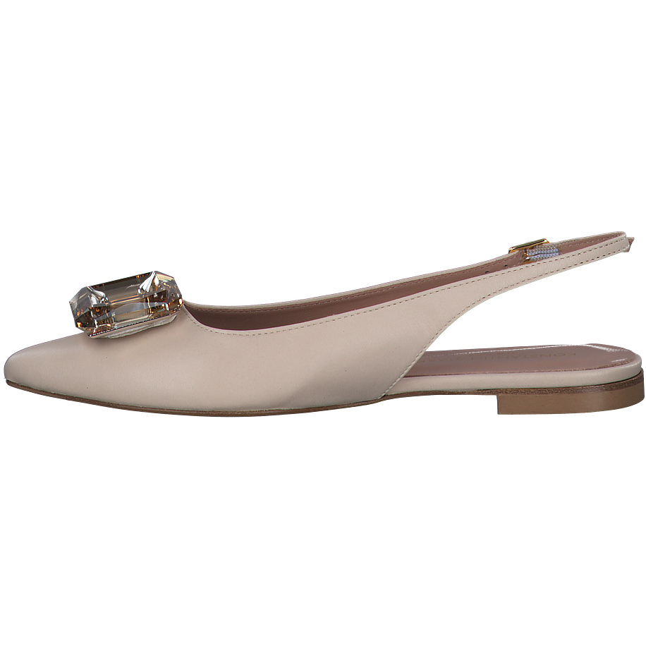 Entdecken Sie die elegante Welt der Konstantin Starke Slingpumps für Damen. Dieses Paar, in einem ansprechenden Beige-Ton, ist aus hochwertigem Leder gefertigt, das sowohl für das Obermaterial als auch für die Innensohle und die Sohle verwendet wird. Die Fütterung besteht aus Leder und anderen Materialien, um optimalen Komfort zu gewährleisten. Mit einer Absatzhöhe von 1,5 cm bieten diese Schuhe eine subtile Erhöhung, ohne den Tragekomfort zu beeinträchtigen. Ein besonderes Highlight ist die Schmuckverzierung auf der Spitze, die einen Hauch von Eleganz und Raffinesse hinzufügt.