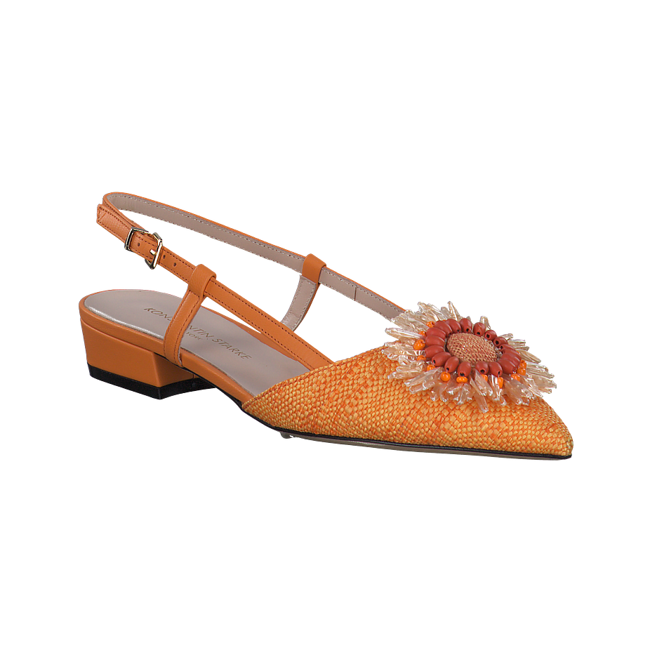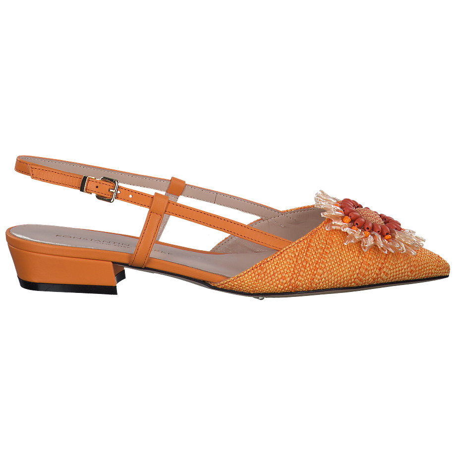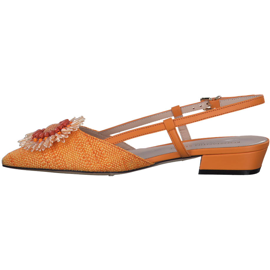 Erleben Sie den sommerlichen Charme mit den Slingpumps von Konstantin Starke für Damen. Diese Schuhe sind in einem lebhaften Orange gehalten und verfügen über eine Blumenapplikation auf der Spitze, die einen Hauch von Eleganz verleiht. Sie sind aus hochwertigem Leder, Textil und sonstigem Material gefertigt, was für eine lange Haltbarkeit sorgt. Das Innenfutter und die Innensohle aus Leder bieten optimalen Komfort. Mit einer Absatzhöhe von 2,5 cm bieten diese Schuhe die perfekte Balance zwischen Stil und Bequemlichkeit. Der Ledersohle sorgt für einen sicheren Tritt. Genießen Sie den Sommer mit Konstantin Starke.