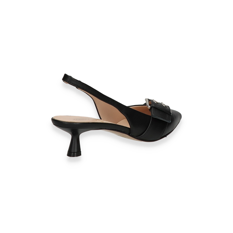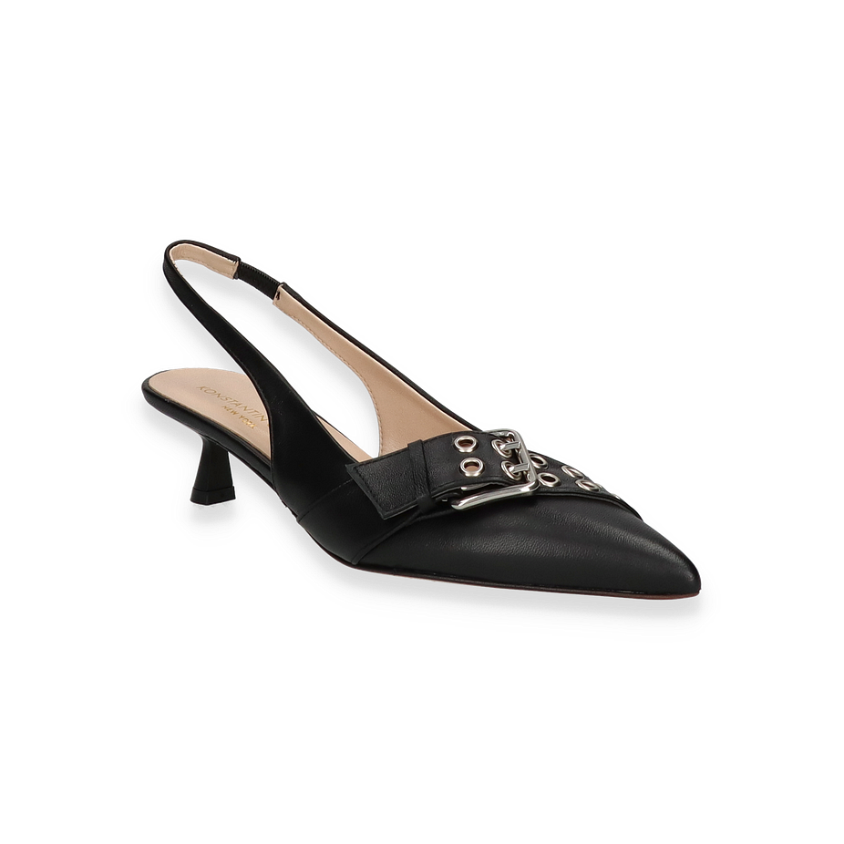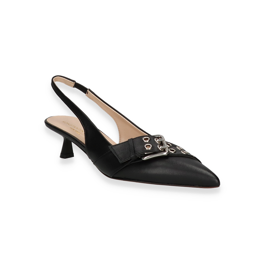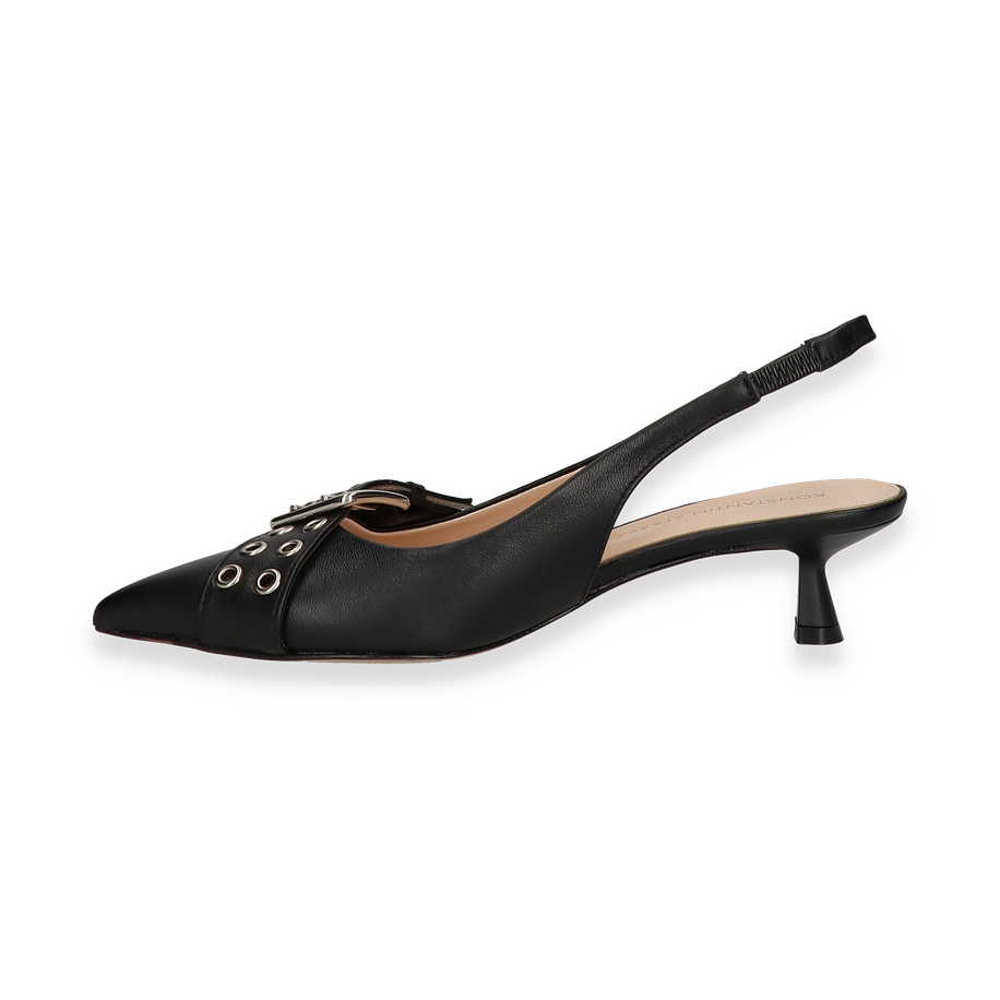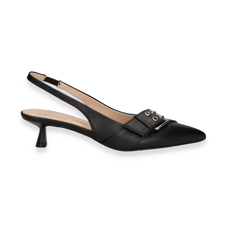 Preis inkl. MwSt.Entdecken Sie die eleganten Slingpumps von Konstantin Starke in klassischem Schwarz, die für Damen entworfen wurden. Diese Schuhe vereinen zeitlose Eleganz mit modernem Design. Der spitze Schnitt und die stilvolle Schnallenverzierung verleihen ihnen einen raffinierten Look, der sowohl für formelle Anlässe als auch für den Alltag geeignet ist. Der 4,5 cm hohe Absatz sorgt für eine feminine Silhouette und bietet gleichzeitig angenehmen Tragekomfort.