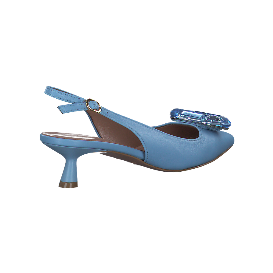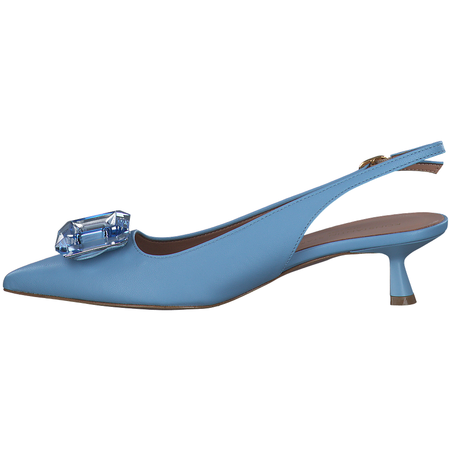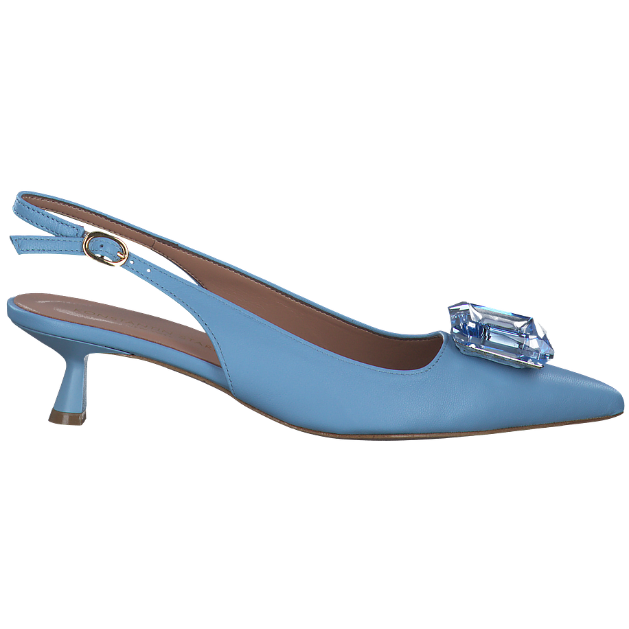 Entdecken Sie die eleganten Slingpumps von Konstantin Starke für Damen. Diese hellblauen Schuhe bestechen durch ihr Leder, welches für das Obermaterial, die Innensohle und die Sohle verwendet wurde. Das Futter besteht aus einer Kombination aus Leder und sonstigem Material, was für zusätzlichen Komfort sorgt. Mit einer Absatzhöhe von 4,5 cm bieten sie eine angenehme Höhe, ohne den Tragekomfort zu beeinträchtigen. Ein besonderes Highlight ist der Schmucksteinbesatz an der Schuhspitze, der diesen Schuhen einen Hauch von Glamour verleiht. Ideal für besondere Anlässe oder als stilvolles Highlight für Ihr Alltagsoutfit.