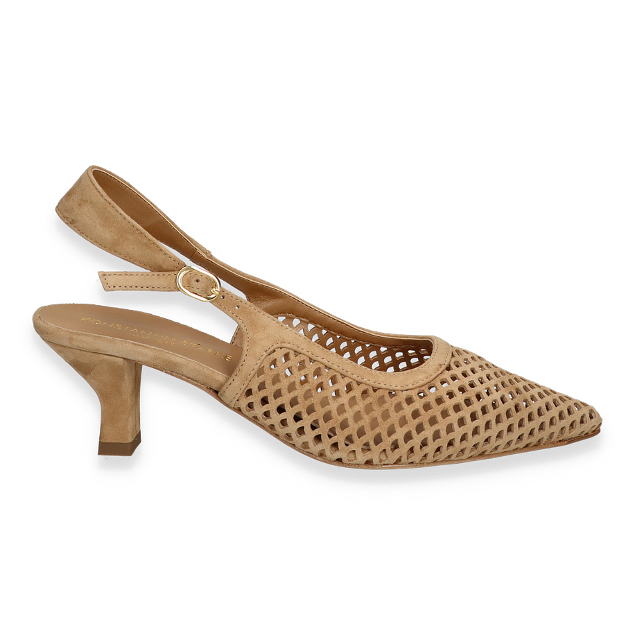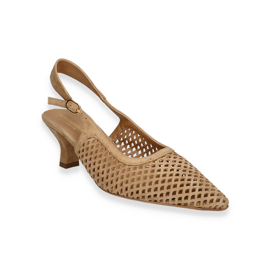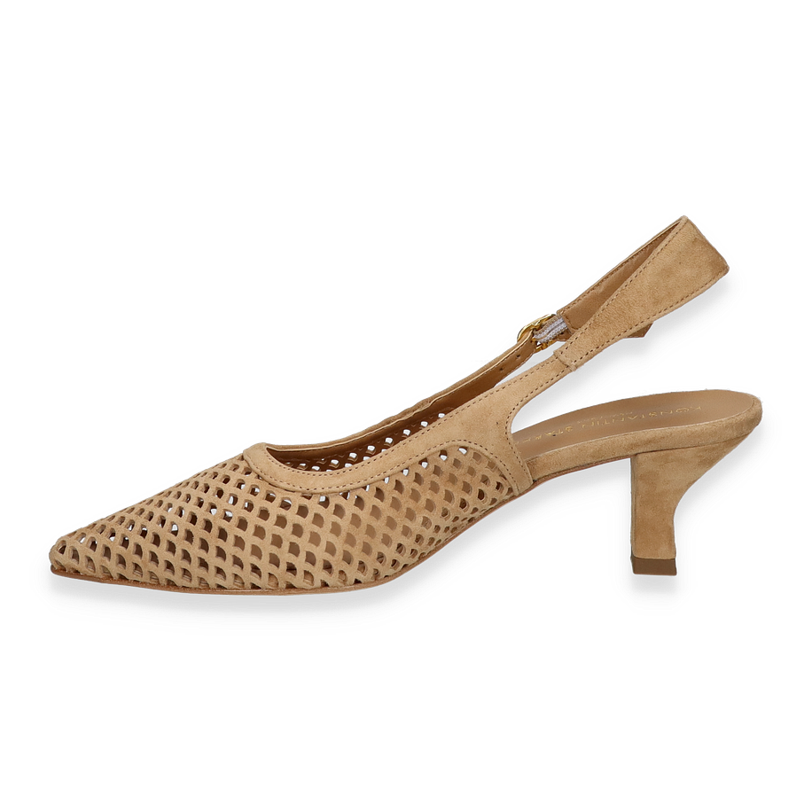 Preis inkl. MwSt.Entdecken Sie die eleganten Slingpumps von Konstantin Starke in einem ansprechenden Hellbraunton, der jedem Outfit eine stilvolle Note verleiht. Diese Schuhe für Damen zeichnen sich durch ihr raffiniertes Design mit einem filigranen Riemchen und einem modischen, 5 cm hohen Absatz aus. Das durchbrochene Muster des Obermaterials aus hochwertigem Leder sorgt nicht nur für einen modischen Look, sondern auch für angenehme Belüftung an wärmeren Tagen.