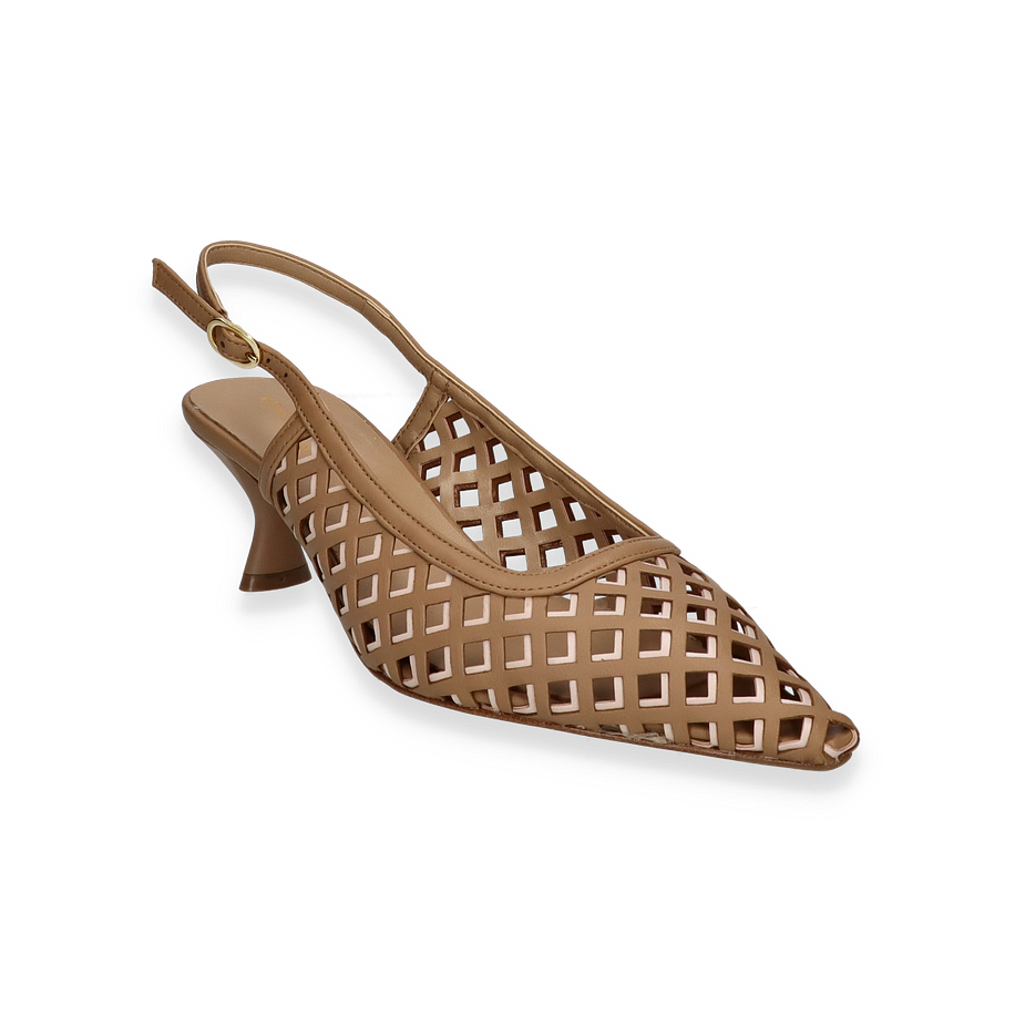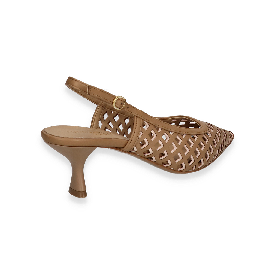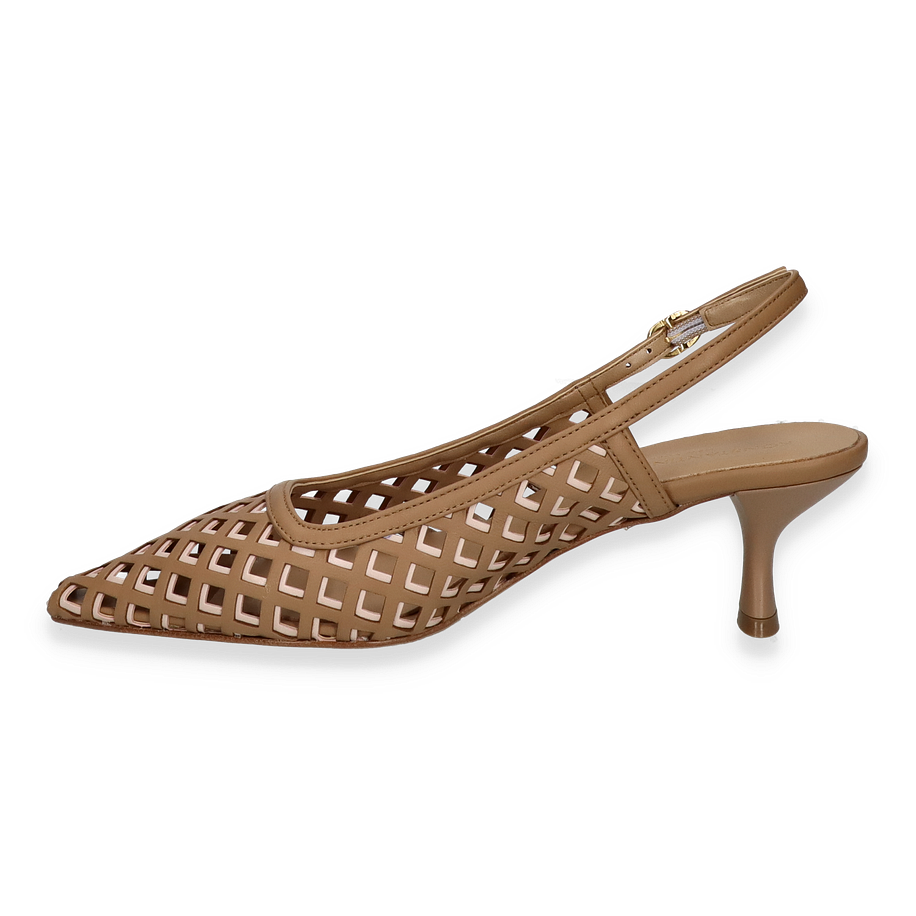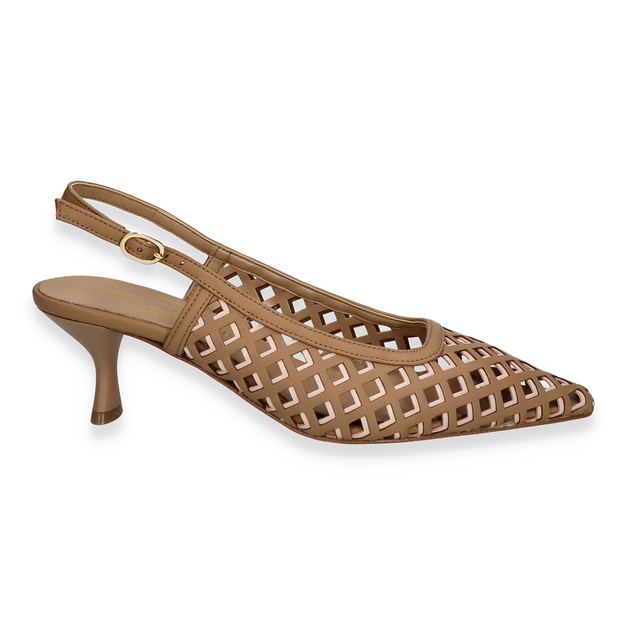 Preis inkl. MwSt.Die eleganten Slingpumps von Konstantin Starke in einem ansprechenden Beige-Ton vereinen stilvolle Ästhetik mit hochwertiger Verarbeitung. Das raffinierte Design mit einem durchbrochenen Muster verleiht diesen Schuhen einen modernen und luftigen Look, ideal für Damen, die Wert auf modische Details legen. Der schmale Absatz mit einer Höhe von 4 cm sorgt für eine feminine Silhouette und bietet gleichzeitig angenehmen Tragekomfort. Der verstellbare Riemen mit goldener Schnalle rundet das Design perfekt ab und sorgt für optimalen Halt.