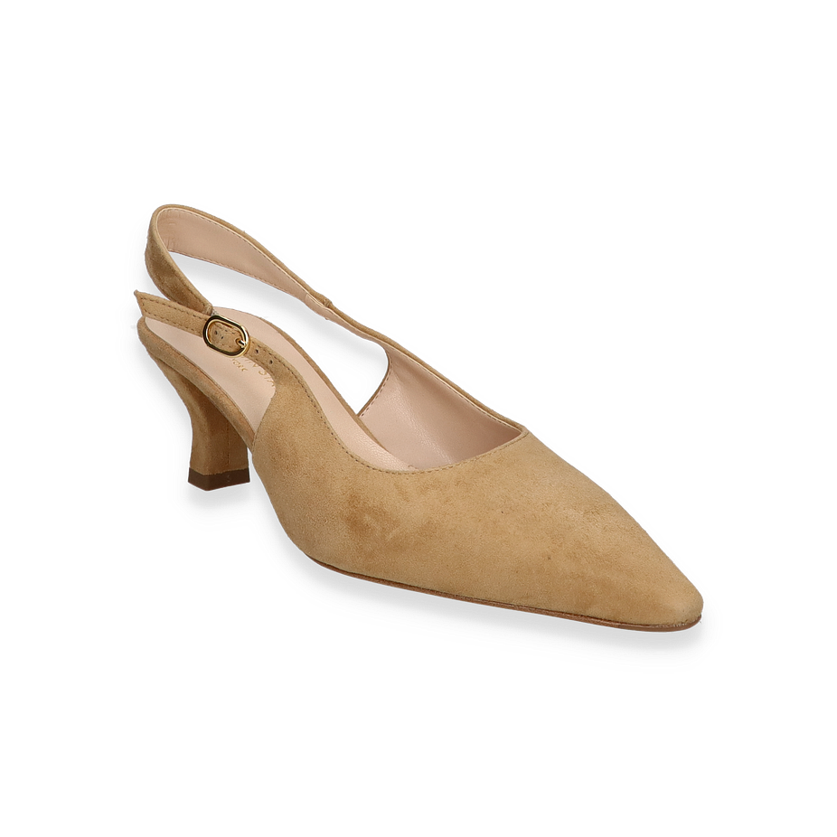 Preis inkl. MwSt.Die Slingpumps von Konstantin Starke in elegantem Beige sind ein stilvolles Highlight für Damen. Mit ihrem raffinierten Design und der spitzen Form verleihen sie jedem Outfit eine zeitlose Eleganz. Der schmale Fersenriemen mit zarter Schnalle sorgt für einen sicheren Halt und unterstreicht die feminine Silhouette. Der 5 cm hohe Absatz bietet eine perfekte Balance zwischen Komfort und Stil, ideal für den ganzen Tag.