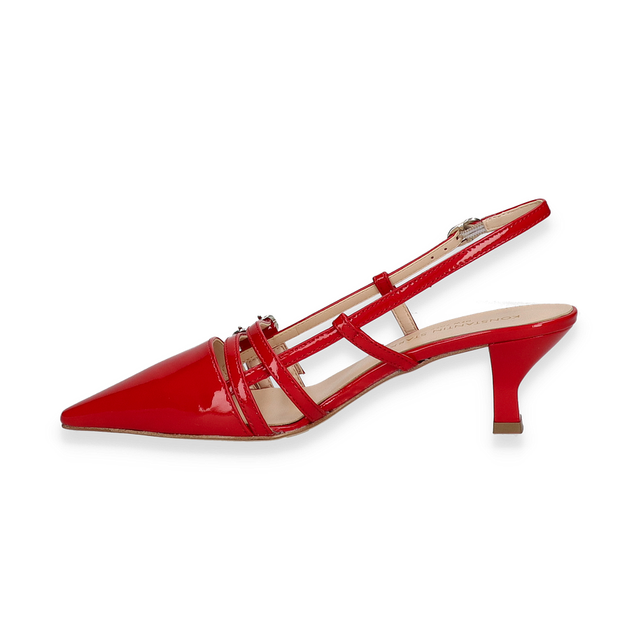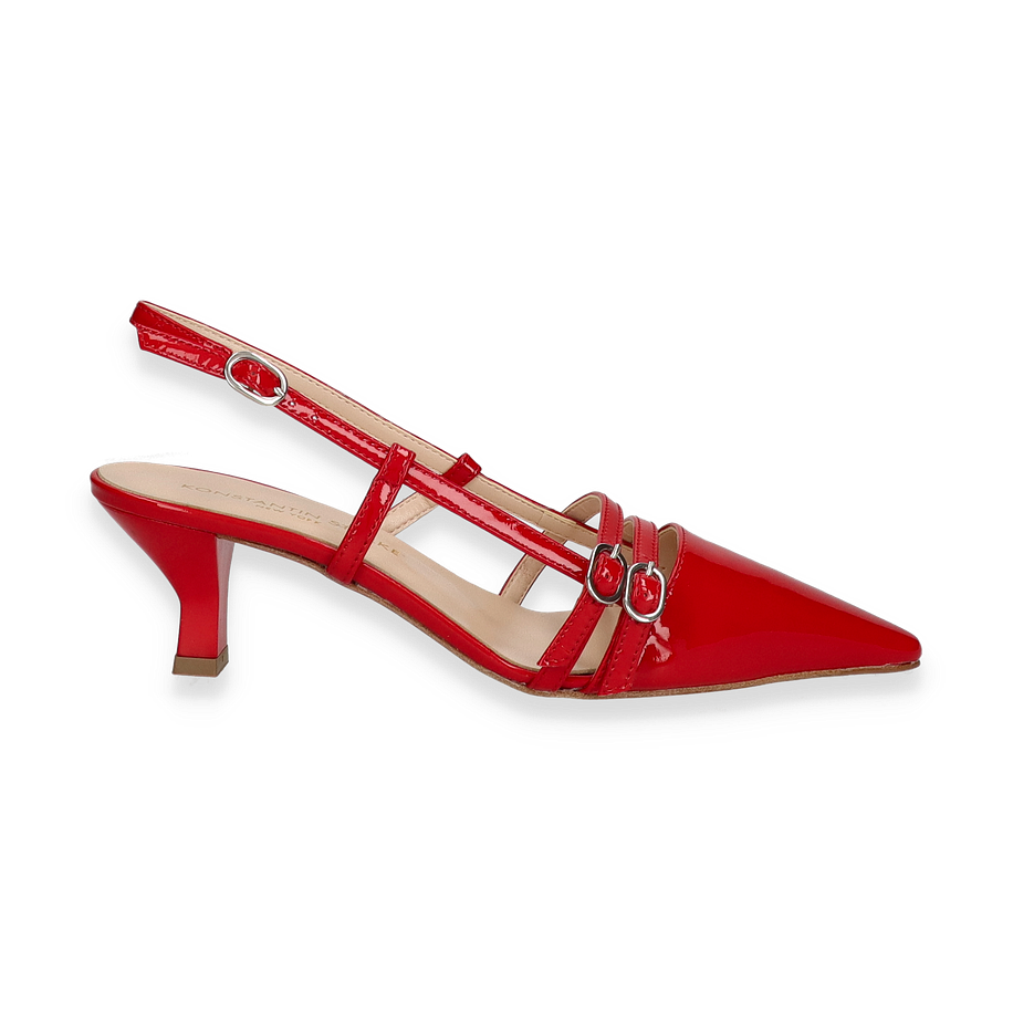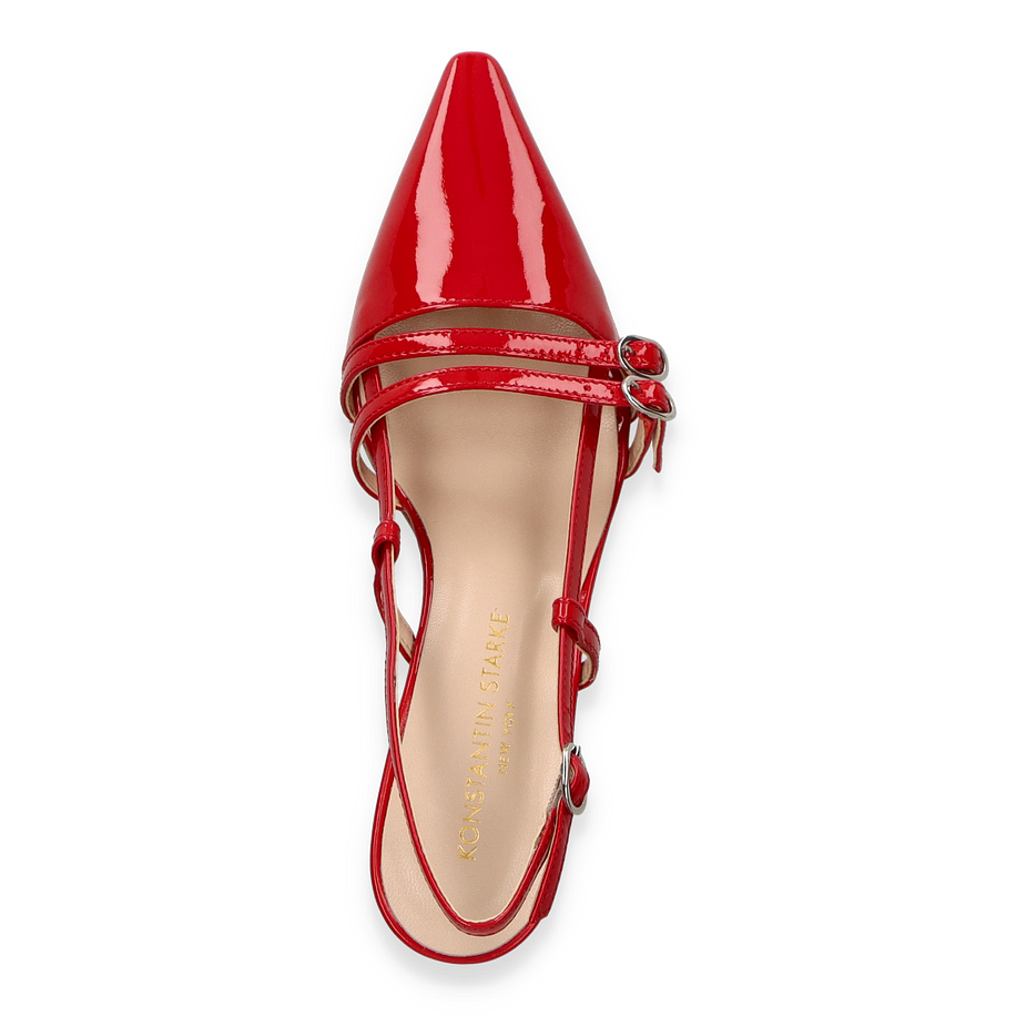 Preis inkl. MwSt.Entdecken Sie die exquisiten Slingpumps von Konstantin Starke in einem auffälligen Rotton, der jedem Outfit einen Hauch von Eleganz verleiht. Diese Schuhe für Damen zeichnen sich durch ihre glänzende Lederoberfläche aus, die in Kombination mit den feinen Riemchen und der spitzen Form eine stilvolle Silhouette schafft. Der 5 cm hohe Absatz sorgt für eine anmutige Haltung und bietet gleichzeitig Komfort für den ganzen Tag. Die verstellbaren Riemen garantieren eine perfekte Passform und unterstreichen das raffinierte Design.