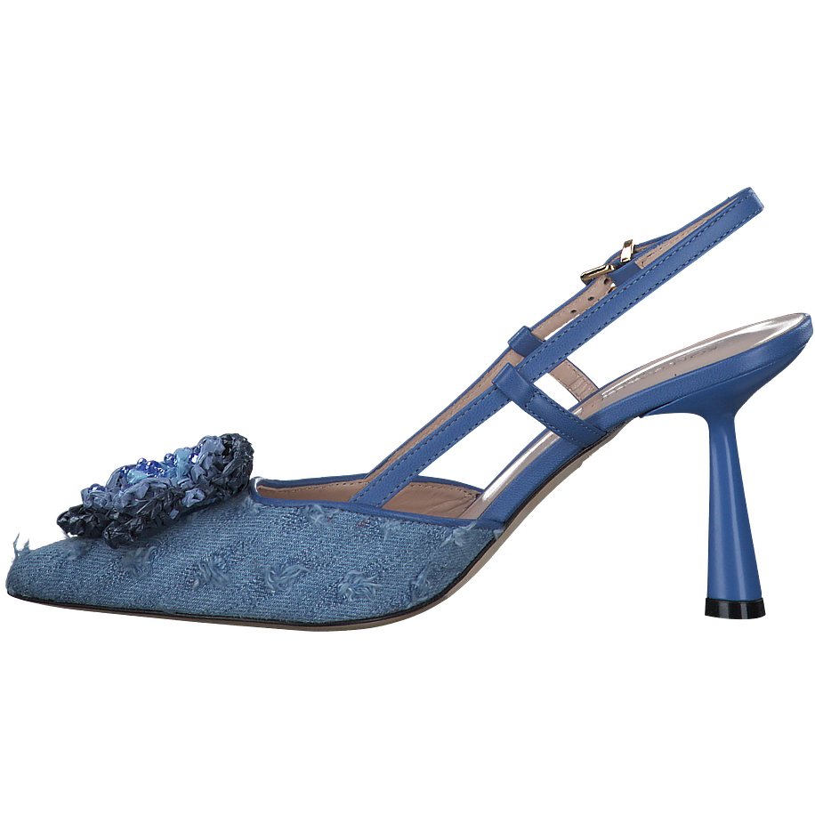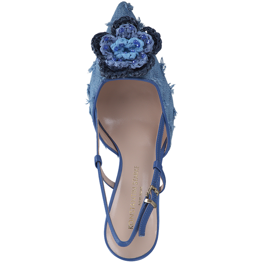 Entdecken Sie die eleganten Slingpumps von Konstantin Starke für Damen. Diese Schuhe zeichnen sich durch ihr blau-metallic Farbdesign und ihre Jeansoptik mit Schmuckblüte auf der Spitze aus. Sie verfügen über eine Absatzhöhe von 7,5 cm, die einen stilvollen und doch komfortablen Auftritt garantiert. Das Obermaterial besteht aus einer hochwertigen Mischung aus Leder, Textil und anderen Materialien, während das Innenfutter und die Innensohle aus reinem Leder gefertigt sind. Die Sohle aus Leder sorgt für zusätzlichen Komfort und Langlebigkeit. Verleihen Sie Ihrem Outfit mit diesen Slingpumps einen Hauch von Eleganz und Klasse.