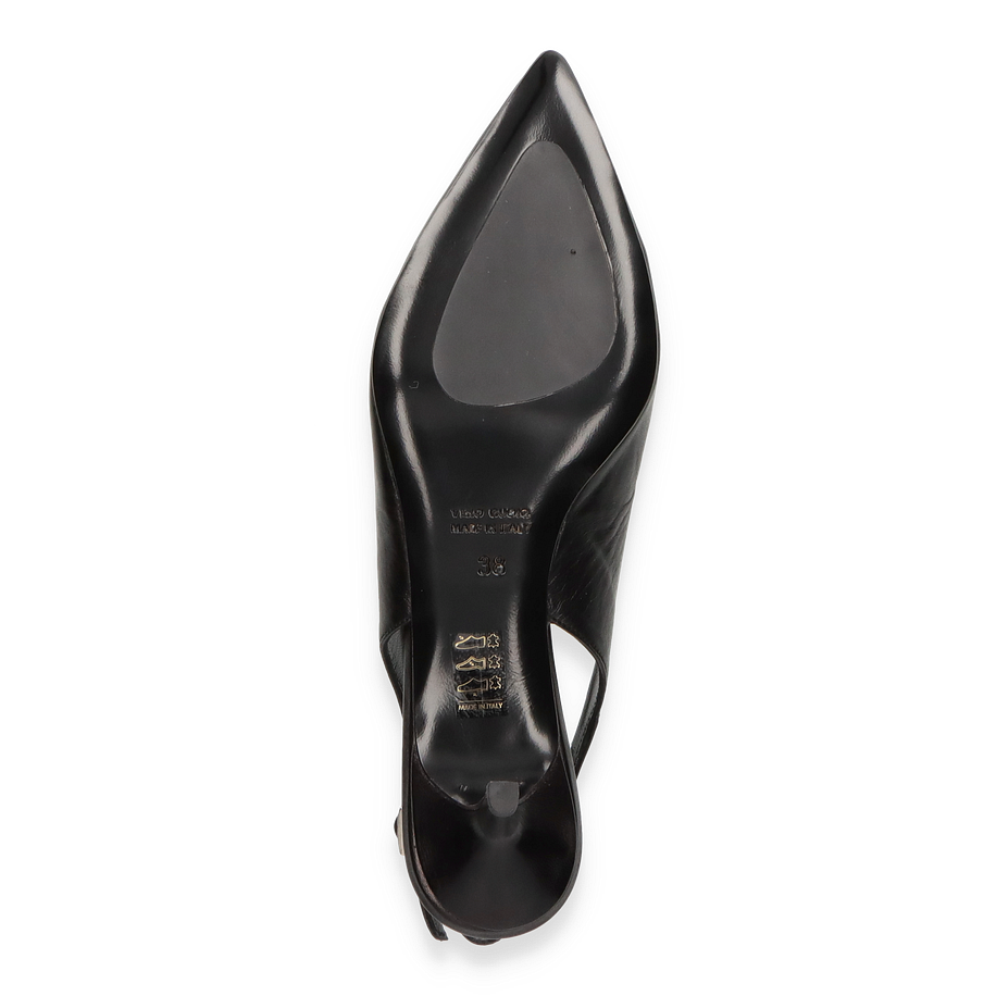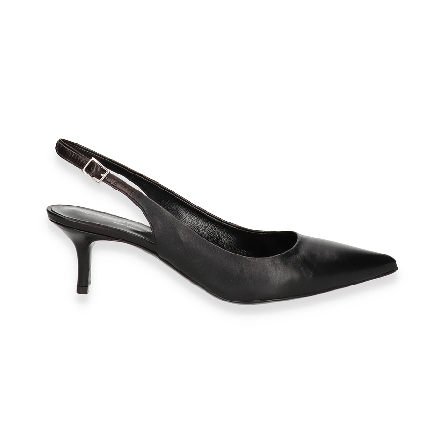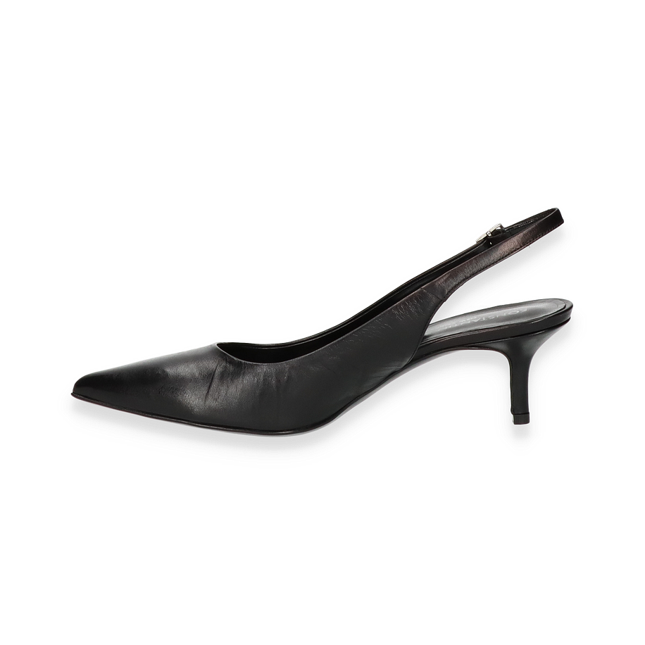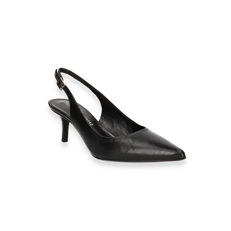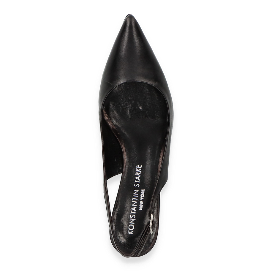Die Konstantin Starke Slingpumps in elegantem Schwarz präsentieren sich als zeitlose Ergänzung für jede Garderobe. Diese für Damen entworfenen Schuhe bestechen durch ihr schlankes Design und die spitz zulaufende Form, die dem Fuß eine anmutige Silhouette verleiht. Der dezente Absatz von 5 cm sorgt für eine feminine Ausstrahlung, während der verstellbare Riemen optimalen Halt bietet. Die hochwertige Verarbeitung und das edle Erscheinungsbild machen diese Slingpumps zu einem perfekten Begleiter für besondere Anlässe und stilvolle Auftritte.