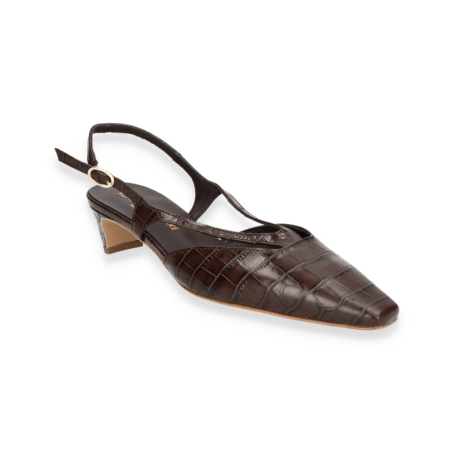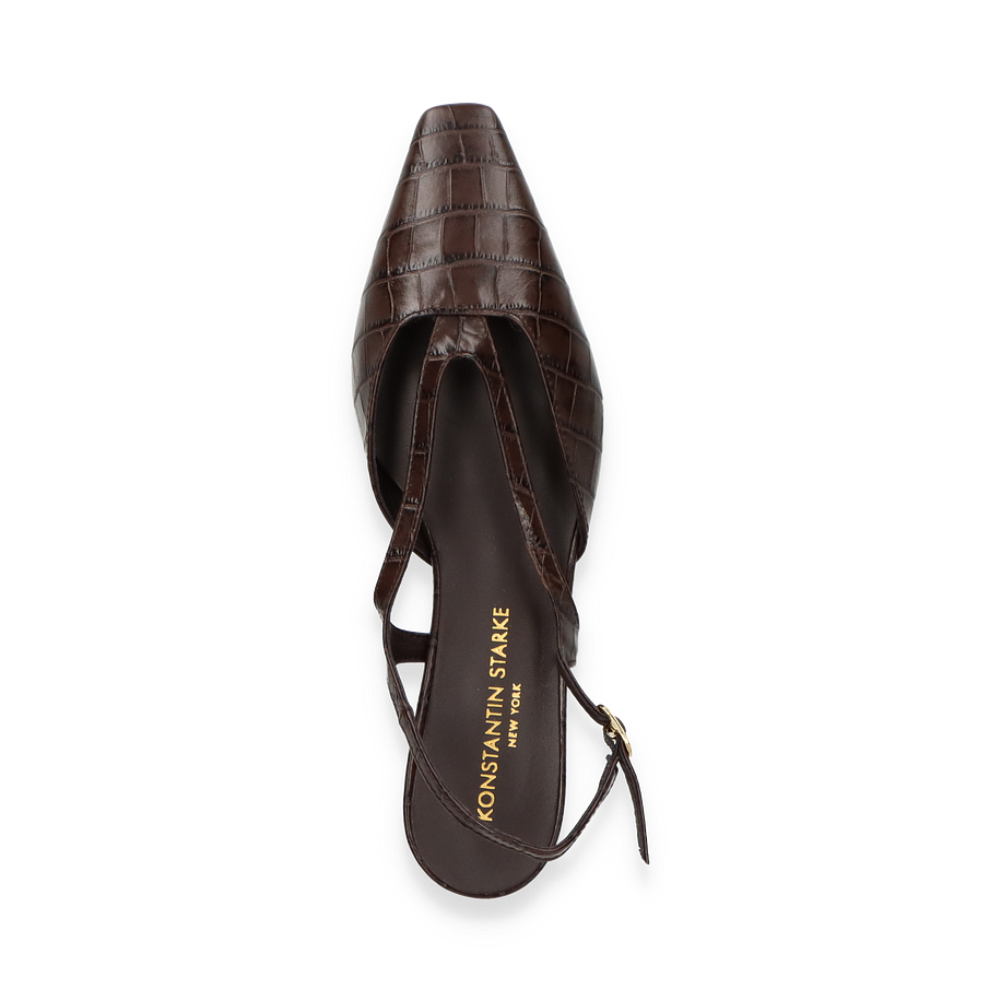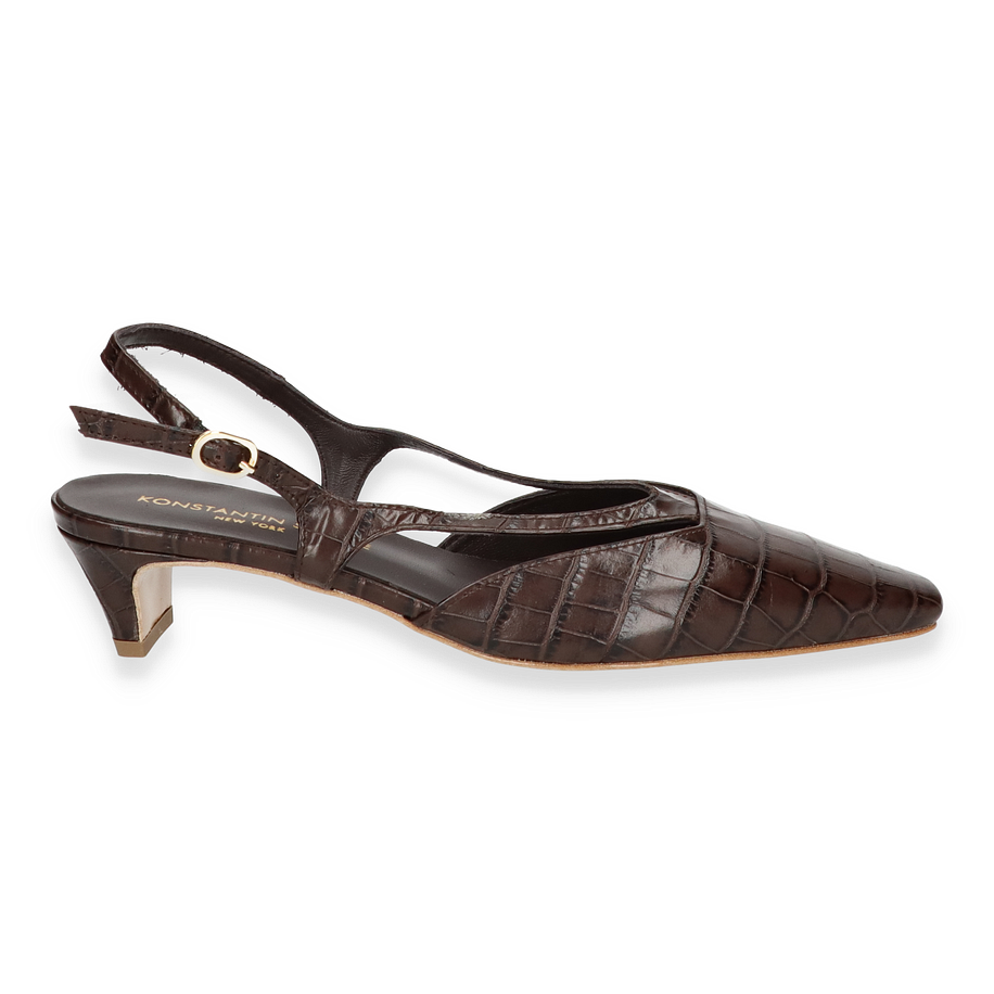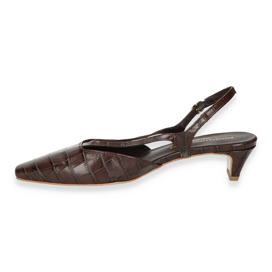 Die Konstantin Starke Slingpumps in elegantem Dunkelbraun sind ein wahrer Blickfang für Damen. Das Obermaterial aus hochwertigem Leder präsentiert sich in einem stilvollen Krokodilmuster, das jedem Outfit eine luxuriöse Note verleiht. Der dezente Absatz von 2 cm sorgt für eine feminine Silhouette, während der verstellbare Riemen eine perfekte Passform gewährleistet. Diese Slingpumps vereinen zeitlose Eleganz mit modernem Design und sind ideal für besondere Anlässe oder den stilvollen Alltag.