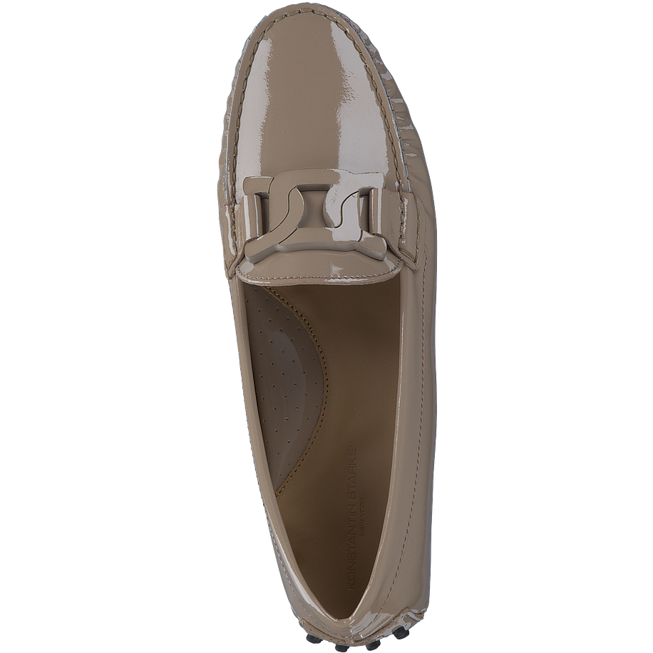Entdecken Sie den eleganten Slipper für Damen von Konstantin Starke in einem edlen Beige. Dieser Schuh besticht durch seine hochwertige Verarbeitung und das verwendete Material. Das Obermaterial, die Innensohle und das Futter sind aus feinstem Leder gefertigt, was für ein angenehmes Tragegefühl sorgt. Die Sohle aus Gummi bietet hervorragenden Halt. Mit einer Absatzhöhe von 0,5 cm ist dieser Schuh ideal für den Alltag. Ein besonderes Detail ist die Zierschnalle auf der Schuhvorderseite. Das Modell ist zudem mit Lackleder veredelt, was ihm einen zusätzlichen Hauch von Luxus verleiht.