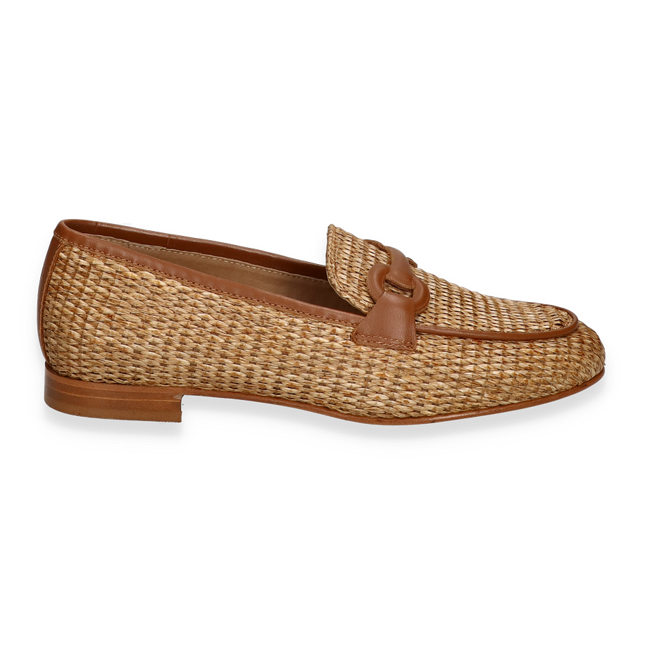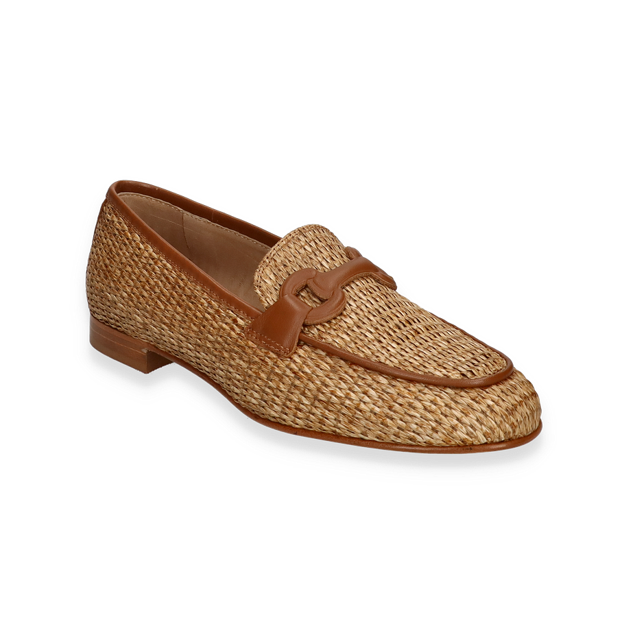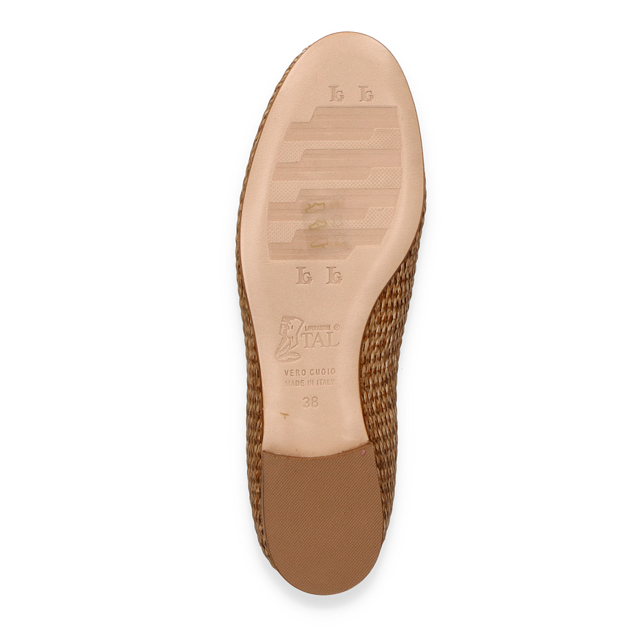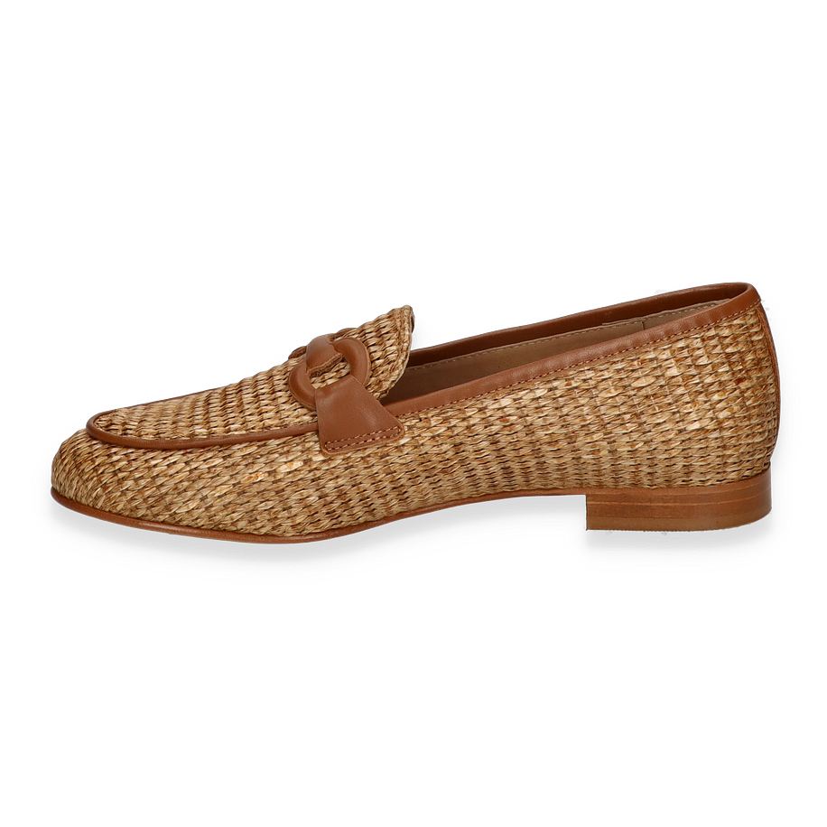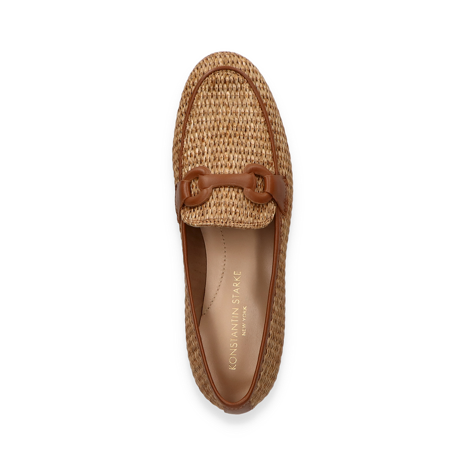 Der Konstantin Starke Slipper für Damen präsentiert sich in einem eleganten Beige-Ton, der durch das geflochtene Textil-Obermaterial einen raffinierten, natürlichen Look erhält. Die dezente Absatzhöhe von 2 cm sorgt für einen angenehmen Tragekomfort, während das stilvolle Design mit einem dekorativen Element auf dem Spann den Schuh zu einem vielseitigen Begleiter für verschiedene Anlässe macht.